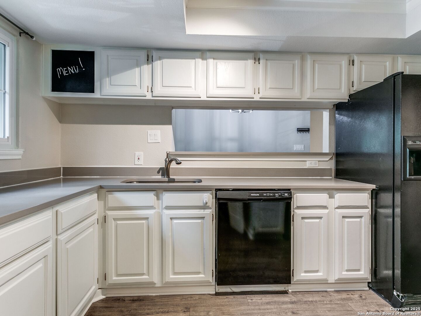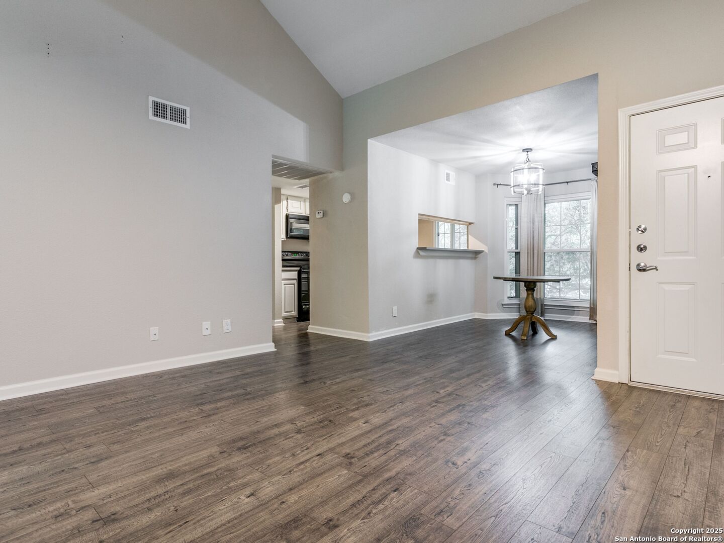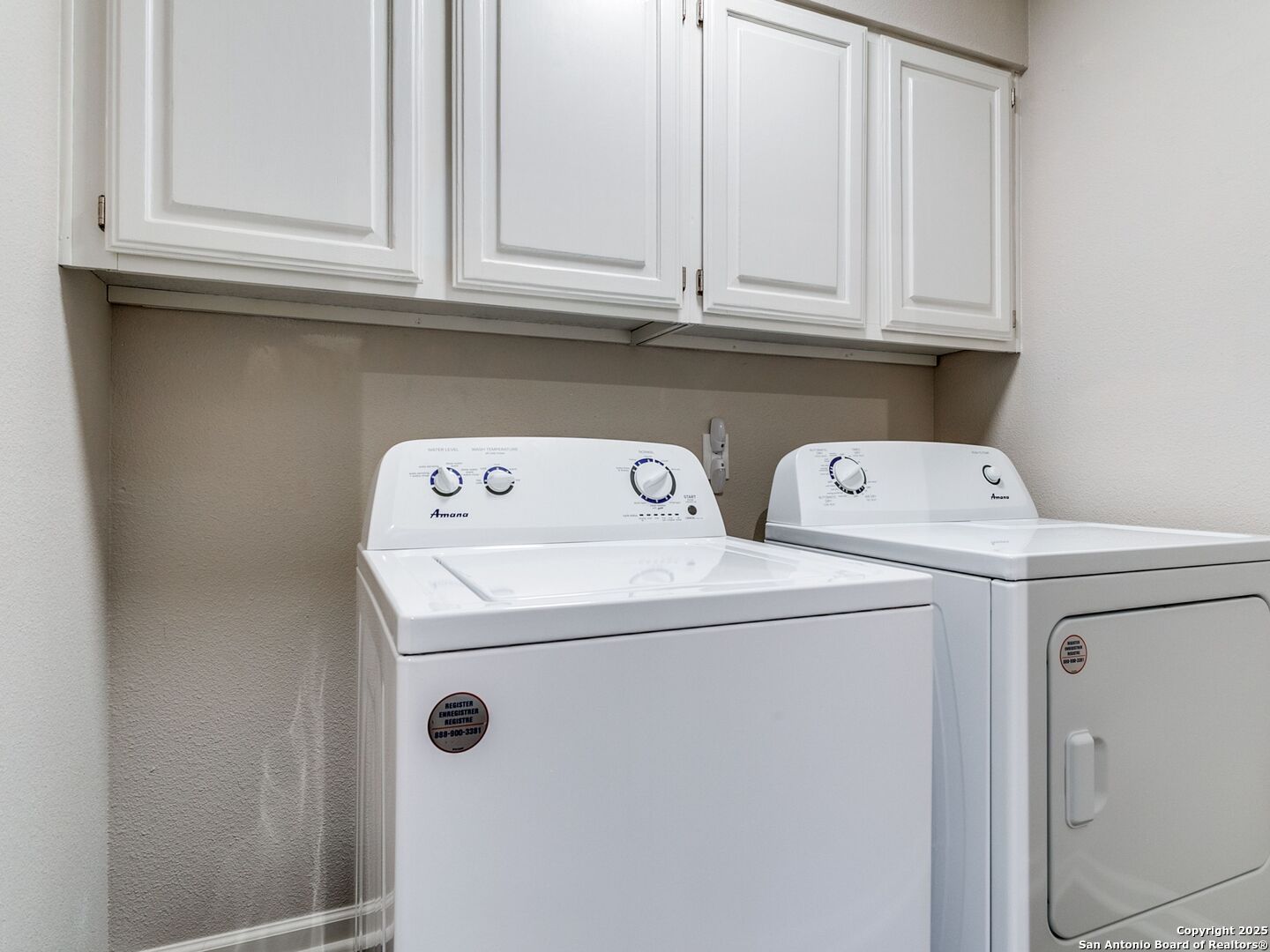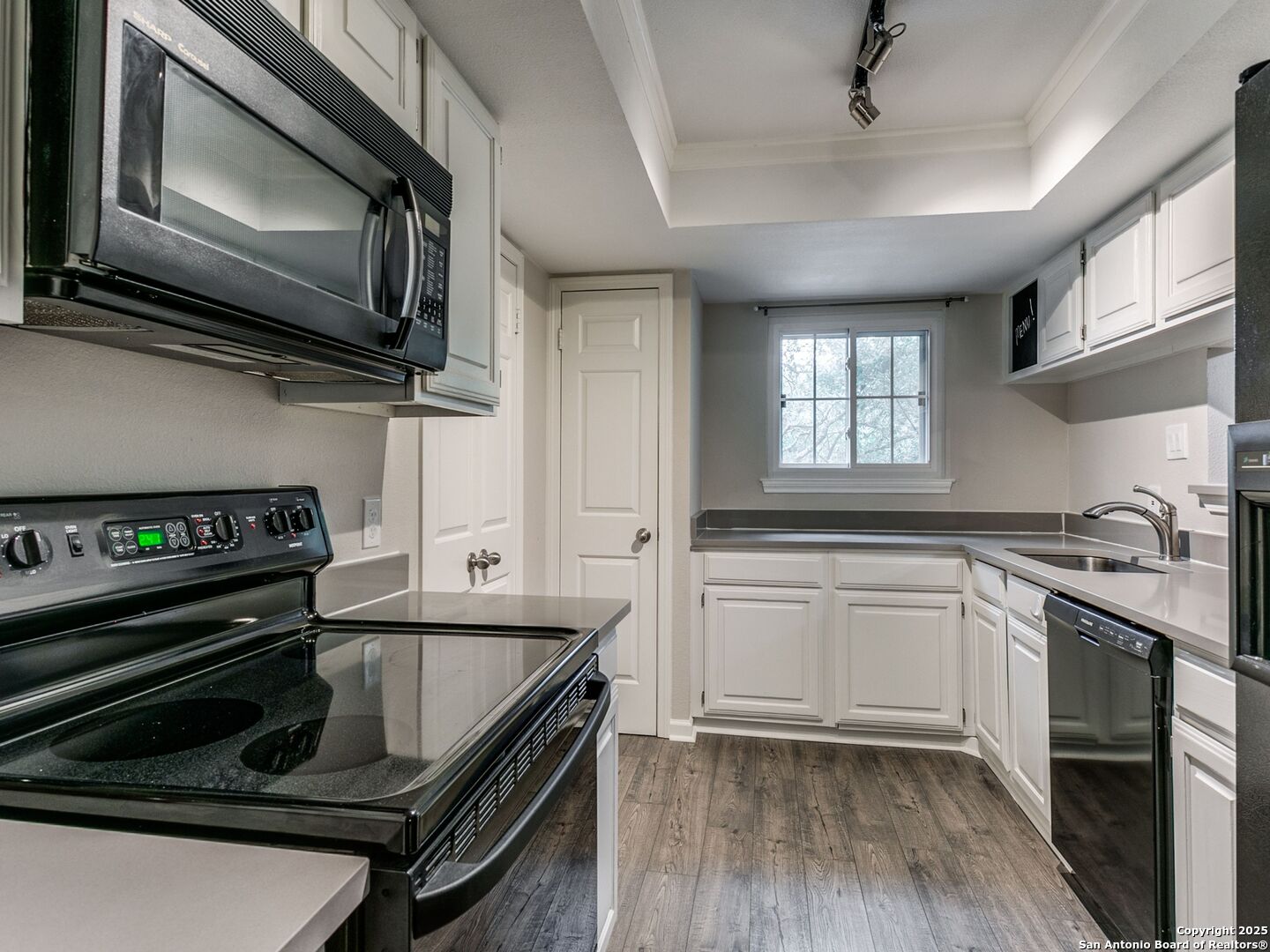 This beautifully updated condominium in the sought--after Chesapeake Condo gated community is a true gem. Recently upgraded with a new HVAC system, washer, dryer, and storm doors (all purchased in May 2022), this 1-bedroom, 1-bath home offers modern comfort and style. The interior features sleek quartz countertops in the kitchen and bathroom, a contemporary vanity with a stylish mirror, a modern sink, and updated light fixtures. The bathroom is enhanced with modern tile surrounds and a bathtub. In the master bedrooms, a brushed nickel ceiling fan with a light fixture adds elegance, while the living and kitchen areas benefit from modern track lighting. Additional updated light fixtures are found in the laundry area and master closet. The living room boasts high ceilings and an impressive brick wood-burning fireplace. Both the living room and master bedroom open through double patio doors onto a covered patio with a scenic view of lush, oak studded green area. The doors and windows throughout the home have been replaces with acoustically treated options for enhanced tranquility. The community offers a pristine pool with an adjoining spa, a water feature, and a patio area with ample seating and beautiful landscaping. The adjacent clubhouse, featuring a gran fireplace, provides ample space for gatherings. Mature oak trees throughout the community offer privacy and serenity, and residents have direct access to the Salado Creek Greenway for walking or jogging, leading to Hardberger Park.