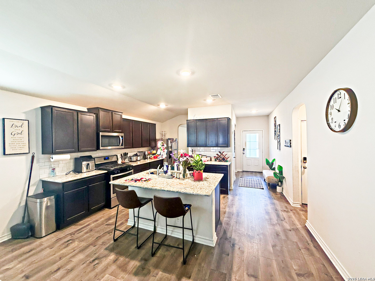 Single Story, 3 bedrooms, 2 bathrooms, 2 car garage home in 1650 SqFt. Open floor plan features front formal dining room, that would also make a great home office if desired. Island kitchen w/breakfast bar; granite counters; dark cabinets; vinyl flooring, ceramic tile & carpet in bedrooms. Primary suite includes full bath w/double vanities; separate shower & garden tub. Walk-in closet. Covered patio & privacy fence. Short drive to Lackland AFB.
