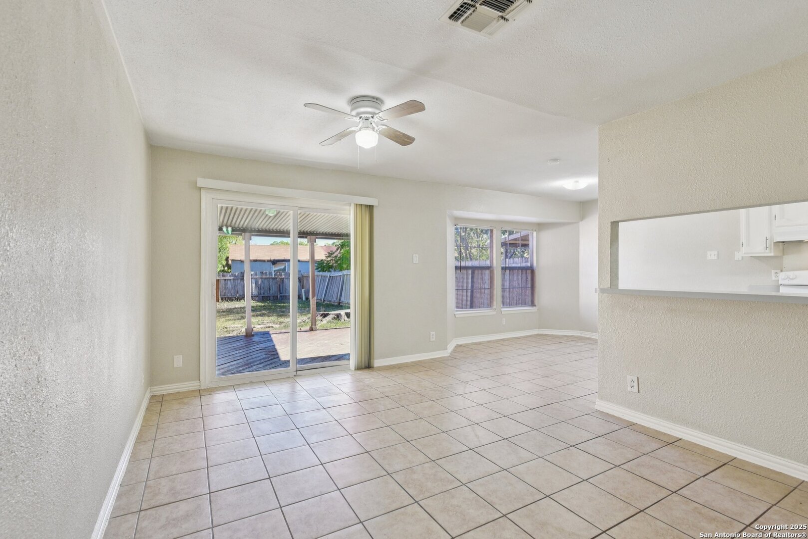 Welcome to a smartly updated 3bedroom, 2bath home in the highly soughtafter Northside Independent School District-this is your perfect entry into San Antonio's real estate market. With just over 1,000 sq ft, this efficient layout packs in thoughtful upgrades without sacrificing comfort or convenience. From the moment you arrive, you'll notice the fresh exterior paint, newer siding, and upgraded exterior doors and energyefficient windows-all designed to enhance curb appeal while keeping heating and cooling costs lower. Step inside to tile floors throughout-no carpet to worry about-making the home ideal for easy maintenance or for those with active lifestyles. The heart of the home is the kitchen, where updated appliances pair with clean white cabinetry and bright surfaces, creating a welcoming space for cooking and gathering. Adjacent is a dining area with sliding glass doors that open to your covered patio-perfect for morning coffee or outdoor entertaining while overlooking the generously sized backyard. Retreat to the primary suite, complete with its own bath, while two additional bedrooms and a full second bath offer flexibility for family, guests, or a home office. The twocar garage provides ample parking or storage options. Outside, the fenced backyard invites you to enjoy barbeques, playtime, or create your own garden retreat. Location is simply outstanding. Just minutes from shopping, dining and quick access to Lackland Air Force Base, this home also sits near parks, walking trails and a neighborhood pond frequented by ducks-a charming setting for daily life. Best of all: No HOA fees, giving you more freedom and fewer restrictions. If you're looking for a movein ready home, wellpositioned in a strong school district and backed by excellent neighborhood amenities, this one checks every box. Schedule your tour today and imagine your next chapter here.
