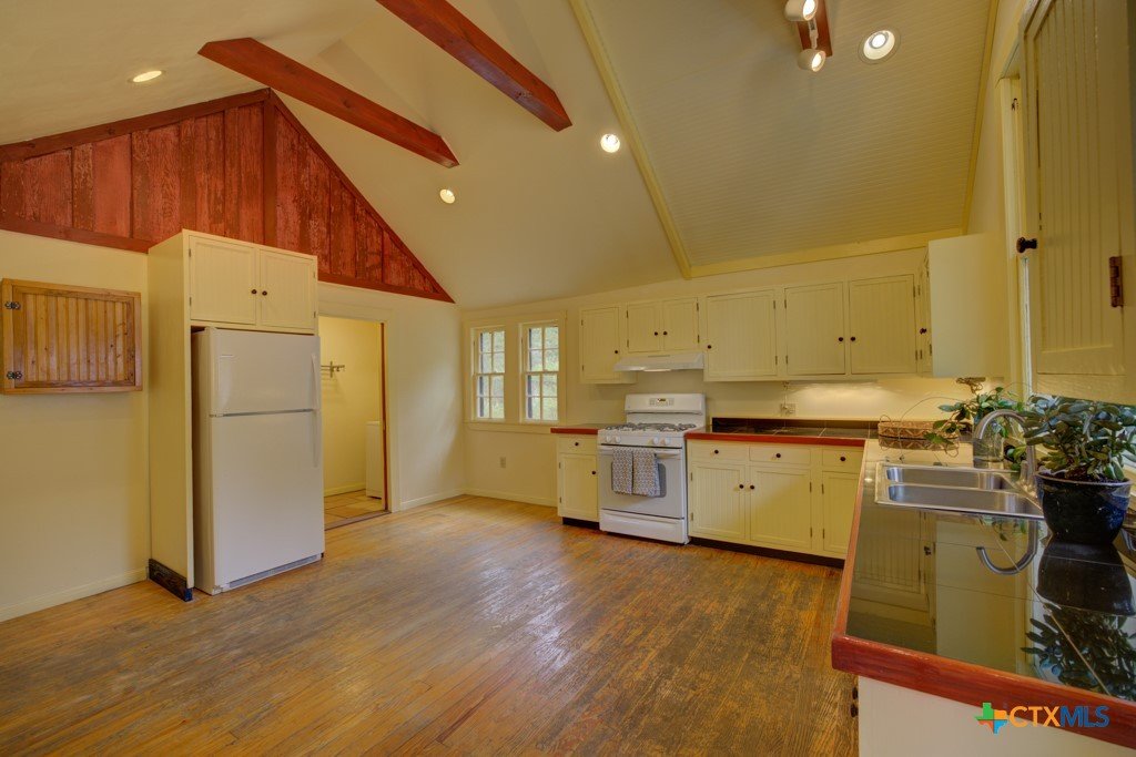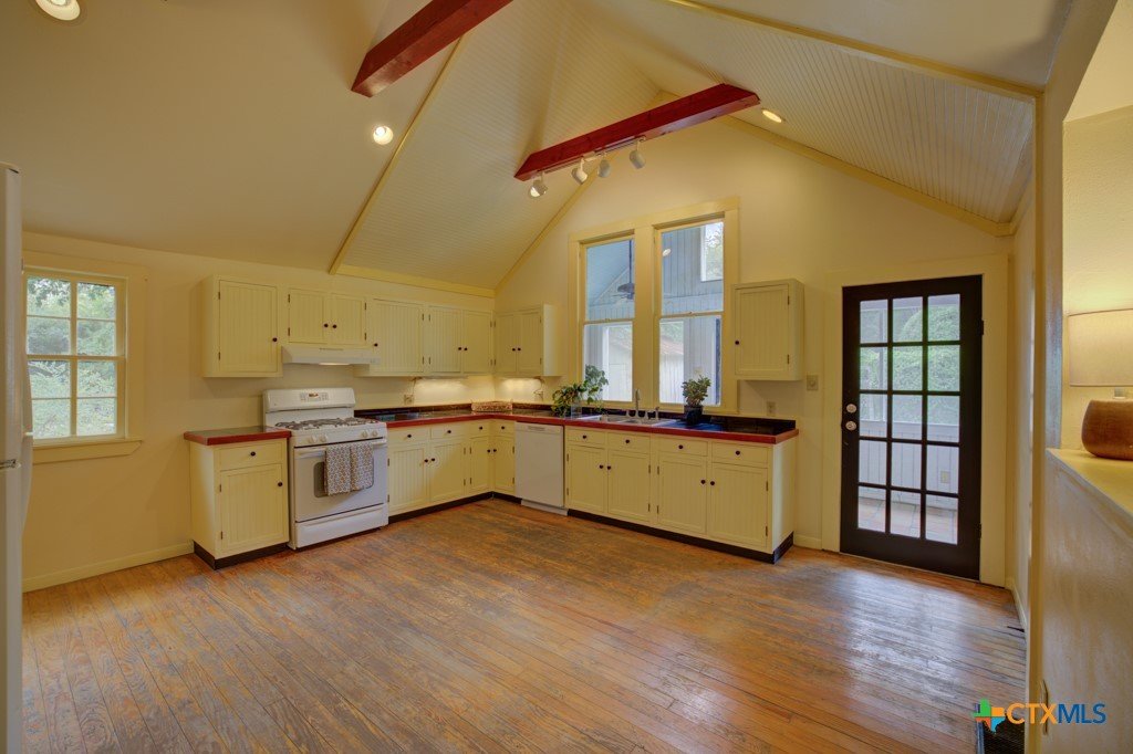 Why settle for a home that looks like a farmhouse when you could own the real thing — right in the heart of downtown San Marcos? Creative types, dreamers, and downtown dwellers — this one’s for you. This historic gem blends character and location like nothing else. Walk or bike to the river, the Square, Texas State, festivals, and trails — including Prospect Park and the 700+ acres of the Purgatory Creek Natural Area just two blocks away. Inside, you’ll find tall ceilings, original wood floors ready to shine again, a cozy fireplace, and three flexible bedrooms — including one with its own door to the front porch (hello, home office). The updated kitchen adds charm and function with vaulted ceilings, beams, recessed lighting, and a screened-in porch for morning coffee. Set on nearly half an acre, the lot offers mature trees, flowering vines, a one-car garage/workshop, and a collection of outbuildings. This is a rare chance to own a slice of San Marcos history. Whether you’re looking to restore, reimagine, or just relax in your own backyard oasis — you’ve found something special at 1316 Belvin St.