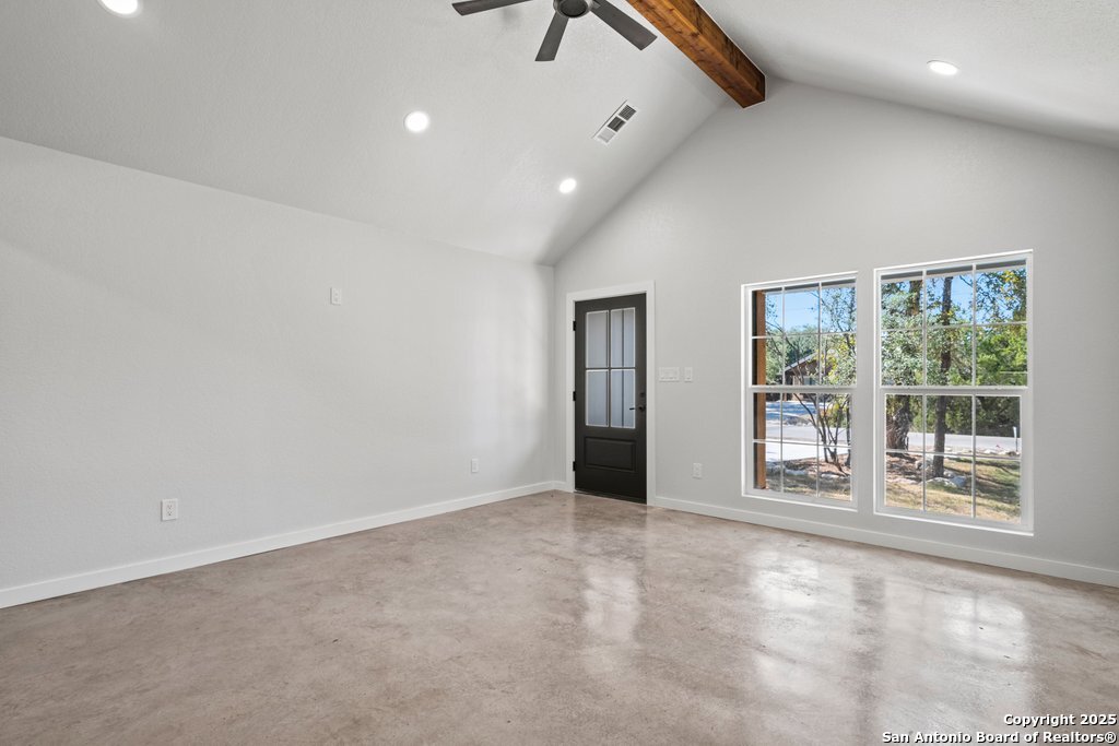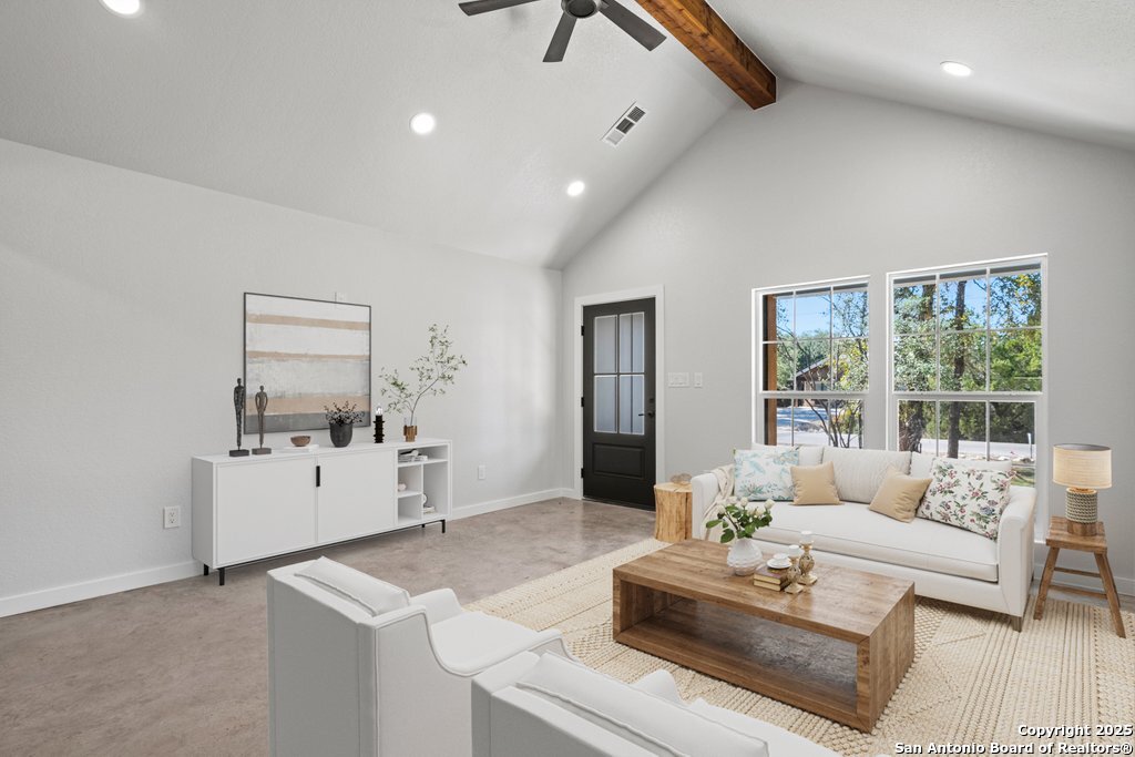 Welcome to Your Dream Home Near Canyon Lake! This beautifully constructed, brand-new residence offers 3 spacious bedrooms and 2 full bathrooms, designed with comfort and functionality in mind. The open-concept floor plan seamlessly connects the kitchen, dining, and living areas-perfect for entertaining guests or enjoying quality family time. The modern kitchen boasts top-of-the-line GE stainless steel Energy Star appliances, including: A double oven for culinary enthusiasts, A side-by-side refrigerator with water and ice dispenser, A built-in microwave and dishwasher for convenience. One standout feature: the living room's Bluetooth-enabled ceiling fan, which syncs with your smart TV or phone to deliver immersive sound-ideal for movie nights or music lovers. Additional highlights include: A mudroom for easy organization, A generously sized laundry room, A garage with a sleek epoxy-coated floor. House comes with dry creek lot (Lot 470). Located just minutes from Canyon Lake Marina, boat ramps, swimming beaches, and a variety of shopping and dining options, this home offers the perfect blend of tranquility and accessibility. Nestled between Austin and San Antonio, and only a short drive to New Braunfels, it's a prime location for both weekend getaways and everyday living. Don't miss your chance to tour this charming home-schedule your visit today!