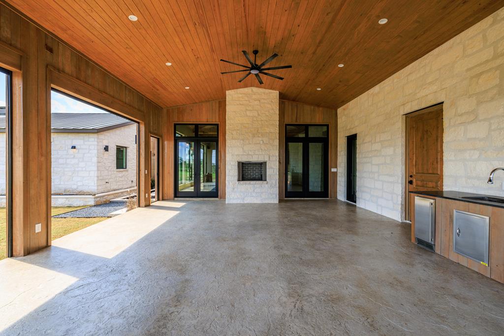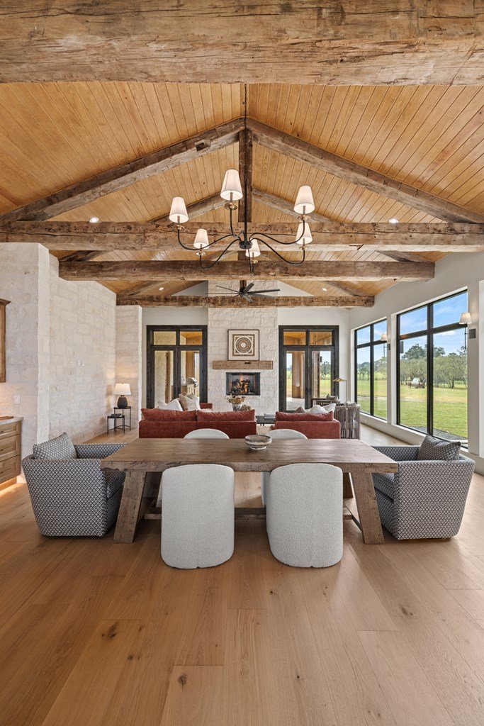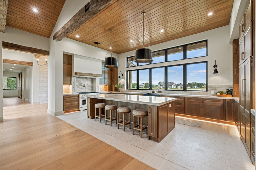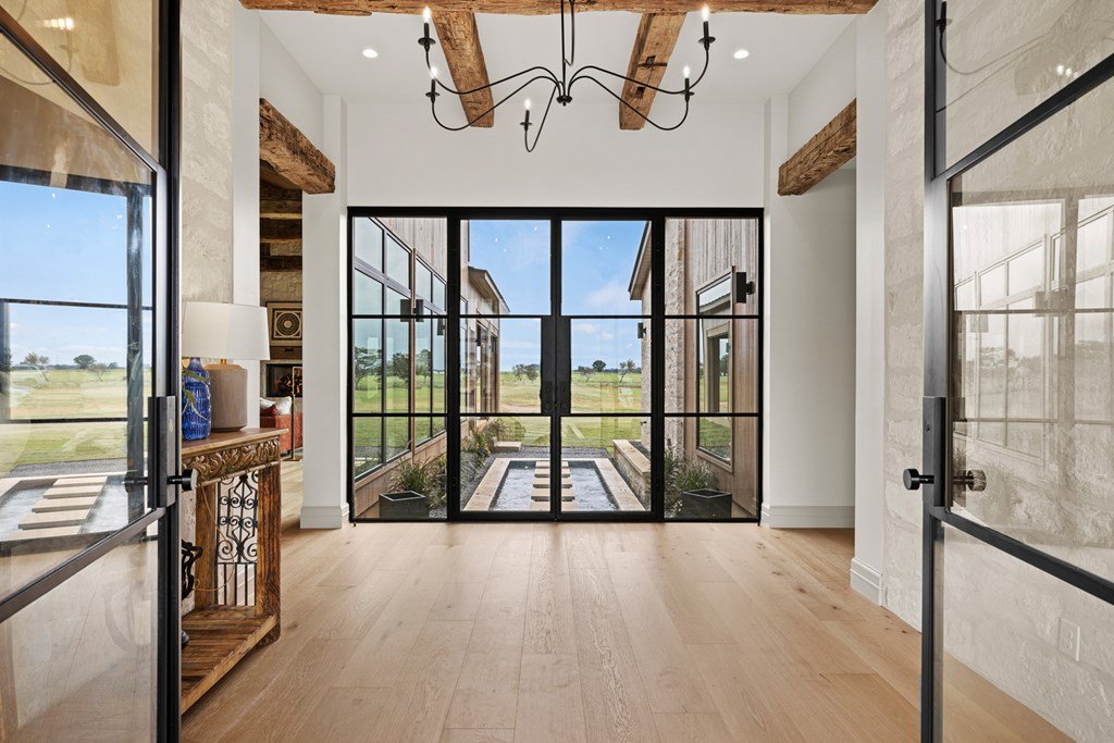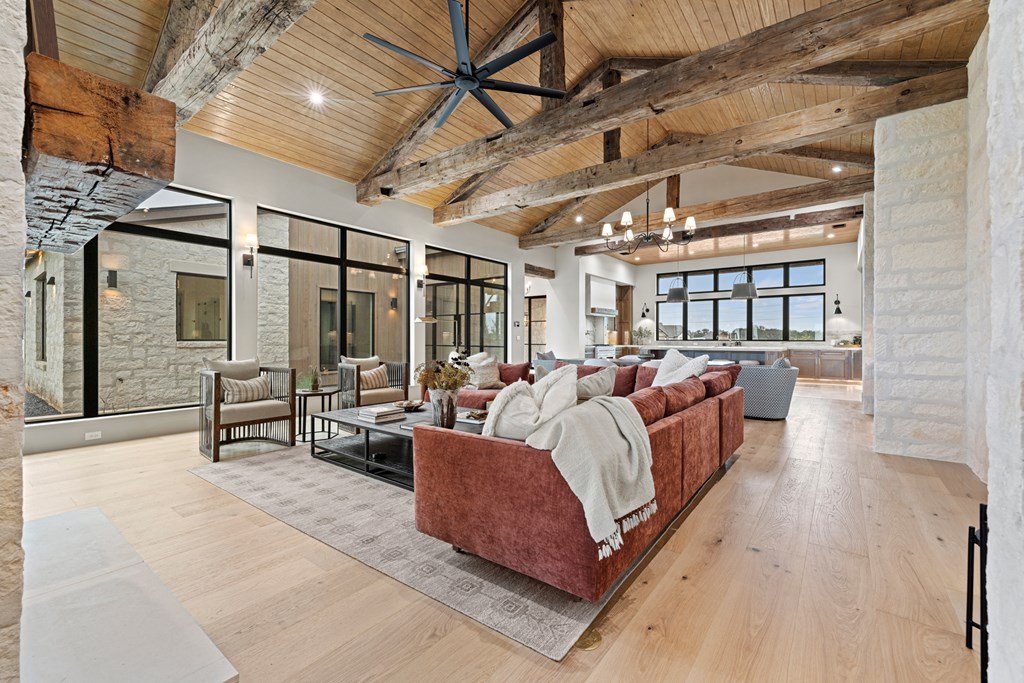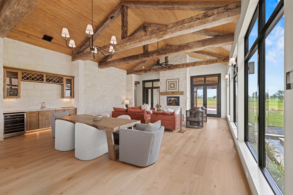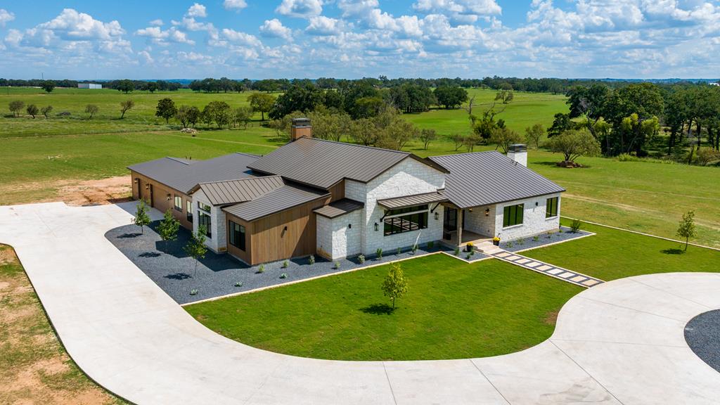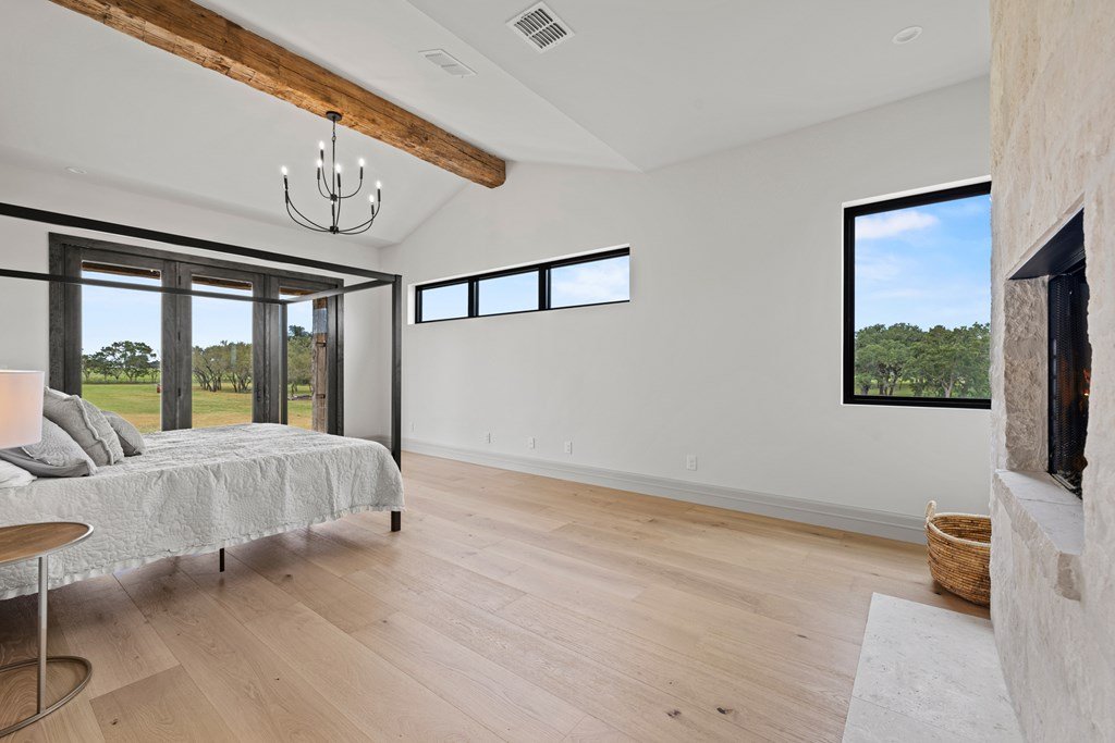 Rare Gem in Fredericksburg. Nestled just 1.5 miles from the vibrant heart of Main Street and outside the city limits, this extraordinary property offers a unique blend of luxury and ranch-style living, with no HOA restrictions, short-term rentals allowed, and additional structures permitted. 4854 SF, set on 3.54 ag-exempt acres, this home boasts serene views of a neighboring cattle farm and is perfectly positioned to enjoy the Southeast breeze from a spacious 24 x 30 motorized screened patio. Thoughtfully designed to complement its lot, this home showcases nearly every luxury you could imagine. Step into a grand double entry foyer leading to an open, light-filled space with features that include 10" French oak flooring, floor to ceiling limestone walls and 200 year old hand-hewn beams. A chef's dream kitchen with limestone floors, cabinet-panel Bosch appliances, double dishwashers, an Italian stove range, honed quartzite countertops - backsplash, toe kick and under-counter lighting, alongside a stylish wine bar for all your Fredericksburg favorites. Wood and stone accents, a butler's pantry, designer-tiled bathrooms, and versatile rooms.