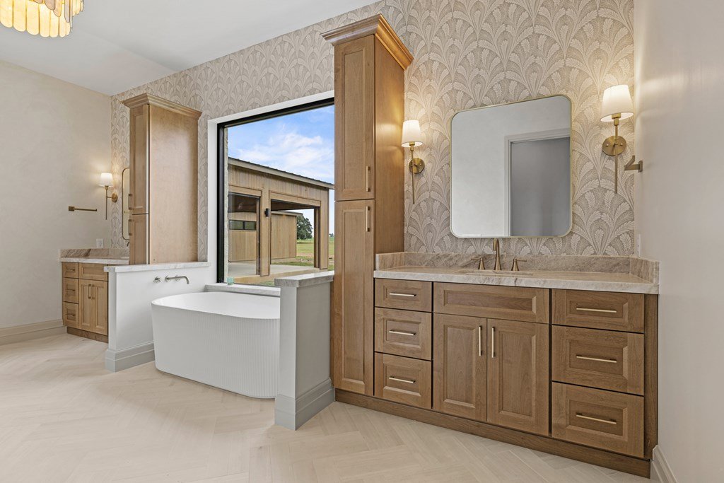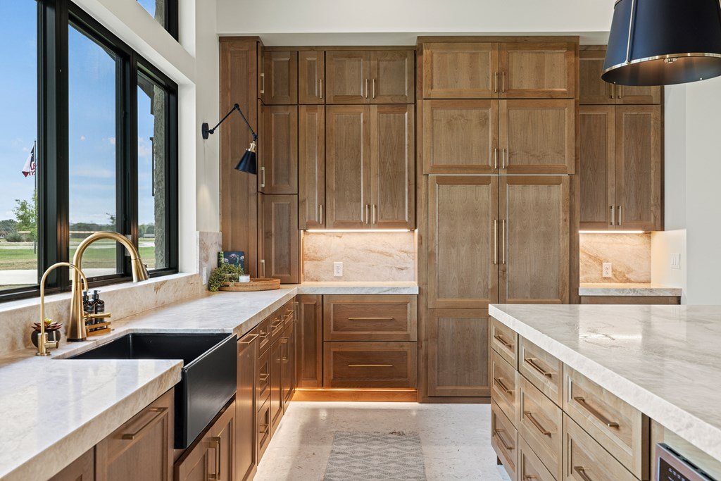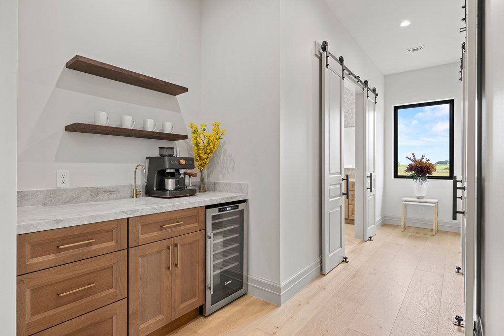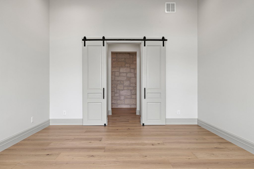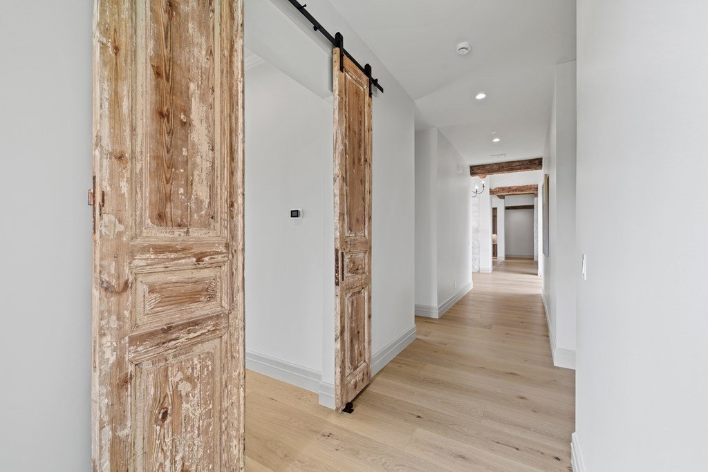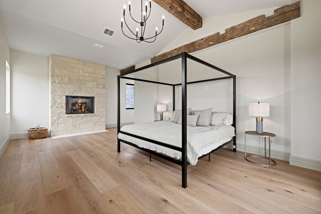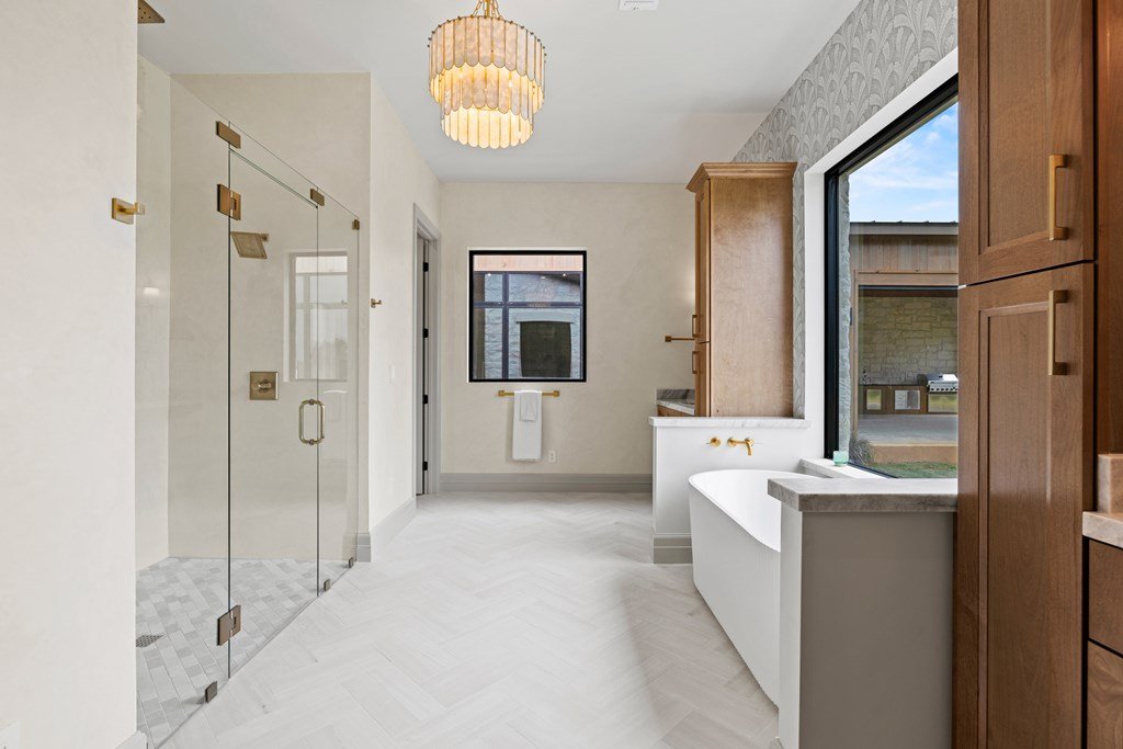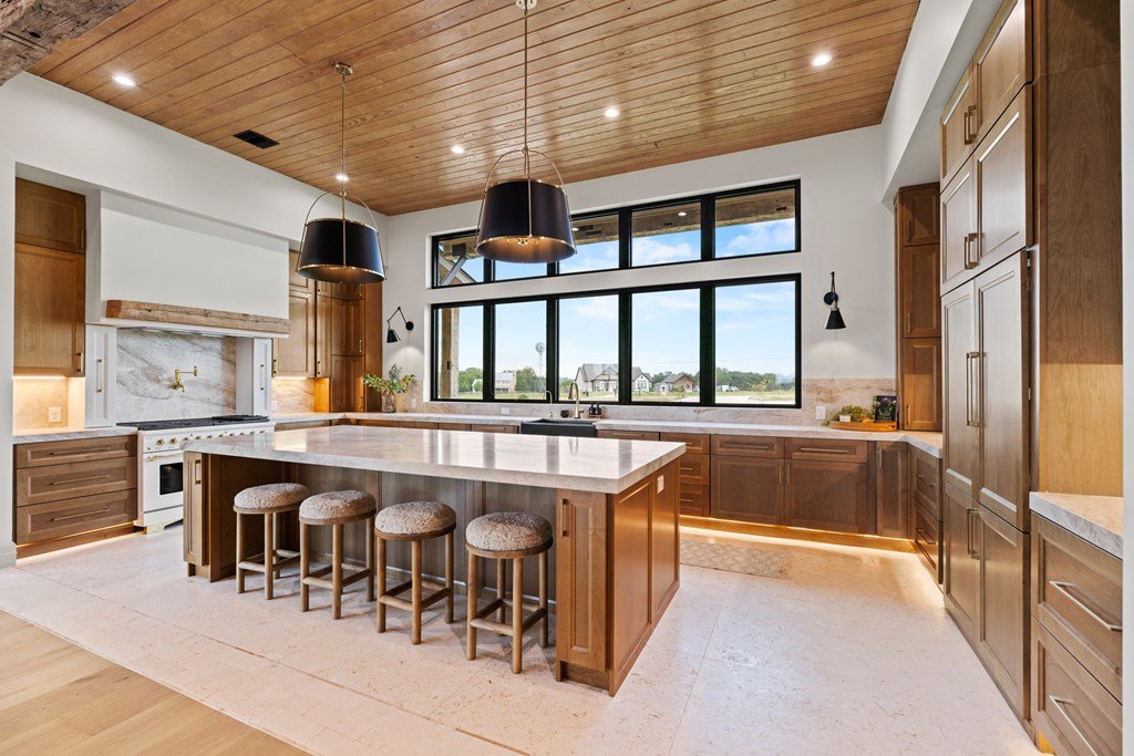 Rare Gem in Fredericksburg. Nestled just 1.5 miles from the vibrant heart of Main Street and outside the city limits, this extraordinary property offers a unique blend of luxury and ranch-style living, with no HOA restrictions, short-term rentals allowed, and additional structures permitted. 4854 SF, set on 3.54 ag-exempt acres, this home boasts serene views of a neighboring cattle farm and is perfectly positioned to enjoy the Southeast breeze from a spacious 24 x 30 motorized screened patio. Thoughtfully designed to complement its lot, this home showcases nearly every luxury you could imagine. Step into a grand double entry foyer leading to an open, light-filled space with features that include 10" French oak flooring, floor to ceiling limestone walls and 200 year old hand-hewn beams. A chef's dream kitchen with limestone floors, cabinet-panel Bosch appliances, double dishwashers, an Italian stove range, honed quartzite countertops - backsplash, toe kick and under-counter lighting, alongside a stylish wine bar for all your Fredericksburg favorites. Wood and stone accents, a butler's pantry, designer-tiled bathrooms, and versatile rooms.