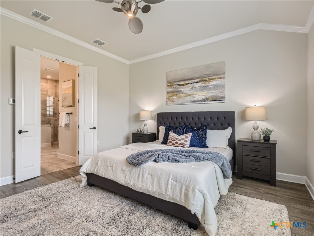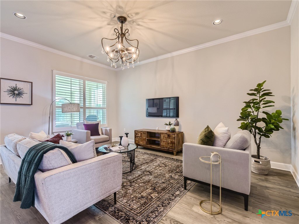 The moment you step into 132 Drawing Maple, you're greeted by a sense of warmth and tranquility. The cozy yet spacious interior is thoughtfully designed, featuring modern amenities and stylish finishes that cater to both relaxation and entertainment. This home lives like a one story but has a bonus room up that can be used as a third bedroom, studio or office. One of the highlights of living at 132 Drawing Maple is the unparalleled sense of community fostered within Kissing Tree. The neighborhood buzzes with activity, offering residents a myriad of opportunities to connect, socialize, and engage in shared interests. From group fitness classes and community events to leisurely strolls along scenic trails, there's always something happening just steps away from your doorstep. Beyond the boundaries of the neighborhood, Kissing Tree is surrounded by the natural splendor of the Texas Hill Country. Residents of Kissing Tree have easy access to a wealth of outdoor recreational activities, including hiking, biking, pickleball, tennis, golf and much more. Whether you're exploring the nearby parks and trails or simply soaking in the breathtaking views from your own backyard, the beauty of the landscape never fails to inspire awe and wonder. The San Marcos outlet mall is minutes away and has anything you need for a fun filled day of shopping. The neighborhood has a low tax rate of 2% and is an easy commute to Austin or San Antonio. Kissing Tree is a 55+ resort style community! Tulane floor plan.