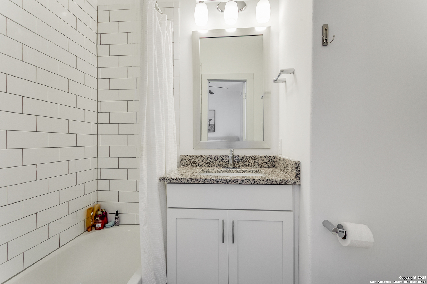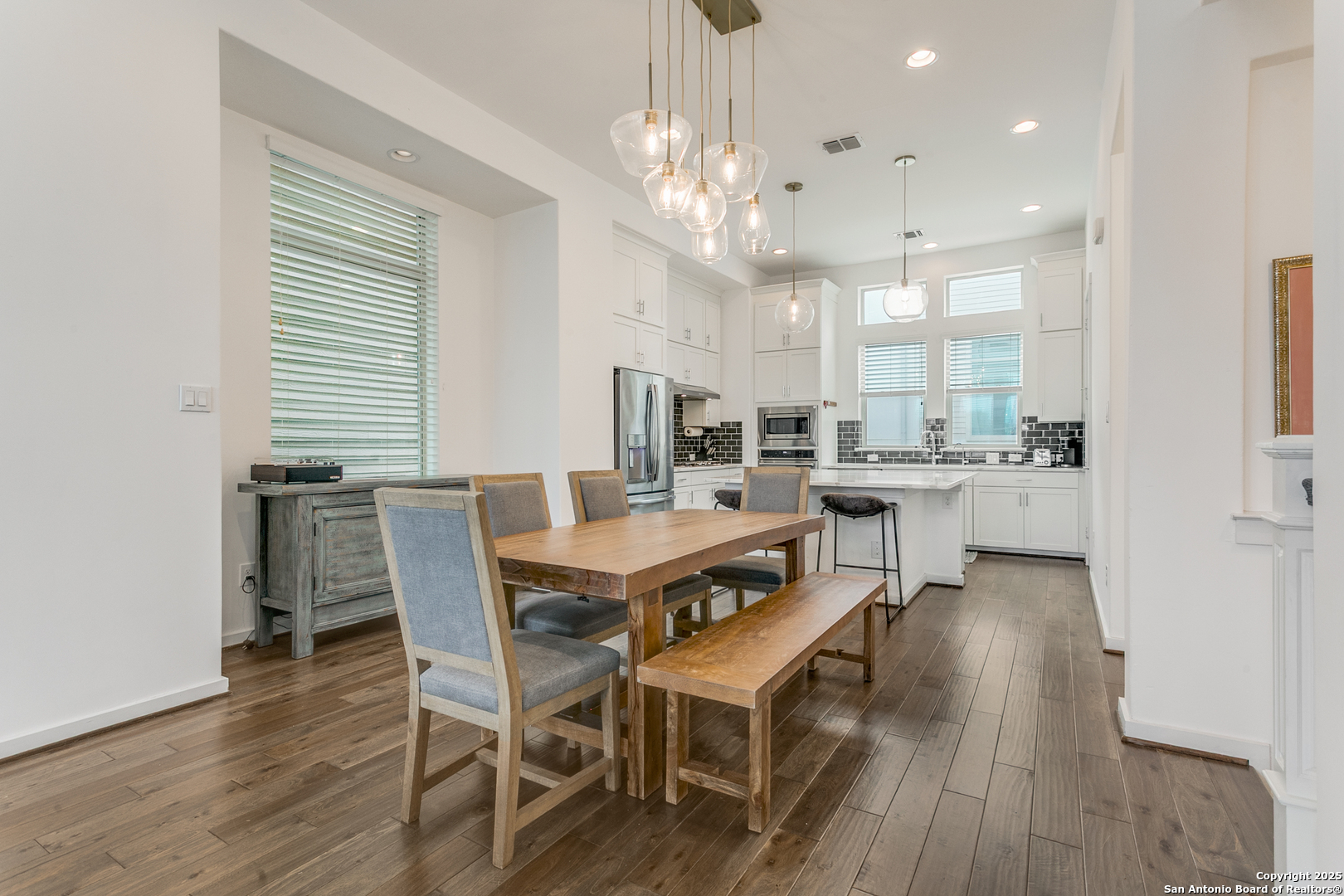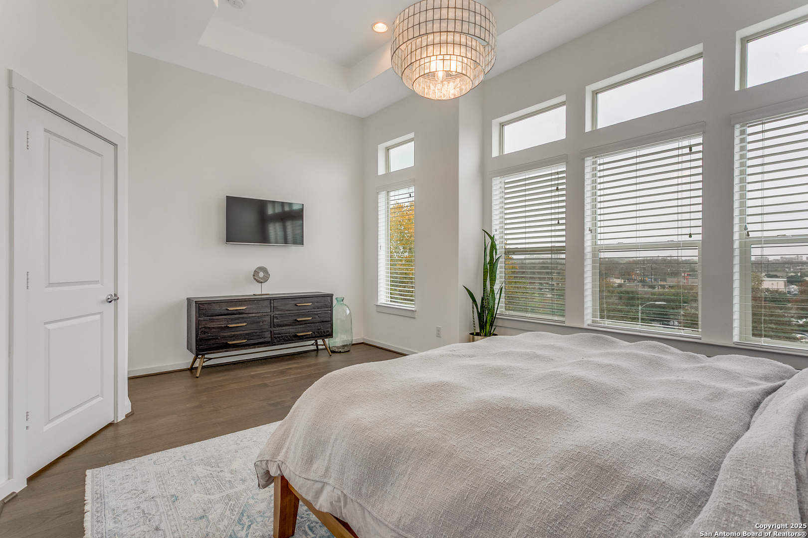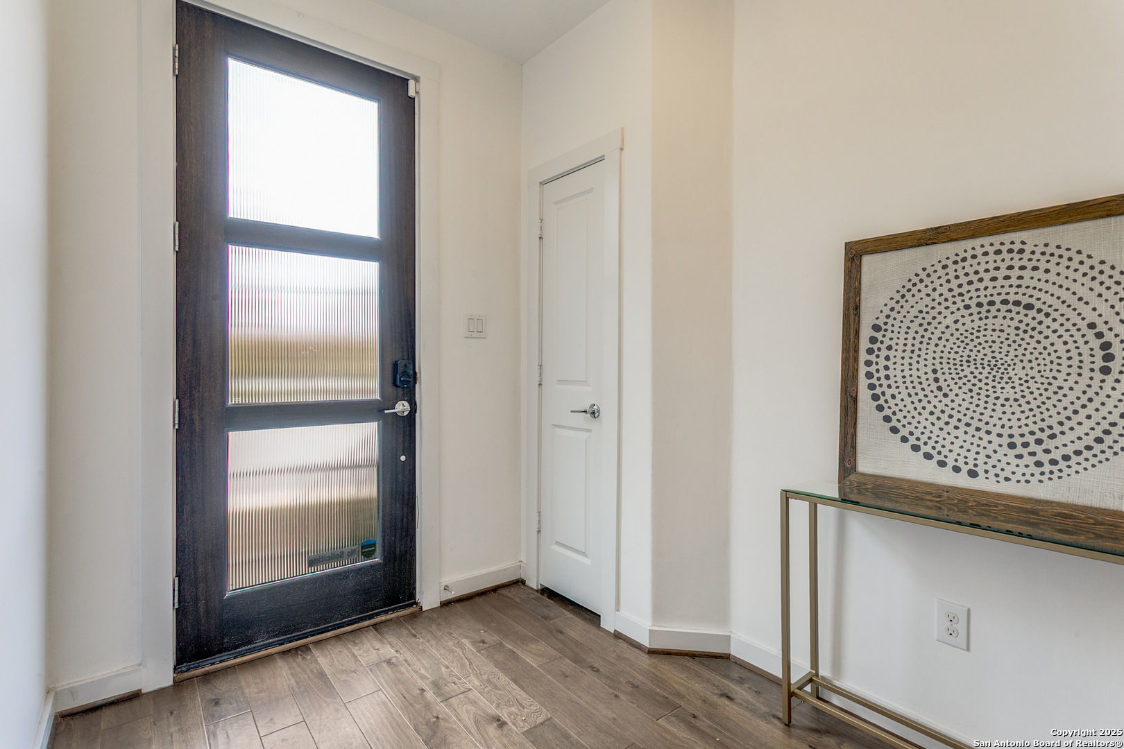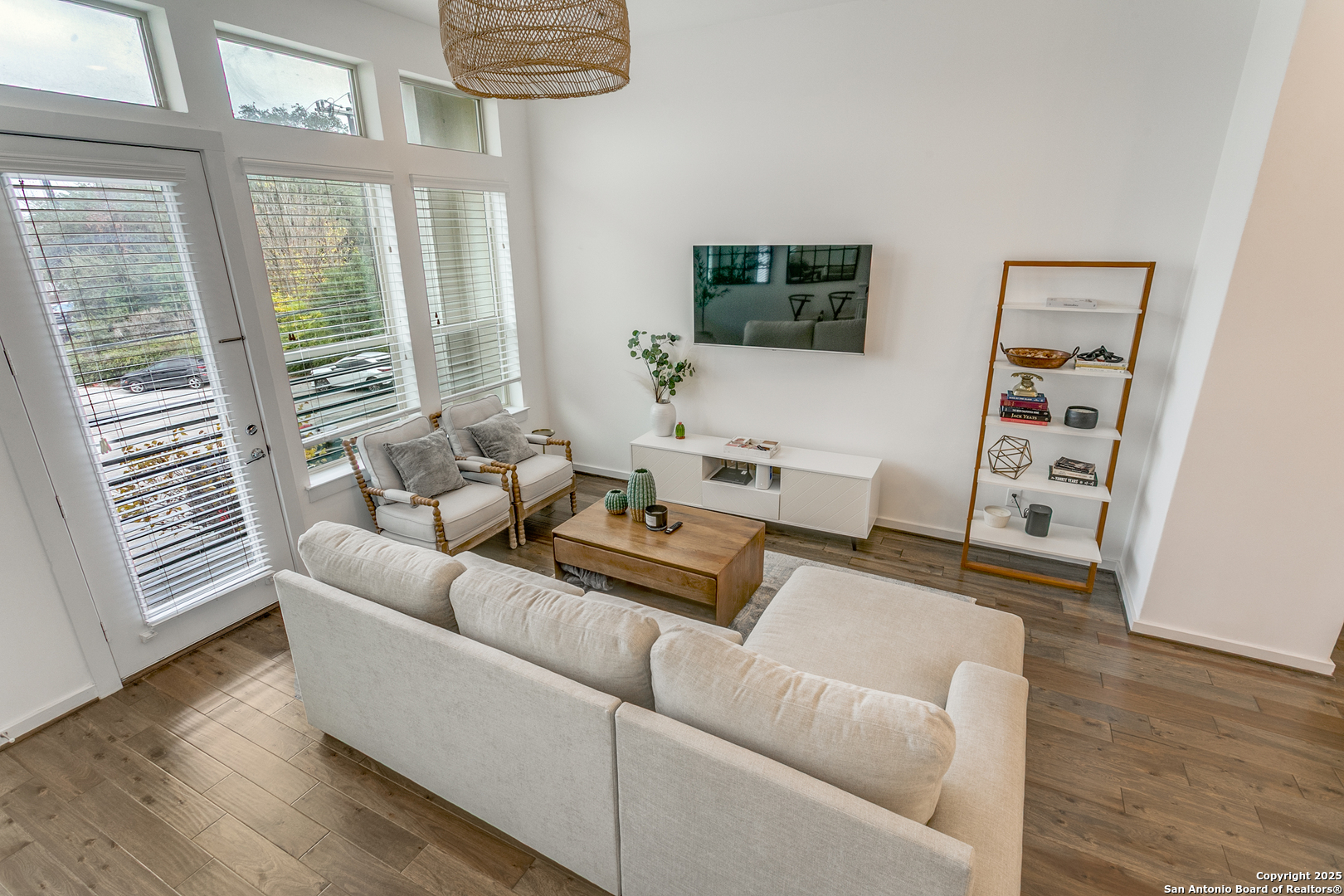 This 3 bedroom energy efficient home with 3 and a half baths was built in 2017 and is located within walking distance of The Doseum, Breckenridge Park and the San Antonio Zoo. As you approach the residence, you immediately notice the curb appeal of the manicured lawns that are maintained by the HOA as well as the modern design and inviting 8 foot front entry door. You enter to gorgeous hardwood floors leading to the first floor bedroom with walk in closet, ceiling fan, 2" faux wood blinds and full on-suite bath. You head up stairs to the open main living space with high ceilings, natural light, smooth texture walls and neutral paint and more hardwood floors. The gourmet island kitchen boasts abundant white cabinets, 5 burner gas cooking, matching GE Cafe Stainless Steel Appliances including the refrigerator that conveys, upgraded granite countertops, subway tile backsplash, breakfast bar filtered drinking water at the double undercount sink and corner pantry. Just off the large living room is your private balcony with views. There's also a well appointed half bath for entertaining guests. The third level features two more bedrooms including the spacious master suite with tray ceiling, and spa like bath boasting ceramic tile floors, super mud set shower with dual Moen fixtures and frameless glass. There are dual vanities, granite counters, all chrome fixtures, trimmed vanity mirror, linen closet and ample walk in closet with built ins. The third bedroom also features walk in-closet, ceiling fan and full bath. The utility room is conveniently located just off the master and includes matching GE washer and dryer. The fourth level features a 7x6 flex or storage space as well as access to the private shaded rooftop terrace with gas stub out and more views. The energy efficient David Weekley home also includes radiant barrier, cellulose insulation and high-efficiency Trane HVAC system. Finally, there's a rear entry 2 car garage with built in storage, wifi enabled sprinkler system, eco water systems water softener, EV charger and tankless gas water heater. Come enjoy city living in 78209 with easy access to all this great city has to offer.