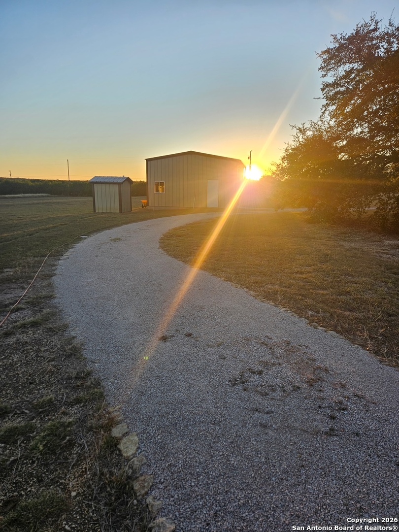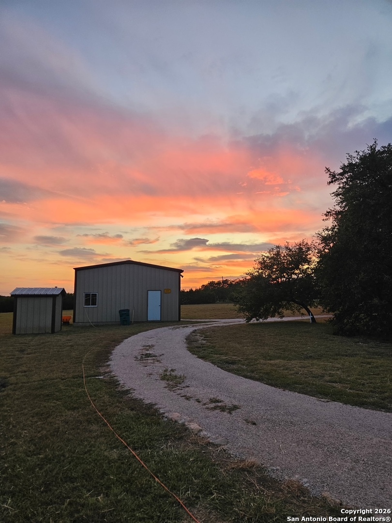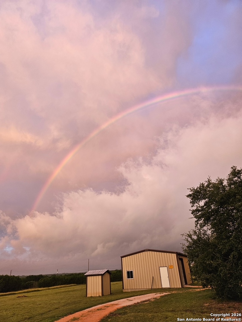 4 acre corner lot of amazing, picturesque land that looks like a scene from a painting or a photograph. Amazing sunrise, sunset and natural views create an ideal type of landscape that has an artistic appeal in that it is beautiful but also with some elements of wildness. Quiet and peaceful living in the Texas Hill Country with bold and bright colored skies and nightly star filled heavens above that are bigger and more spectacular than you can imagine, producing an intense peaceful feeling, creating an image in your mind that it is so clear you can almost touch it. You must see it for yourself. Existing utility improvements installed in 2016 include 340' deep water well and well house, a gravity septic system and concrete tank for 240 GPD service for 3 bedrooms up to 2500sf home, 200 amp Main Electric Service panel and separate electrical service panel at the 700sf metal building/Shop/Garage. Ranch fencing at East/West and North/South front corner along CR 304. The owner has created a spectacular entrance through a grove of trees both beautiful in a dramatic and impressive way that is worthy of special attention, going beyond simple prettiness to something truly remarkable.