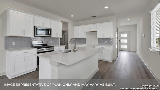 OCTOBER ESTIMATED COMPLETION. LOCATED NEXT TO I-35! The Jasmine II is a two-story floorplan that offers 2,177 square feet across 4 bedrooms, a loft, and 2.5 bathrooms. Walking into the open foyer, you'll pass the powder room and an extra storage closet. The entry way guides you into the open kitchen and dining area featuring a spacious kitchen island. The kitchen also features stainless steel appliances throughout, quartz countertops, and decorative tile backsplash. The kitchen and dining room are open to the large famil