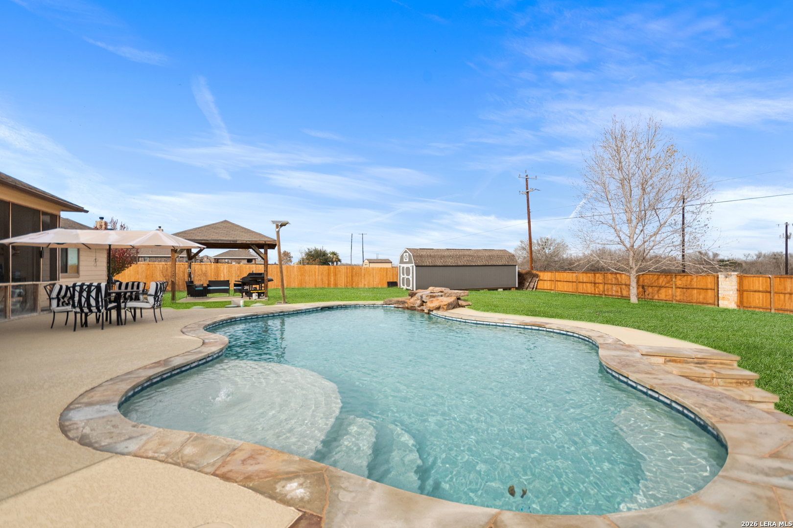 ** OPEN HOUSE 1-3PM ON SUNDAY 3/22! ** Welcome to your own private oasis! This brick 4 bedroom, 3 bath home sits on a quiet cul-de-sac on OVER an acre of space to enjoy. Inside, you'll love the flexible layout with a dedicated office perfect for working from home! Inside find two dining spaces, guest wing quarters, and all rooms are generously sized with walk -in closets! Outside is where this home really shines. Take a dip in the waterfall pool, relax in the screened-in seating area, or spread out across multiple outdoor hangout spots-there's room for everyone. The new fence keeps the space open and inviting, while storage outbuildings add tons of extra space for gear, hobbies, or weekend projects. A private driveway and side-entry garage makes it perfect for those who need additional parking space! Private, spacious, and made for fun-this is a home you'll be excited to come back to every day. THIS HOME QUALIFIES FOR AN $0 DOWN USDA LOAN!