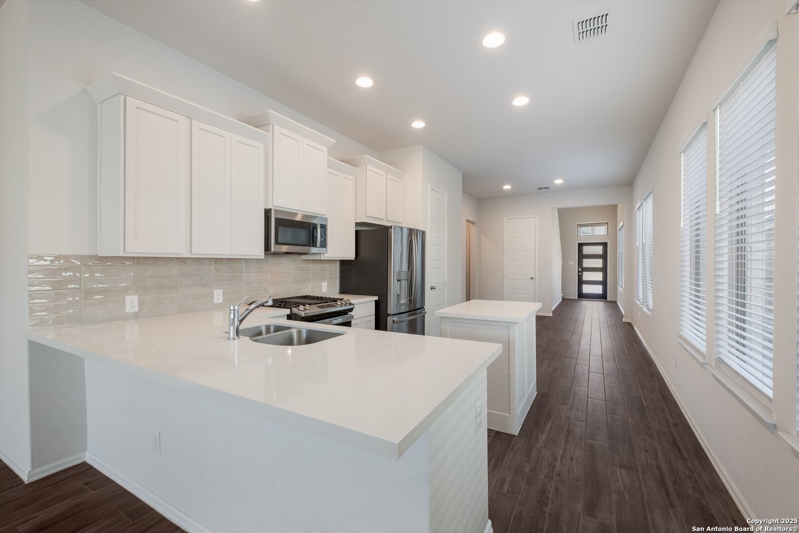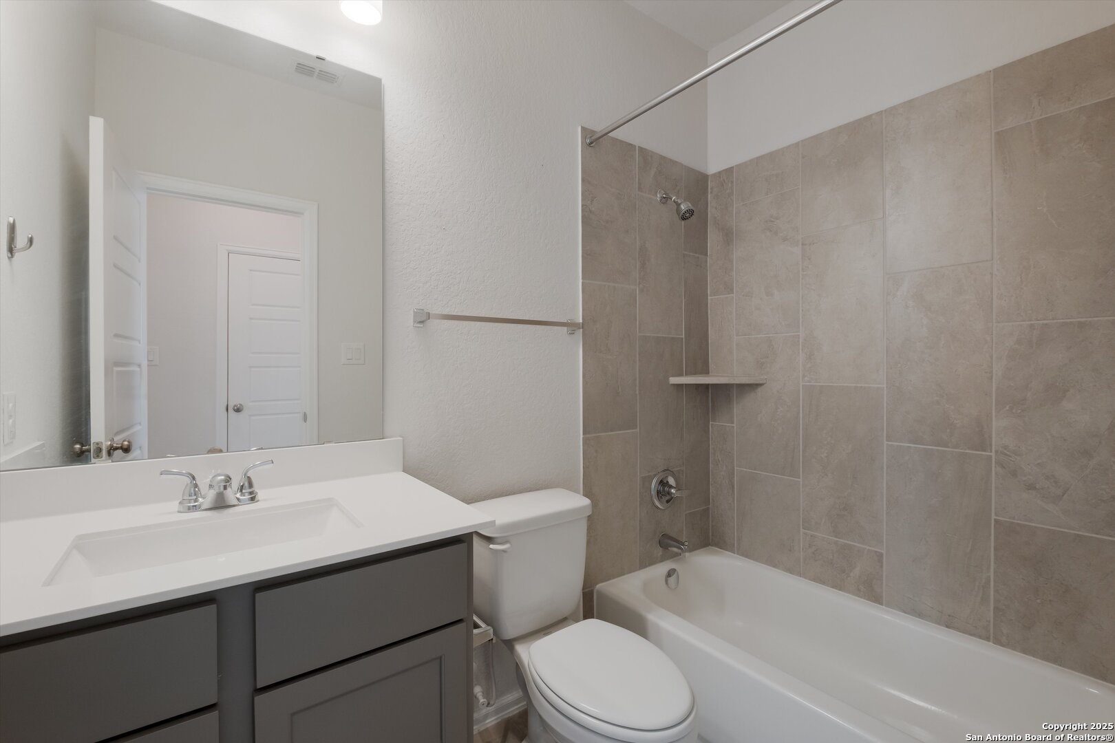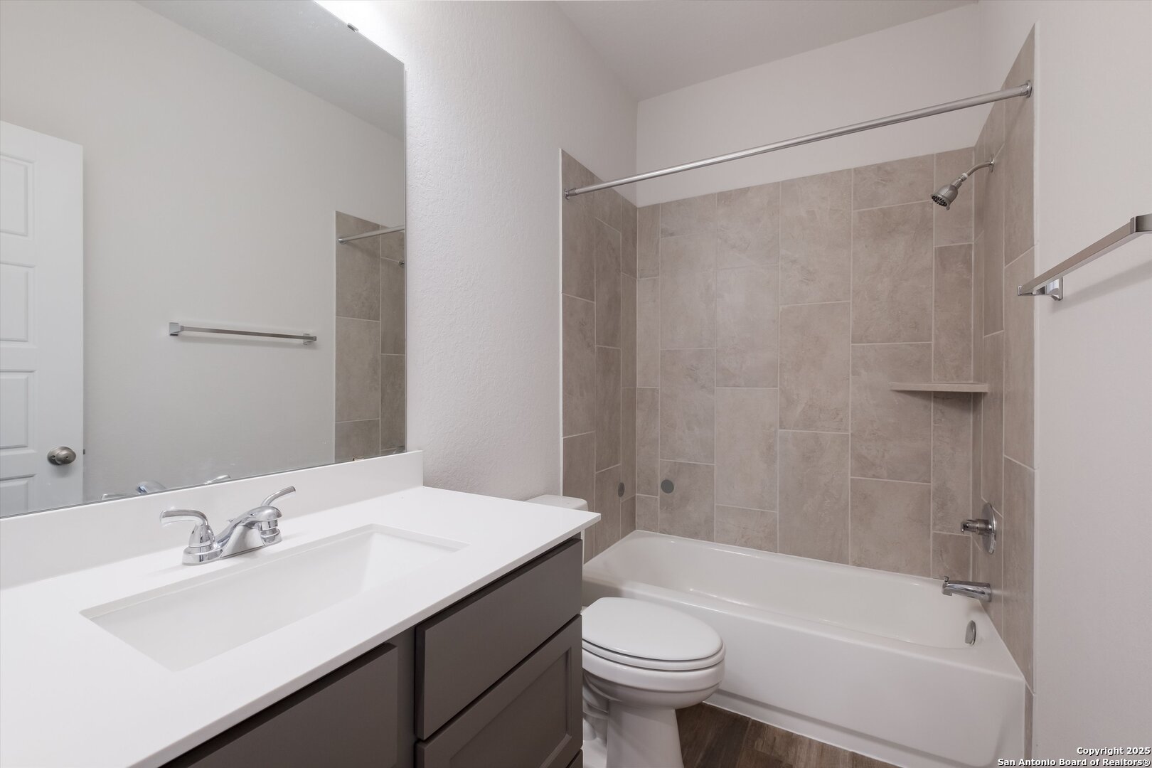 Step into this stunning Perry home located in the highly desirable Veranda subdivision. This thoughtfully designed residence boasts an open-concept layout, perfect for both everyday living and entertaining. The kitchen is a chef's dream, featuring sleek quartz countertops, an expansive island, stainless steel appliances, and gas cooking. The wood-like tile flooring throughout adds elegance and durability. Retreat to the oversized primary bedroom, your personal sanctuary, with an en-suite that includes a spacious stand-up shower and double vanity. Two secondary bedrooms on the main floor provide versatility, while an additional bedroom and game room upstairs create endless possibilities. Enjoy Texas evenings on the covered patio, overlooking a beautifully maintained yard enhanced by a sprinkler system. Modern conveniences like a tankless water heater ensure comfort and efficiency. Located within the top-rated Northside School District, this home offers exceptional education options. This is where your next chapter begins!