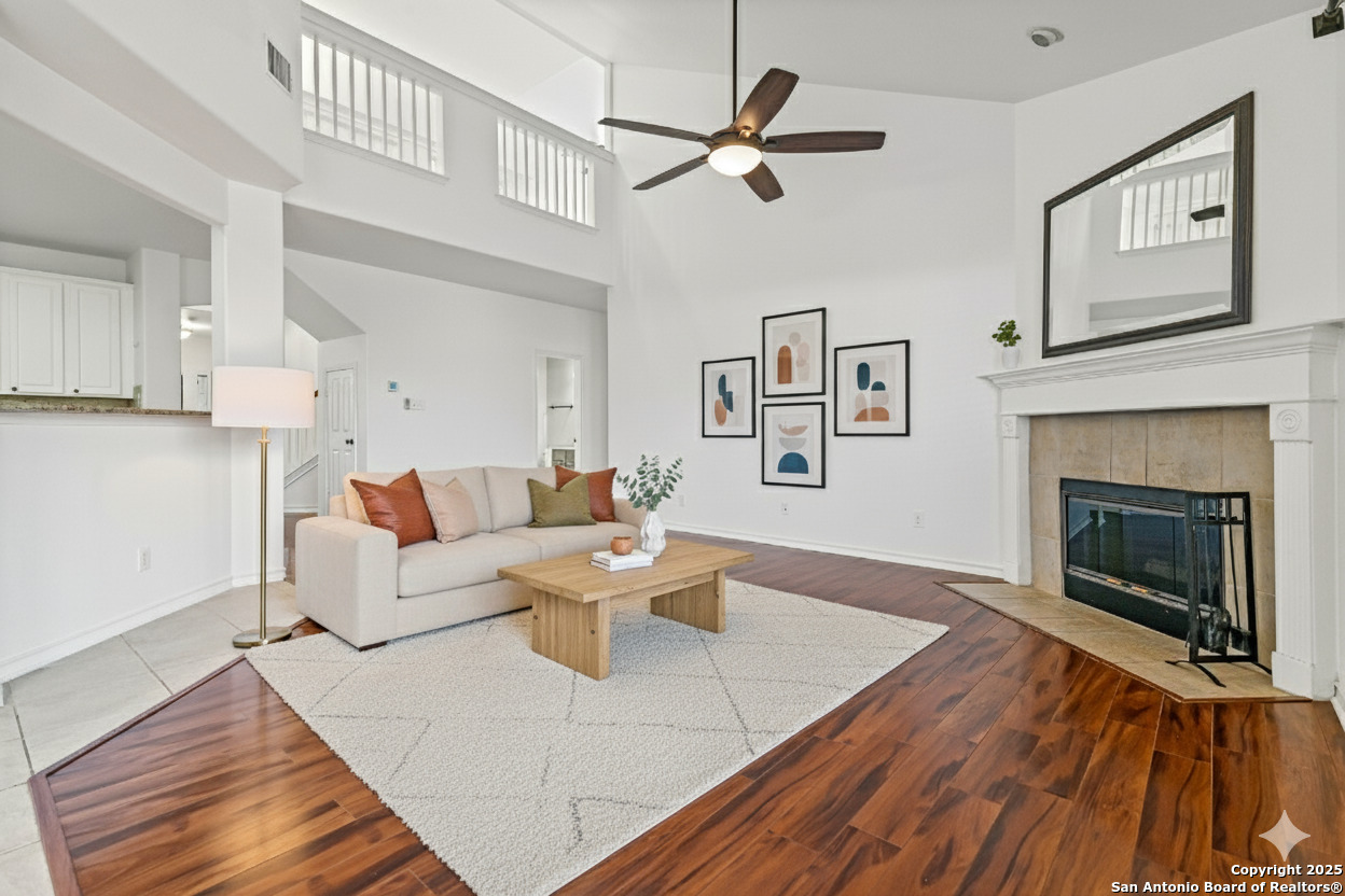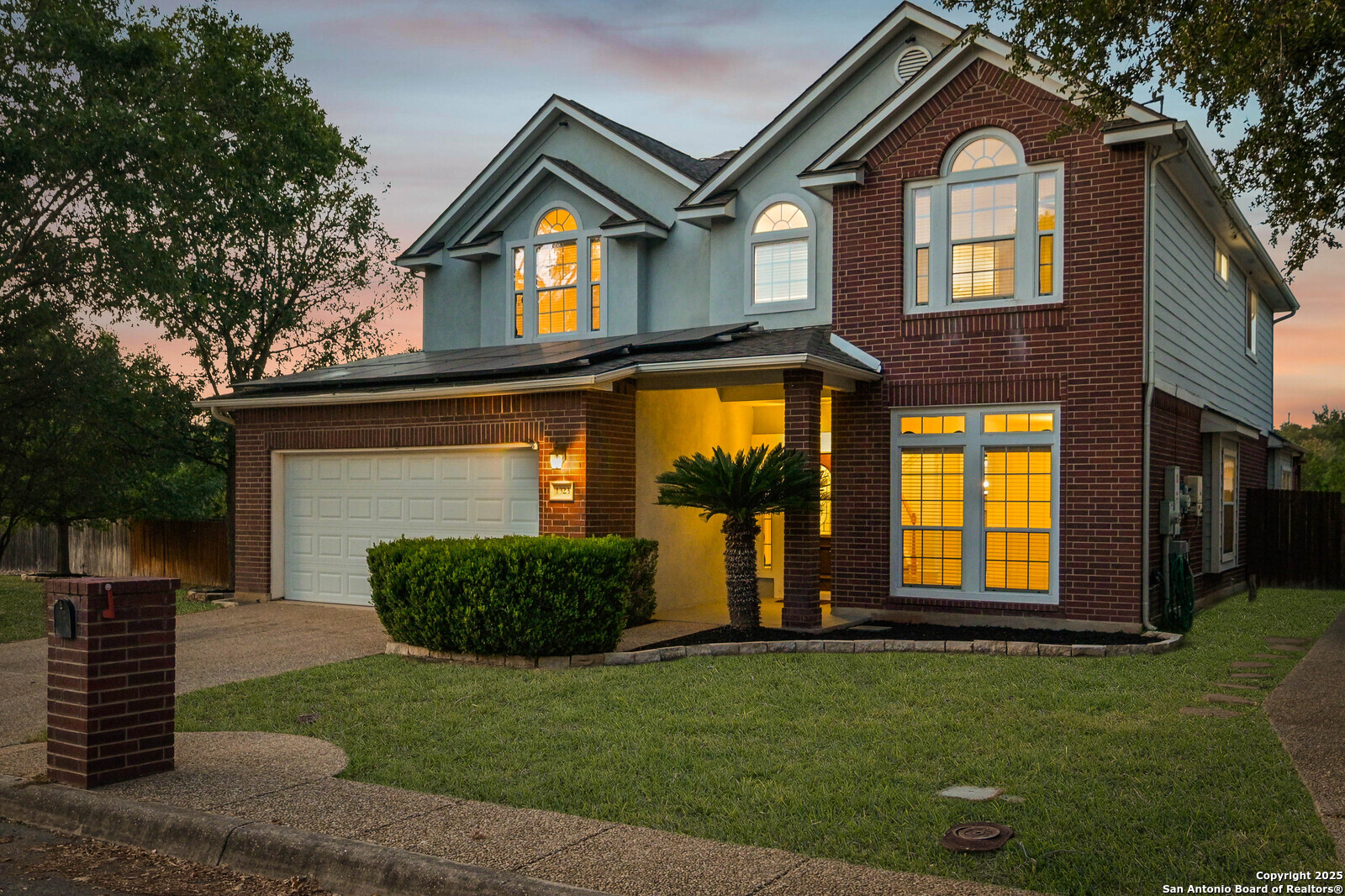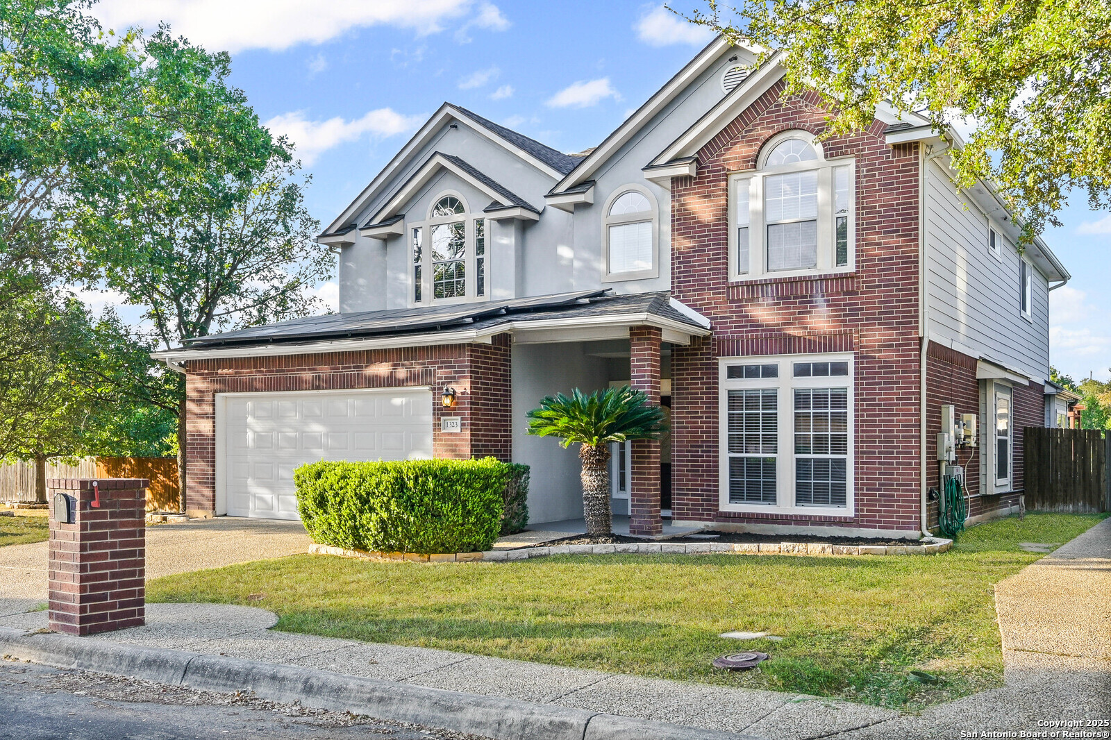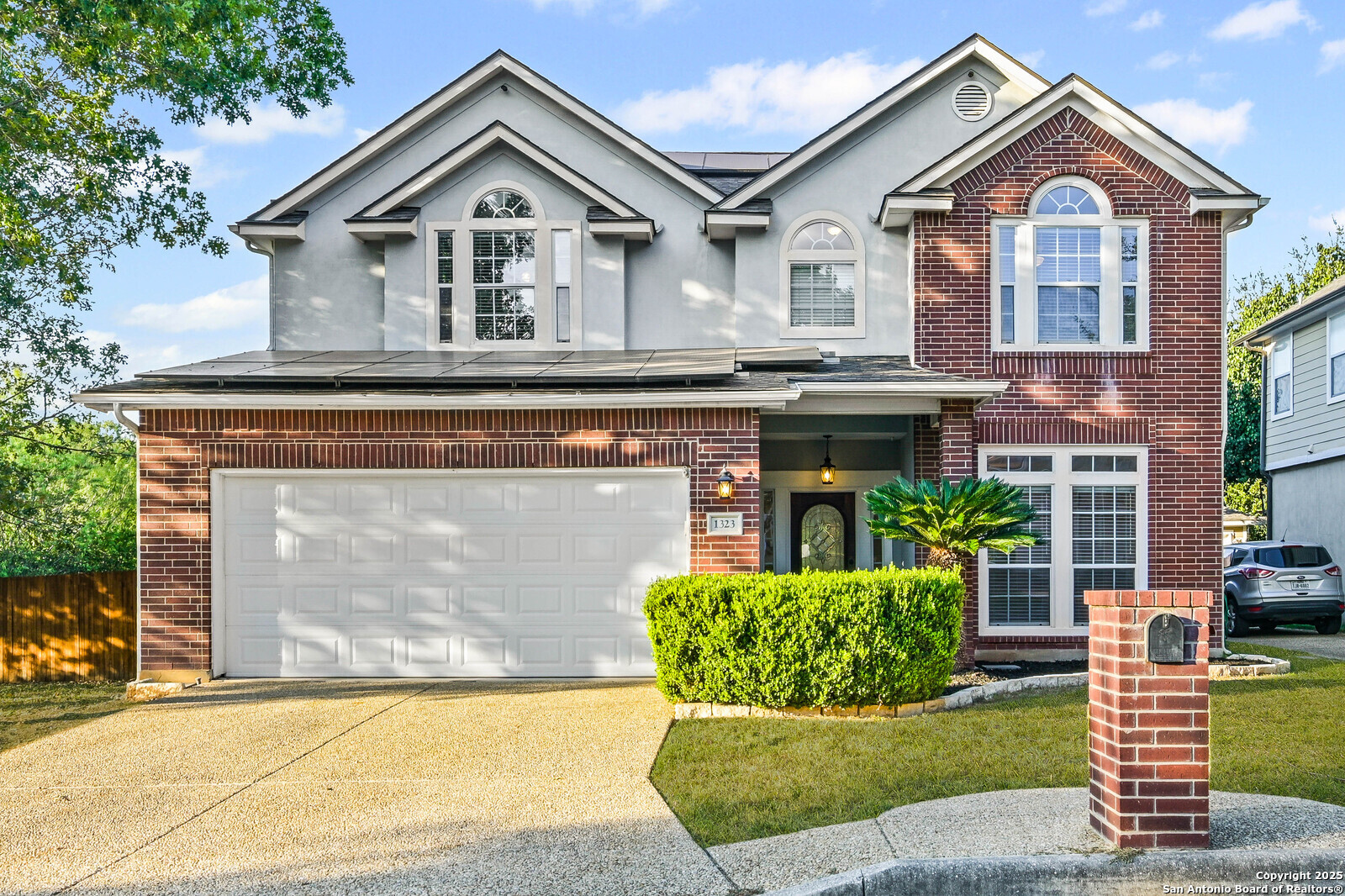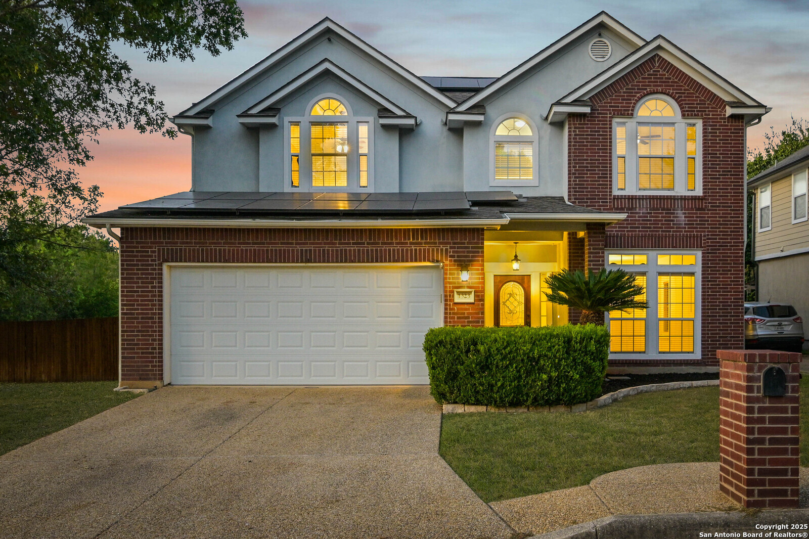 Located in the highly sought-after Blanco Bluffs community, this beautifully maintained 4-bedroom, 2.5-bath home offers an ideal blend of space, style, and privacy. With approximately 3,115 sq ft of living area, this home features multiple gathering spaces including a formal living room, family room, and an upstairs game room-perfect for entertaining or relaxing. Recent cosmetic updates exceeding $25,000 include fresh interior paint, upgraded kitchen cabinetry, and an extended back-patio concrete slab, creating a light and inviting atmosphere throughout. The home sits on a generous 0.27-acre cul-de-sac lot shared with only one other property, providing extra parking and outdoor flexibility. The backyard backs up to a peaceful greenbelt lined with mature trees, offering a private and scenic setting rarely found in this area. Fully paid-off solar panels deliver exceptional energy savings-reducing average utility costs by more than 65%. Enjoy efficiency and long-term value without any additional costs! This is where the magic happens for the new home buyer who loves to keep their home cold at all times without the feeling like you're paying a car payment to do so! Conveniently located near Blanco Road, Loop 1604, and Highway 281, this home offers quick access to shopping, dining, and top North Central ISD schools while maintaining a quiet residential feel. It's literally like living in the country at the VERY BACK of the neighborhood but still being right in the heart of EVERYTHING! PERFECTION OF LOCATION! Don't miss the opportunity to own one of the most private and spacious lots in Blanco Bluffs-schedule your showing today.