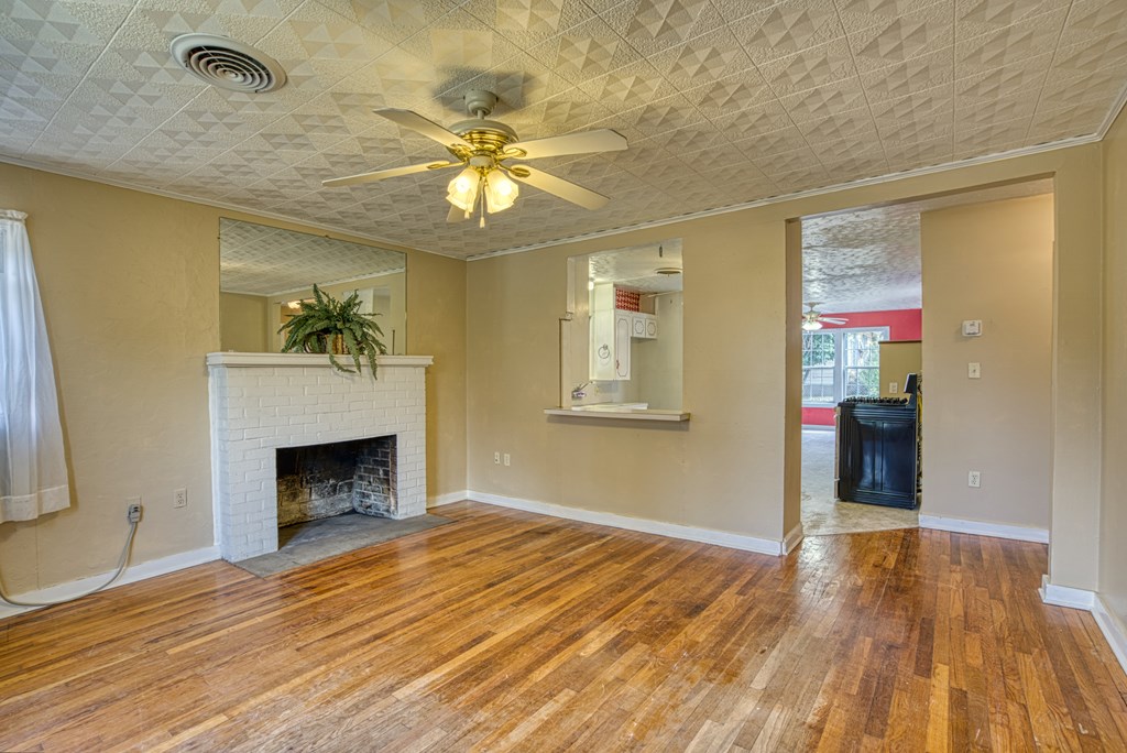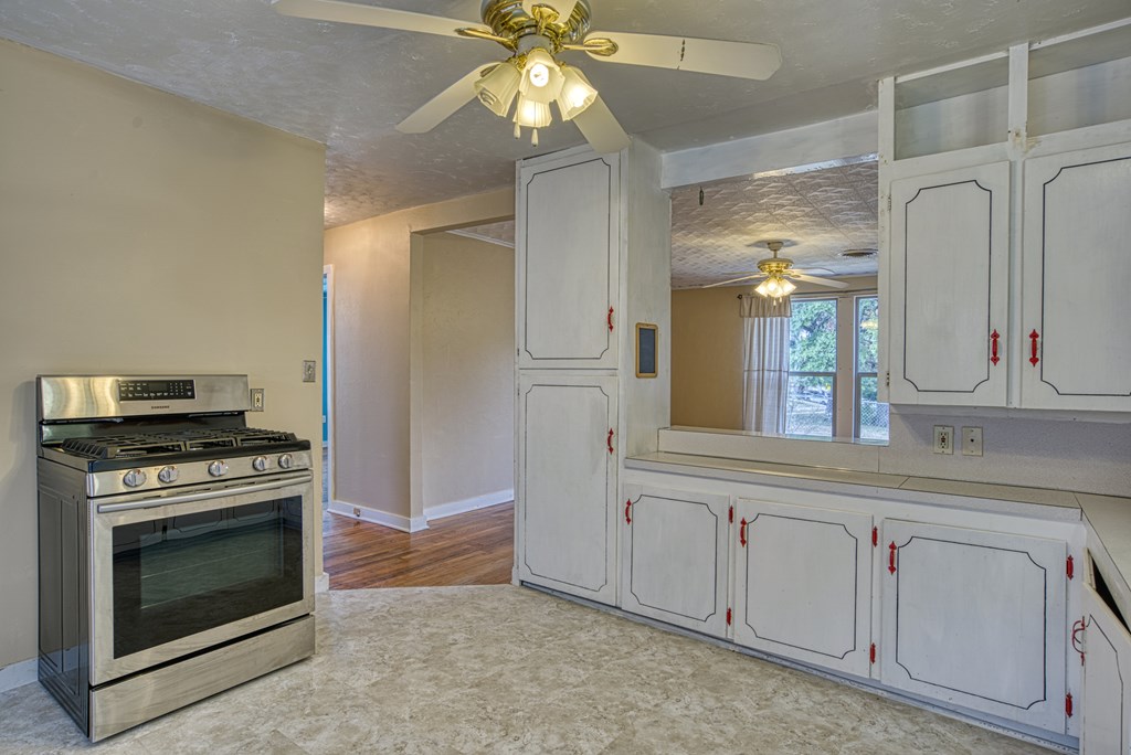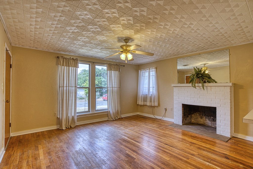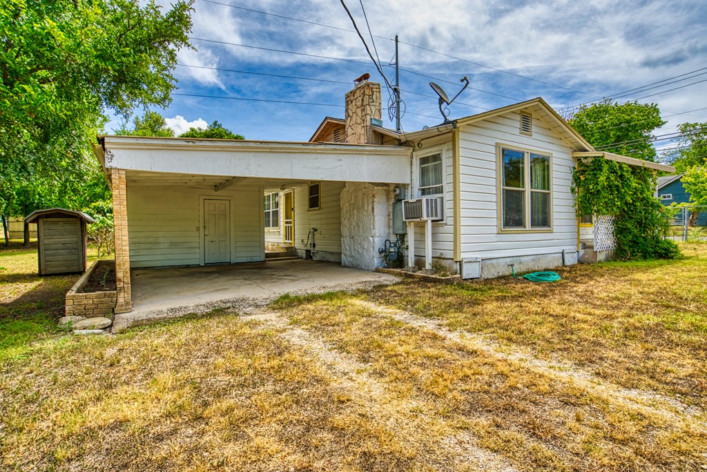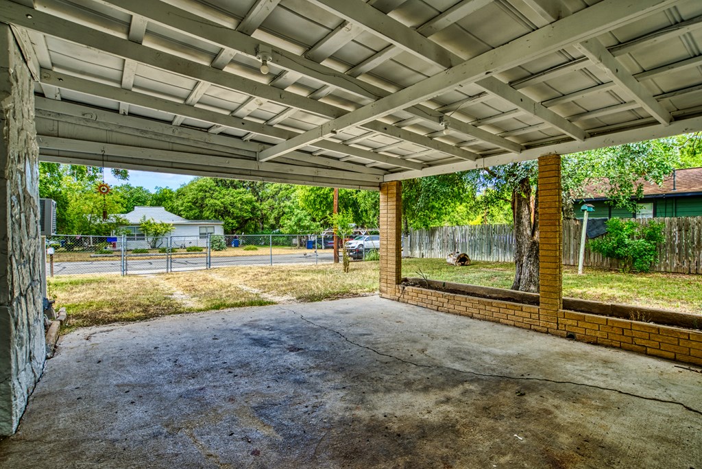 Charming two bedroom, one bath home perfect for a rental investment or someone that does not mind putting a little sweat equity into their next home. This home sits on a spacious, completely fenced corner lot and features a good sized carport with a small workshop. There are connections for a washer/dryer underneath the carport. Inside the home there is a mix of original hard wood & vinyl flooring. The living room has a wood burning fireplace & little bar that opens through to the kitchen. The kitchen is spacious with a stainless gas range & it is open to a large dining area that could be also used as a den or 2nd living area. The bedrooms are tucked away down a hallway with the bathroom. The composition roof on the house & all but two windows were replaced in 2013.