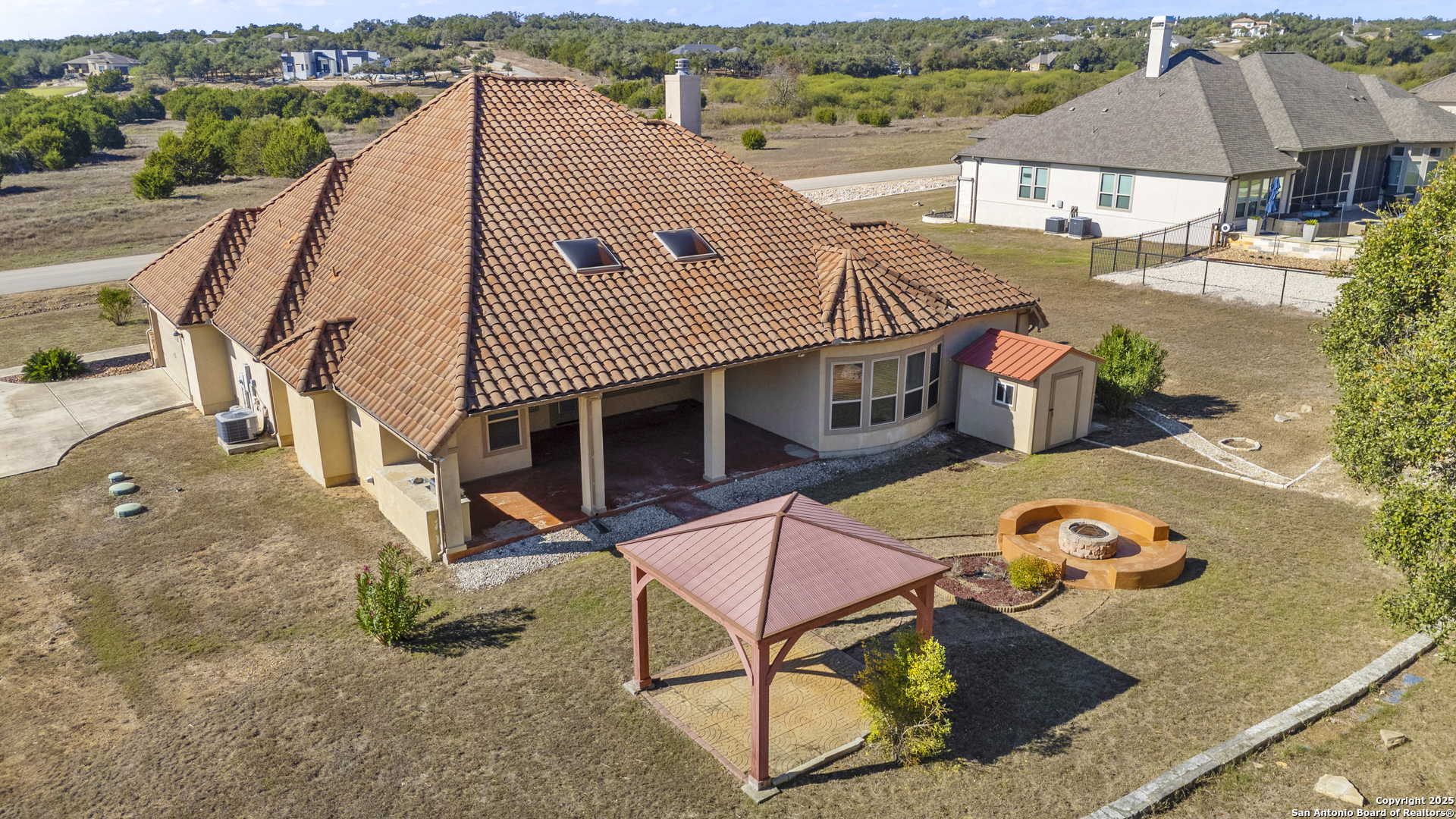 If you've been waiting for the right moment to enter Vintage Oaks-this is it! A gorgeous home, an unbelievable lot, and unlimited potential to make it truly your own. Discover exceptional Hill Country living in this gorgeous 4-bedroom, 4.5-bath residence nestled on a beautiful one-acre, partially oak-studded lot in the highly coveted Vintage Oaks community. Homes at this price point in Vintage Oaks are truly rare-this is your chance to secure an incredible value in one of New Braunfels' most desirable luxury neighborhoods. Step inside and you'll find a home that feels both elegant and welcoming. The chef's kitchen is the heart of the home, offering generous prep space, custom cabinetry, and a layout ideal for everyday living or large-scale entertaining. Just steps away is a dedicated entertainment room, perfectly designed for movie nights, cozy weekends, or rainy-day gatherings with family and friends. The living spaces flow effortlessly outdoors to a spacious covered patio and full outdoor kitchen, creating an entertainer's dream. Whether you're hosting weekend get-togethers or soaking in the serenity of the surrounding mature oak trees, this backyard offers relaxation, privacy, and endless potential. Inside, the home continues to impress with four generous bedrooms, each with access to its own bath, and a large laundry room that delivers outstanding storage and flexibility. With beautiful bones and an incredible setting, this residence offers the unique opportunity to add your personal touch and elevate it into the showpiece it's meant to be.