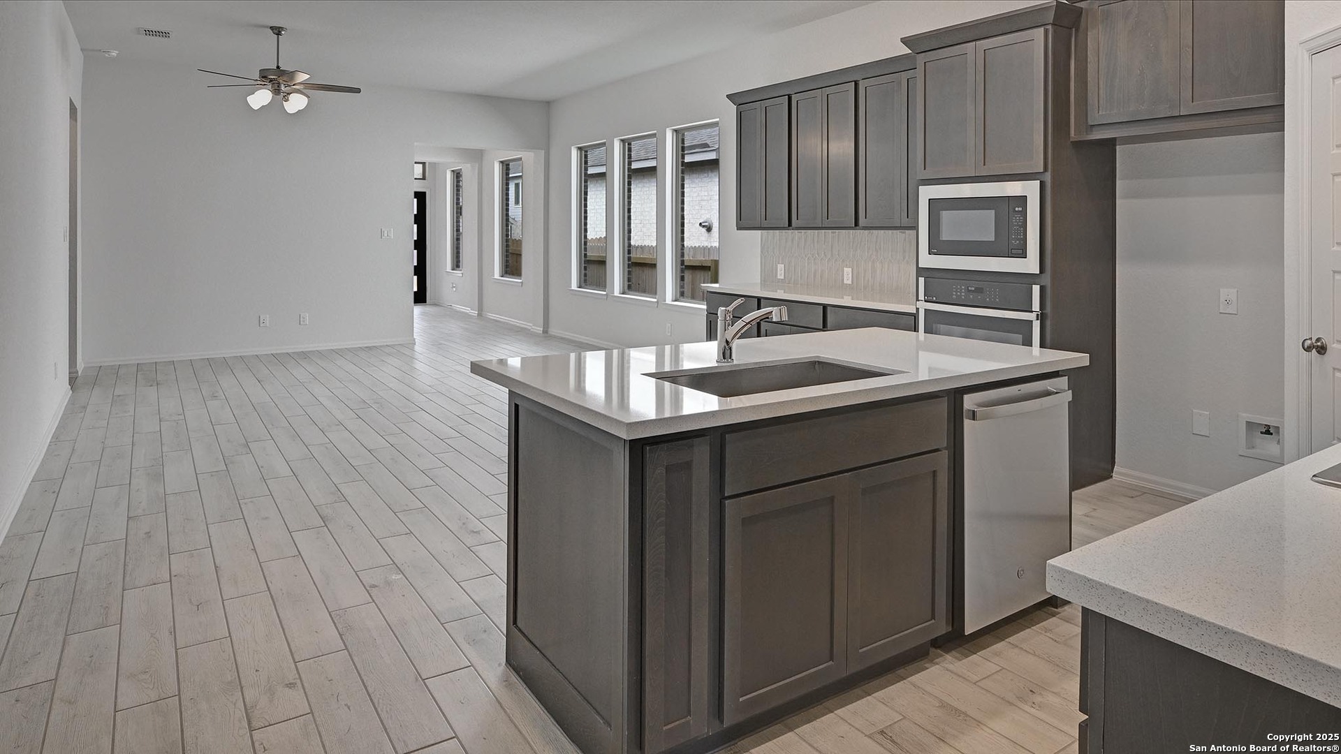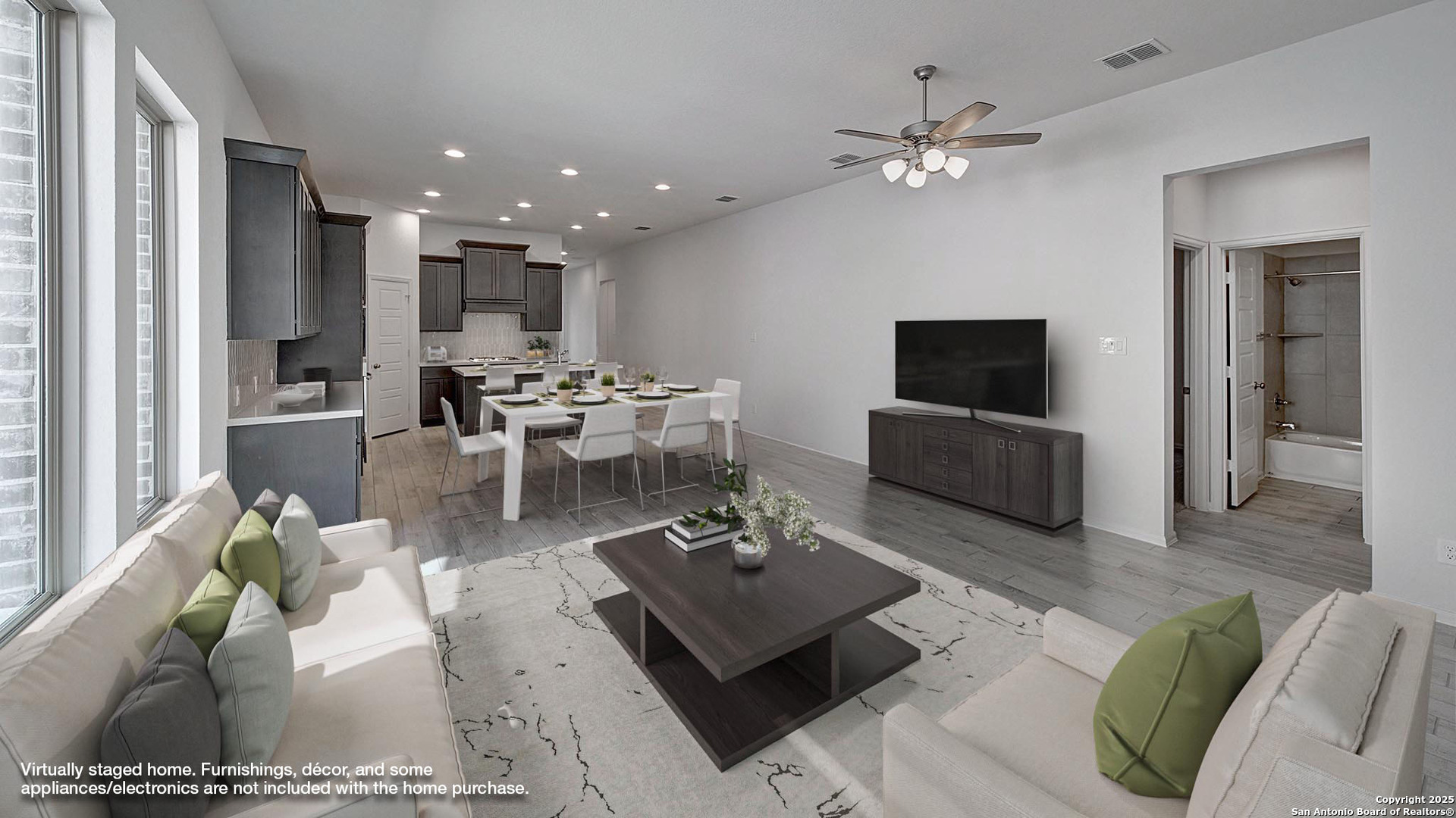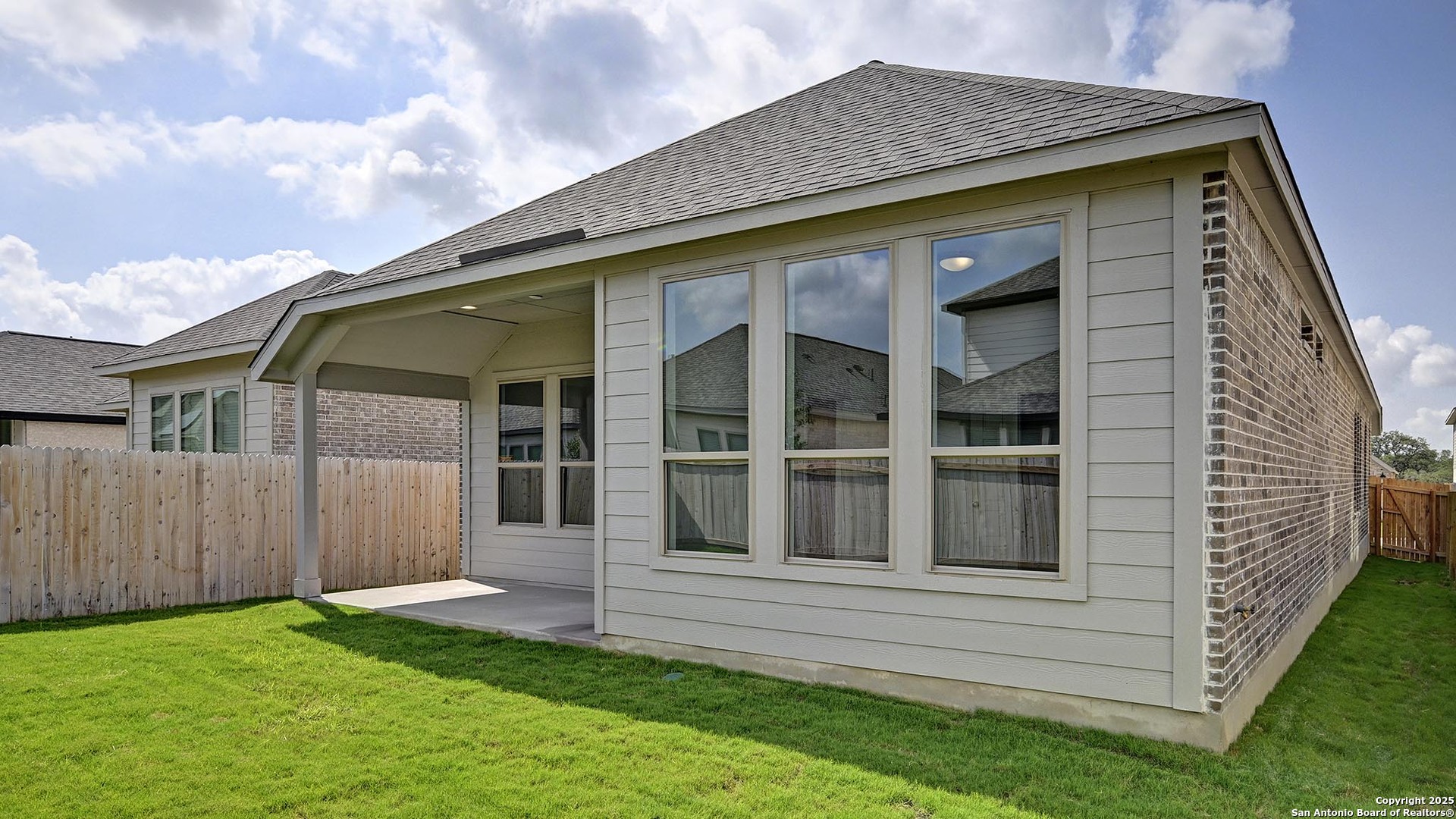 READY FOR MOVE IN!! Porch opens to entry with 10-foot ceiling, utility room and mud room. Open family room with three large windows extends to the kitchen and dining area. Island kitchen offers built-in seating space and corner walk-in pantry. Secluded primary suite features large bedroom, dual vanities, glass enclosed shower and a walk-in closet. Secondary bedrooms with walk-in closets, additional bathrooms and two linen closets complete this design. Covered backyard patio. Two-car garage.