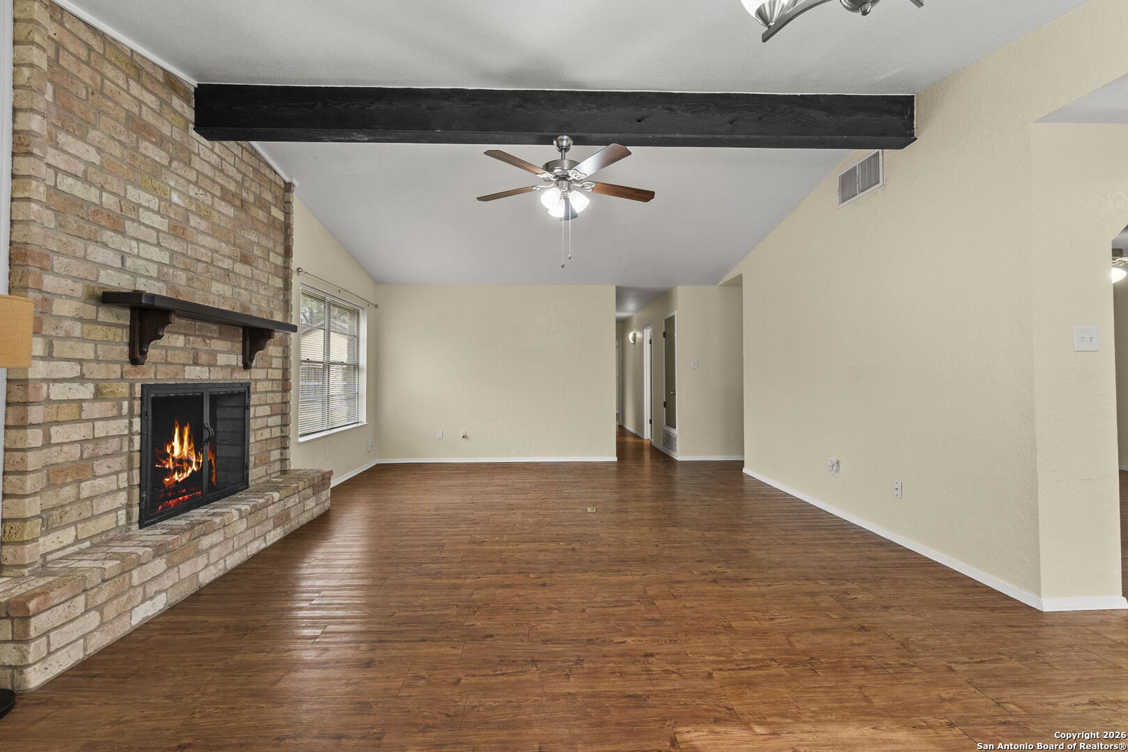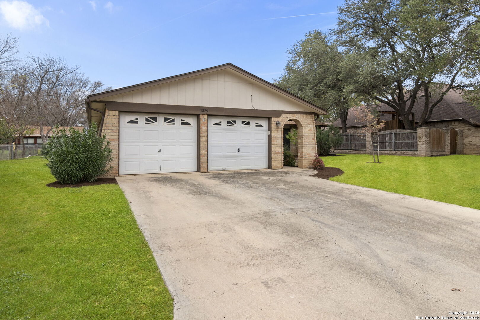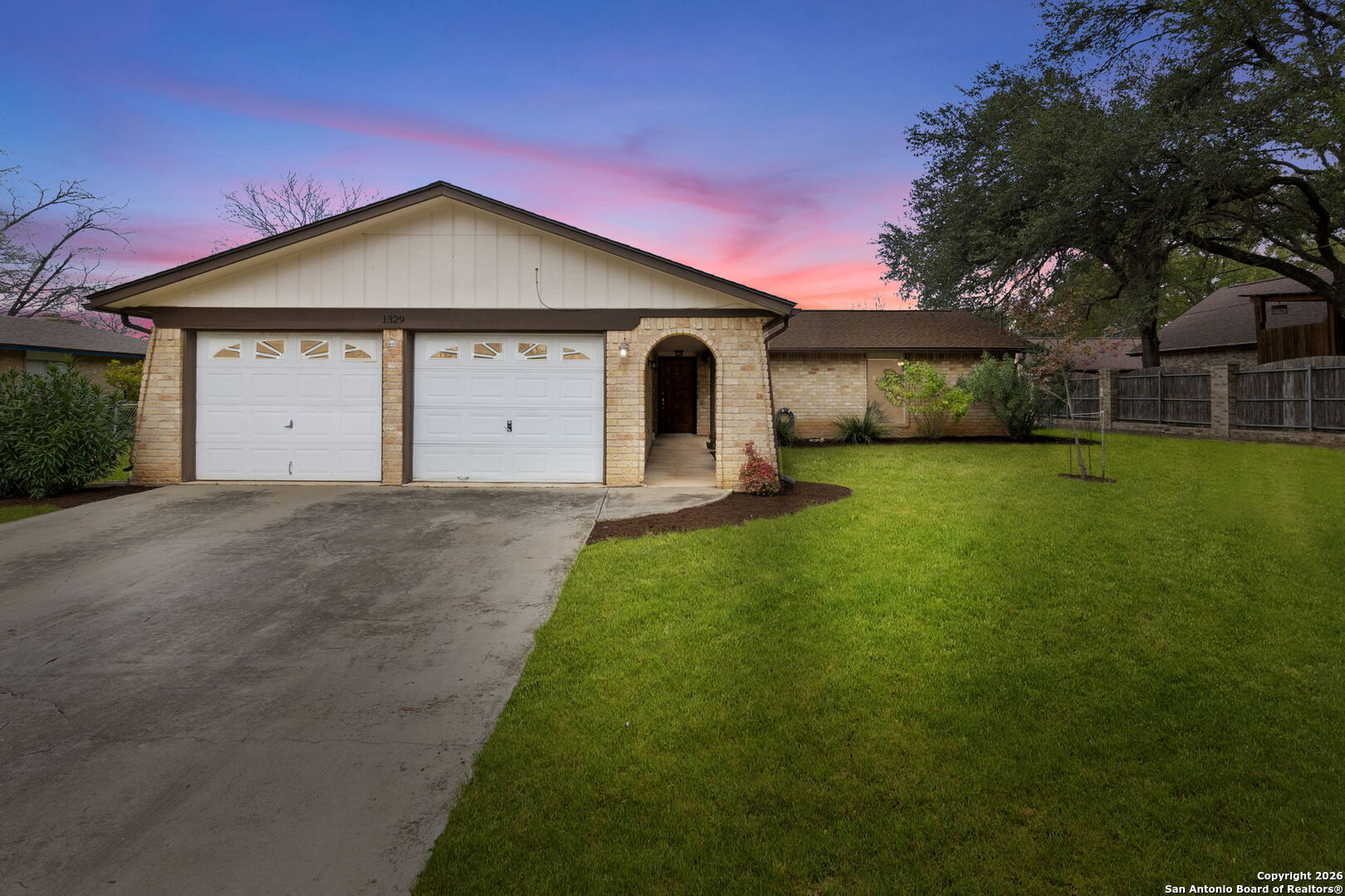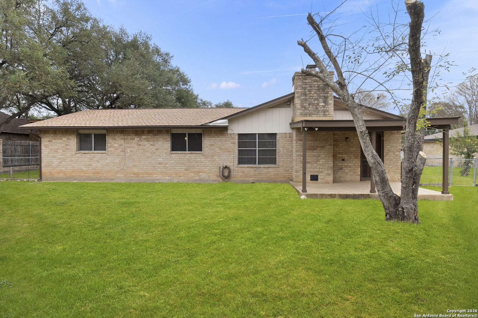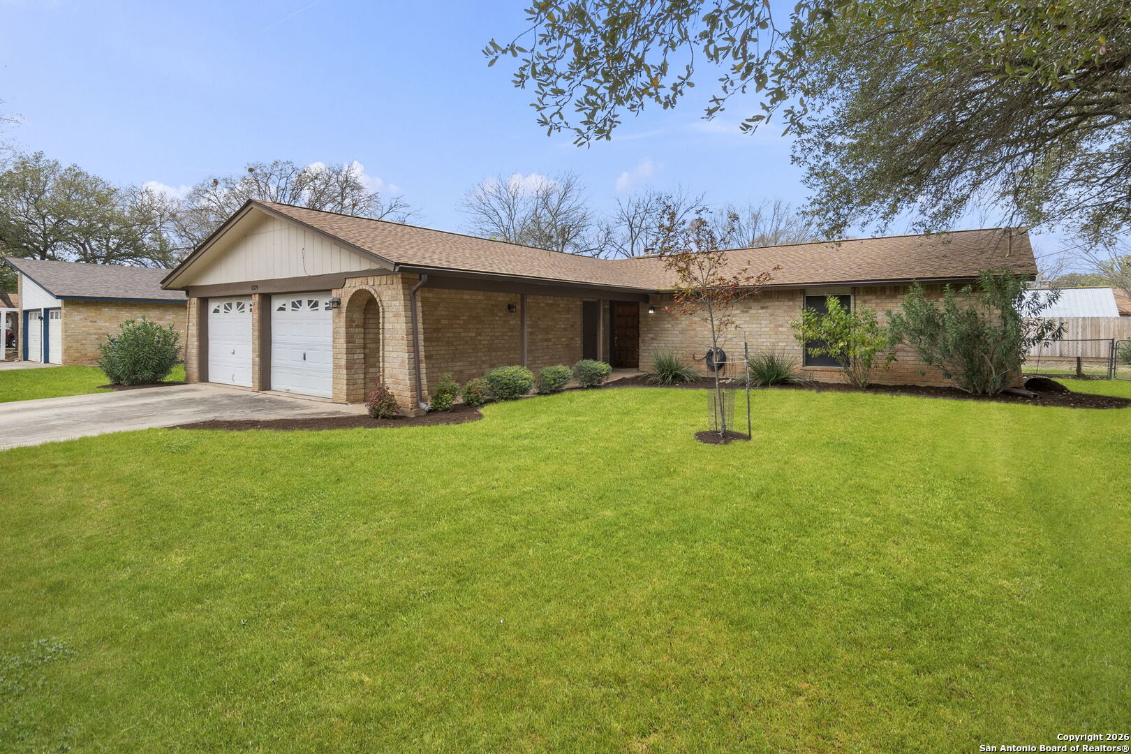 Charming 1970s Brick Bungalow on a Spacious Lot - Priced Below Tax Value! Well-kept, one-story with great bones and tons of potential in a highly desirable area. No HOA! This four-sides brick home sits on a generous quarter-acre lot. When you drive up, the home welcomes you with refreshed landscaping and an impressive covered walkway and porch that lead to the front door. Inside, you'll find wood-look laminate flooring in the living areas and bedrooms, with tile in the bathrooms-no carpet anywhere. The living room features a large wood beam across the ceiling and a stunning floor-to-ceiling brick, wood-burning fireplace that truly steals the show. A convenient floor plug adds function to the space. The galley kitchen offers granite countertops, stained wood cabinets, and a pantry closet. In the front of the home, there is an extra-large room that could be used as a formal dining room, but since there is already plenty of space for a table in the living room just off the kitchen, this area could be reimagined as an open office space or a second living room-perfect for today's flexible lifestyles. This home includes three roomy bedrooms and two bathrooms. The primary bedroom has an en-suite bathroom and a large walk-in closet, which is uncommon for homes of this era. Step outside to a lovely covered patio overlooking the expansive backyard-ideal for entertaining, relaxing, or play. Additional features include a newer composition roof, newer HVAC system, window blinds, and a two-car garage with shelving and space for a washer and dryer. The location is hard to beat-close to the charming historic district of Gruene, known for its unique shops, rustic restaurants, antique stores, and the iconic Gruene Hall, Texas' oldest dance hall. Don't miss this rare opportunity to own a well-maintained home in one of New Braunfels' most sought-after neighborhoods. Truly a gem waiting for its next chapter! Bring your vision and make it your own! Some photos virtually staged and digitally enhanced for illustration purposes only.