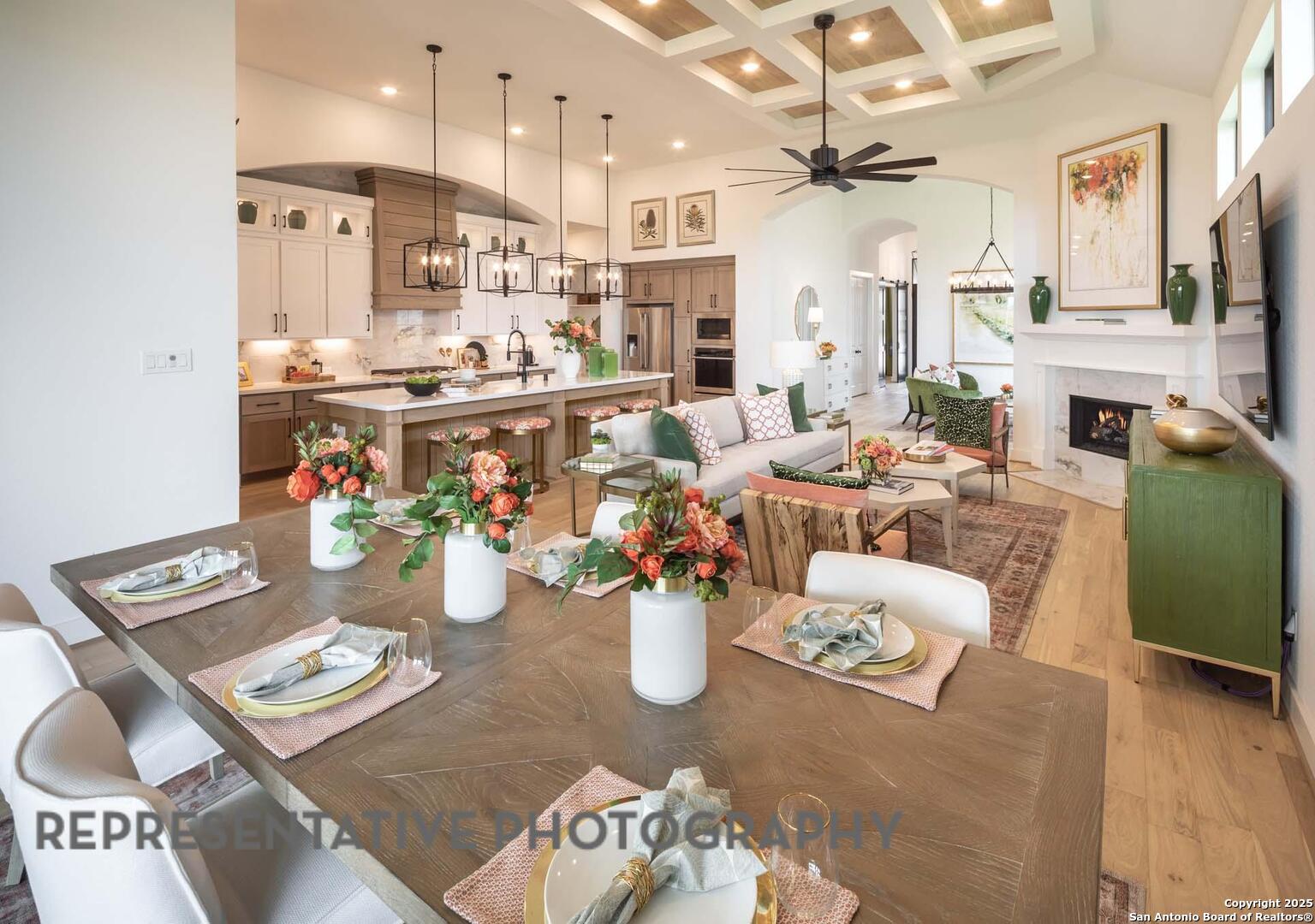 This ONE level home features wood floors, double front doors, fireplace, home office, entertainment room, tons of upgrades. Home under construction with estimated September completion.