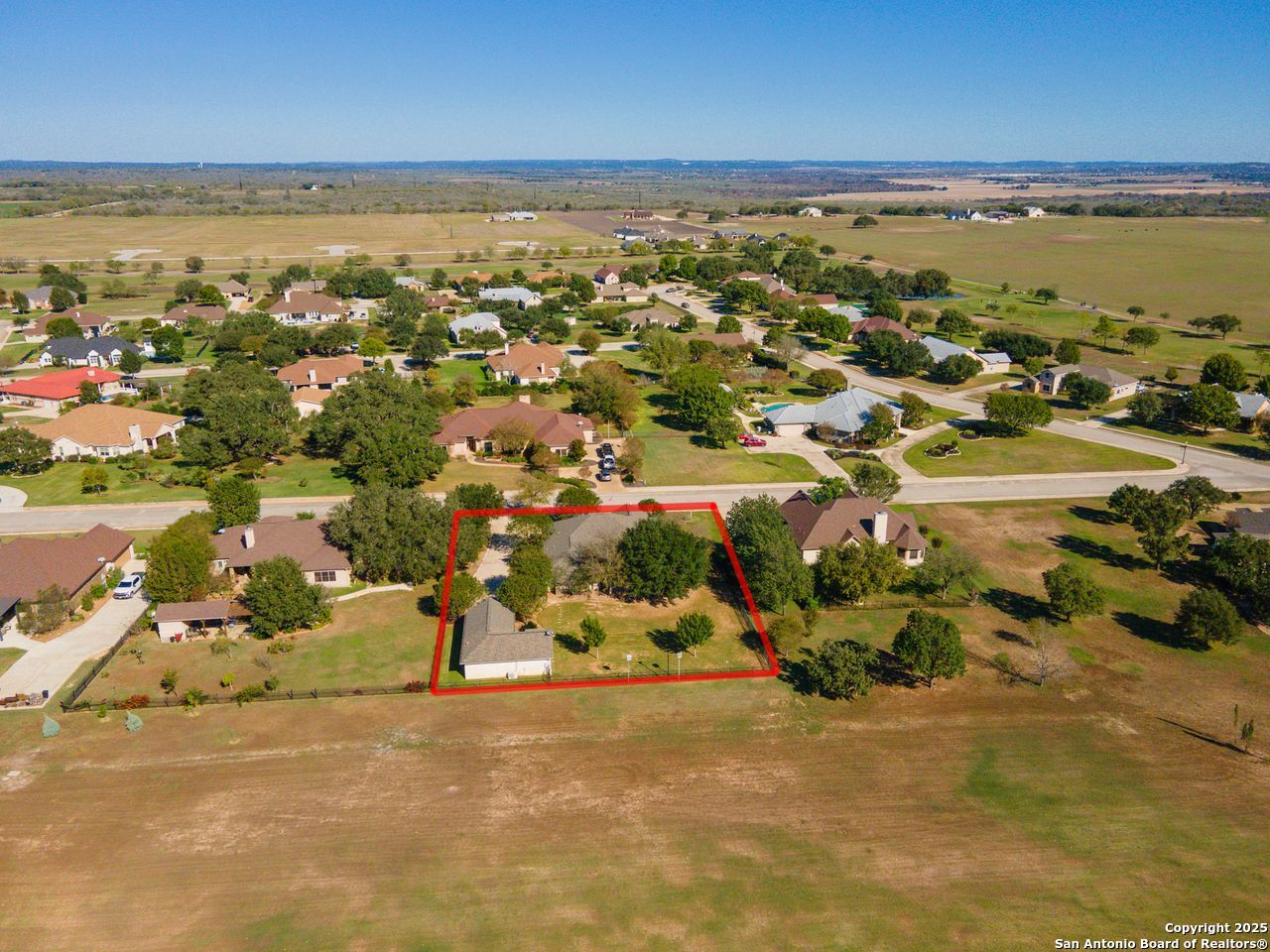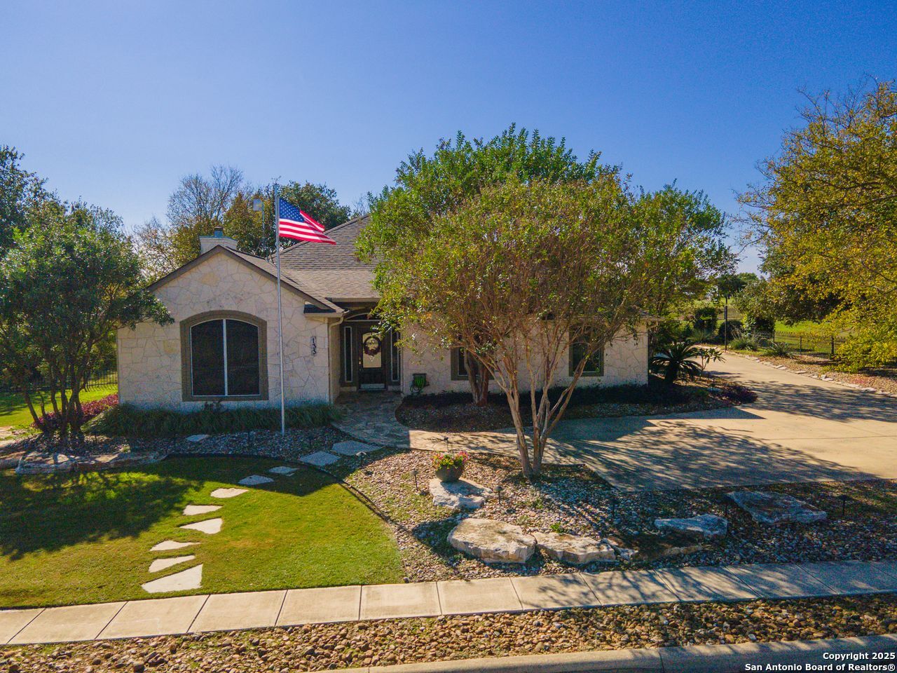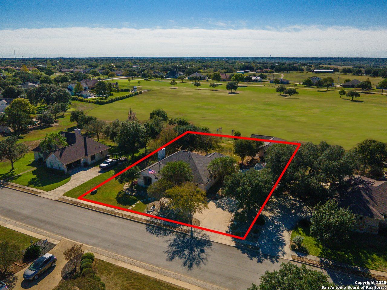 Enjoy living on the Alsatian Golf Course two miles west of Castroville! This rock veneer home features a spacious living room, granite countertops, large pantry, and a detached guest cottage. Professionally landscaped setting, spacious fenced back yard, and fronts a low traffic private road. Mature trees shade the large patio with golf course views. The guest quarters include a 20' X 15' efficiency apartment as well as a 20' X 14' shop/storage room. There is a 50' golf course/driving range easement outside of the wrought iron fenced yard. Flooring replacement is negotiable.