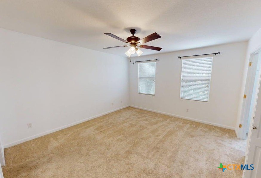 Welcome to this charming 2-story condo in Blanco River Village that has been recently updated! This 2-bed, 2.5-bath home offers an inviting open floorplan with a spacious living area flowing into a dining space filled with natural light. The kitchen features upgraded gas stove, refrigerator, farmhouse sink, plenty of cabinet storage, and a convenient laundry room nook including washer & dryer with half bath downstairs. Upstairs, the primary suite offers double closets for extra storage and newly renovated private bath, while the secondary bedroom has its own bathroom as well. Upgrades include: interior paint (Oct 2025), all flooring, Roof, Water Heater and A/C unit all replaced in 2024. Step outside to enjoy views of the neighborhood soccer field from the front covered porch or the side patio perfect for kids playing or weekend relaxation. Located minutes from the Blanco River, downtown San Marcos, and Texas State University, this home combines comfort and convenience in a sought-after community.