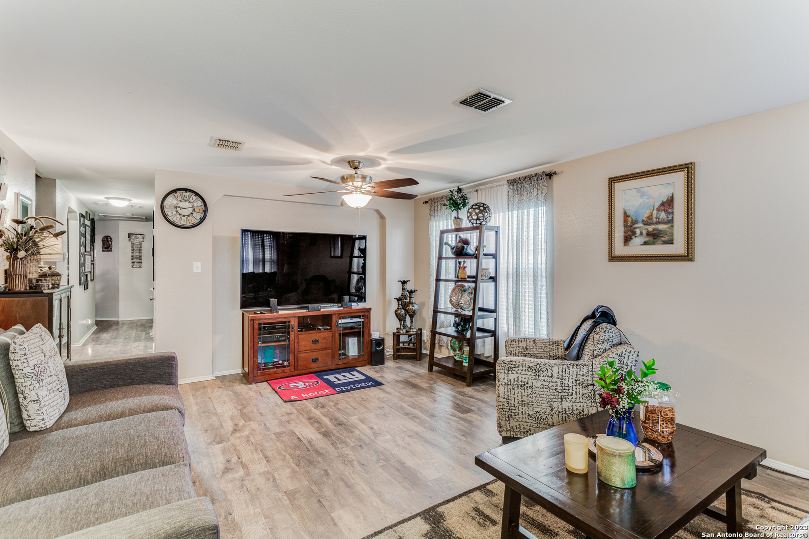 Beautiful 4 bedroom, 2.5 bath home in an established neighborhood, located in a cul de sac. Dining room and open design kitchen, ray ceiling in master bedroom. Partially enclosed loft with surround sound for use as a media room or could be an office or extra guest room. Ceiling fans throughout. Spacious backyard with a covered patio, playscape, and privacy fence.