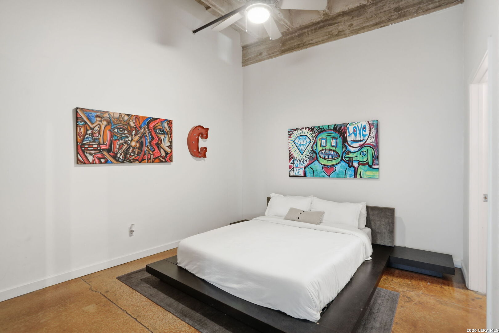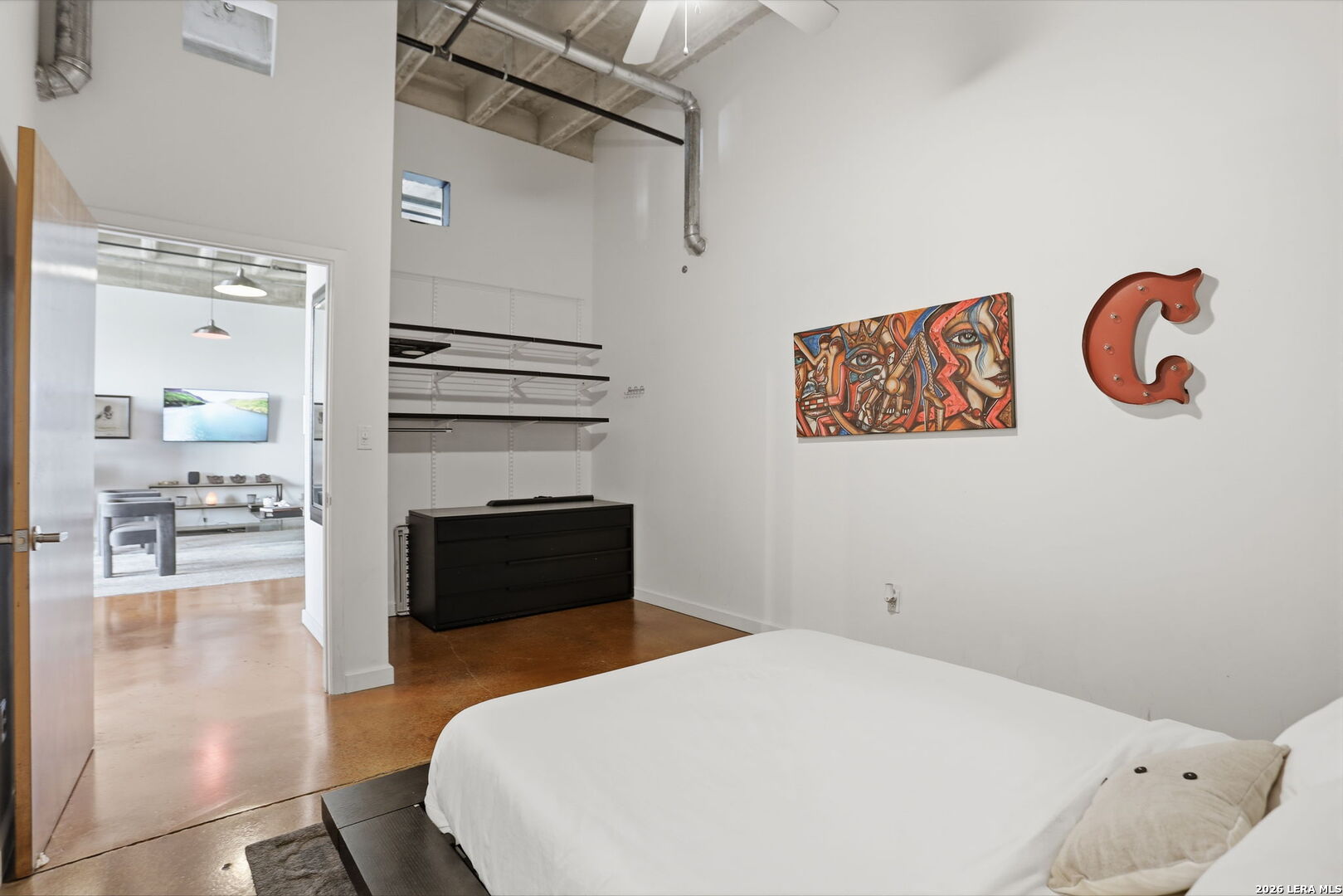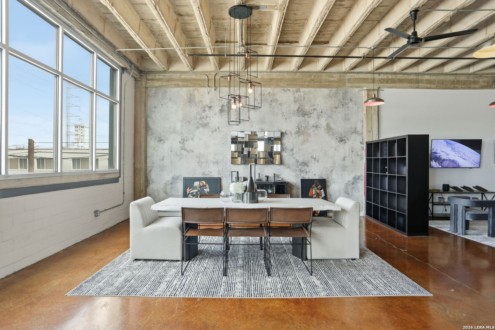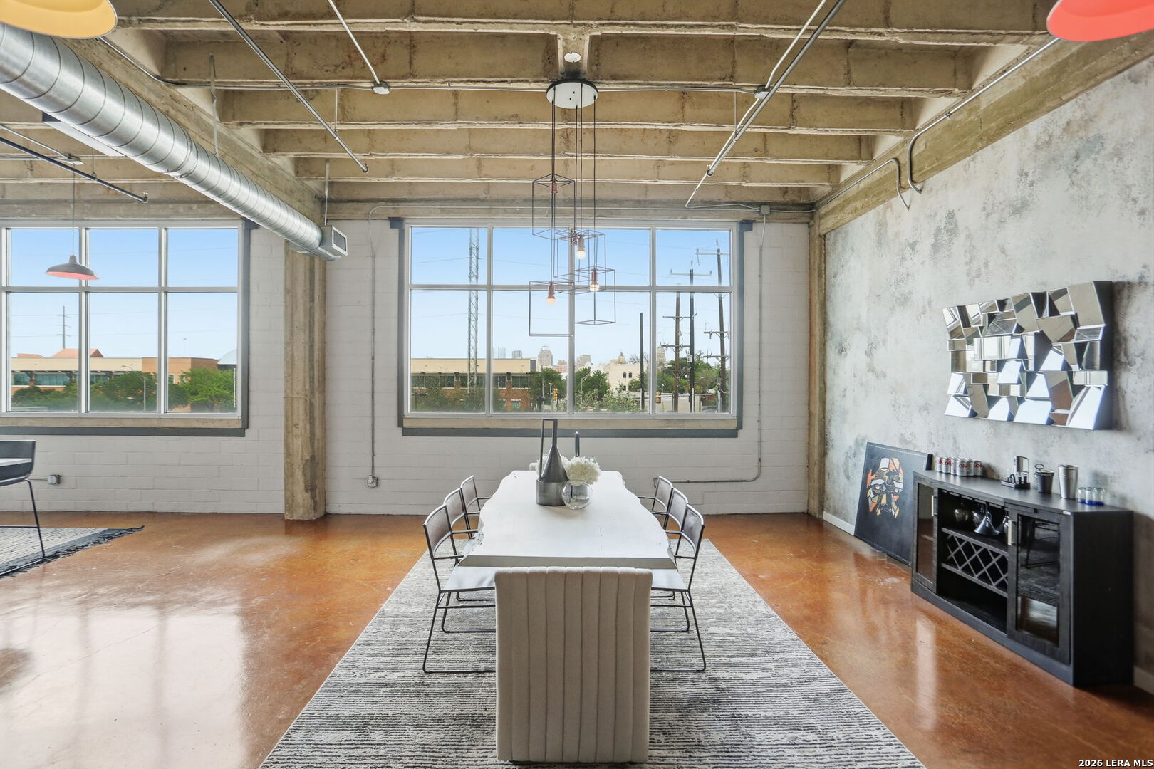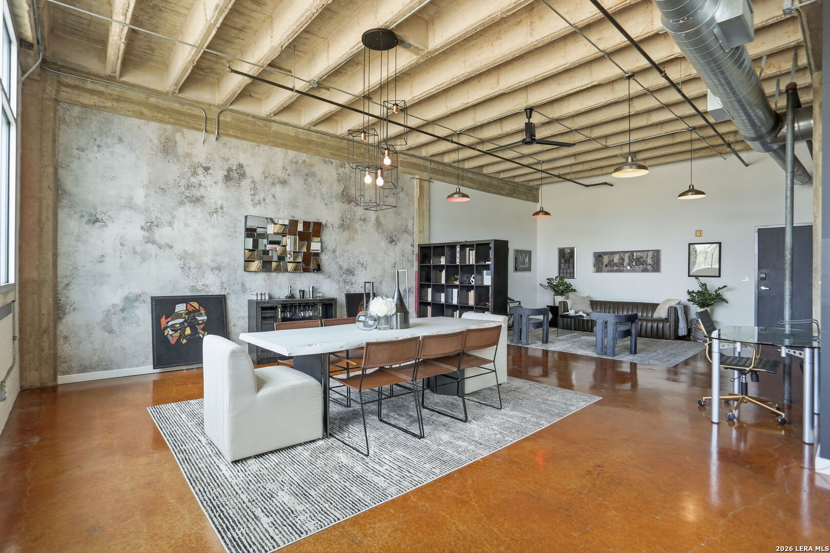 Beautiful condo in South End Lofts featuring an open floor plan, expansive living area, stained concrete floors, and abundant natural light from oversized windows with impressive city views. The kitchen offers custom cabinetry, stainless steel appliances, and an island for added functionality. The private primary bedroom includes a serene en-suite bath. Enjoy excellent amenities and a spacious rooftop patio. Located just three blocks from the Blue Star Arts Complex and Southtown's top restaurants, with easy access to I-10, I-35, and more.