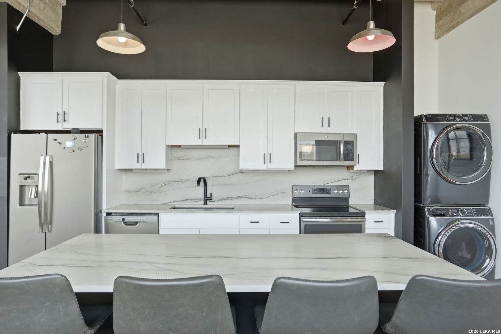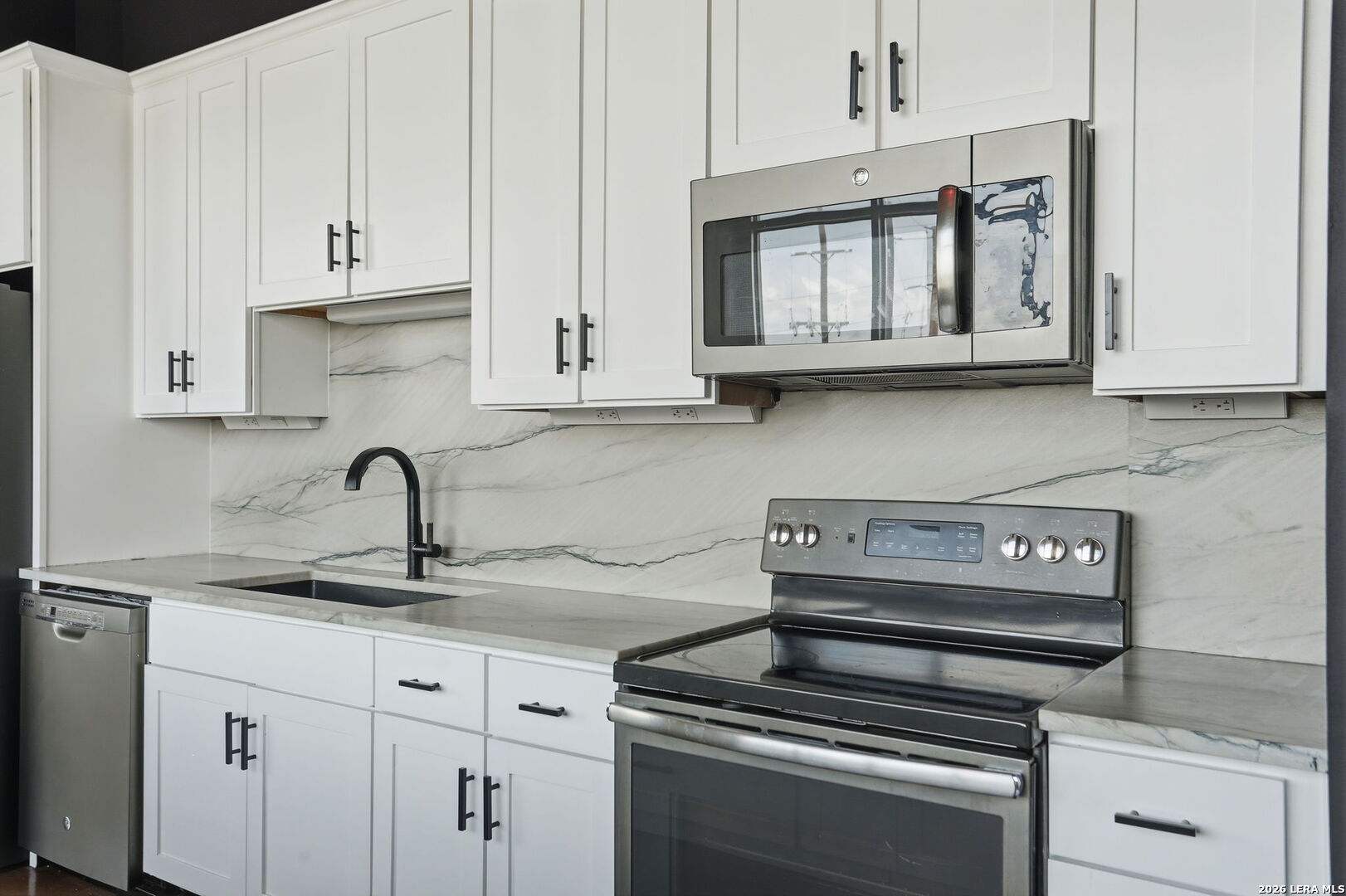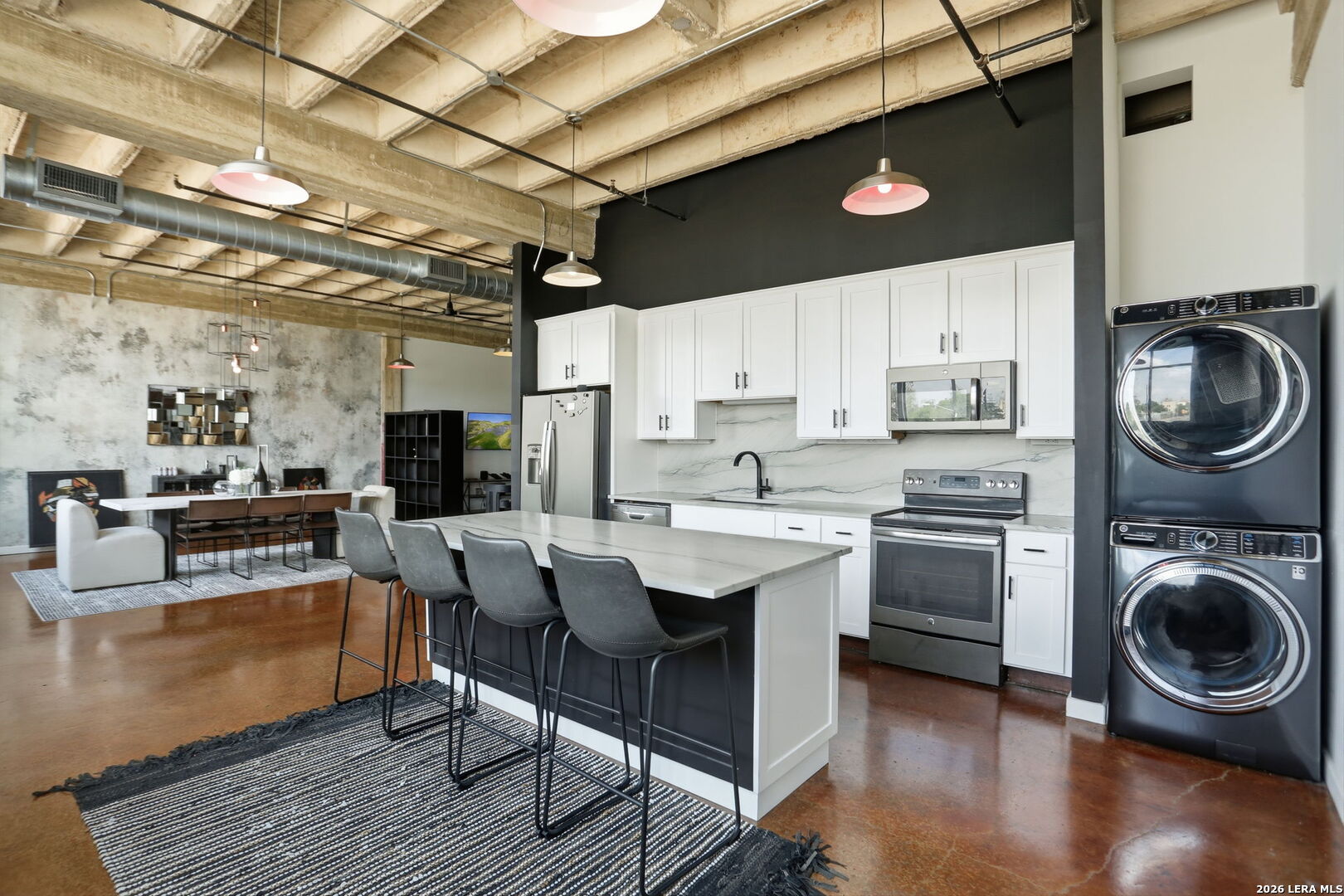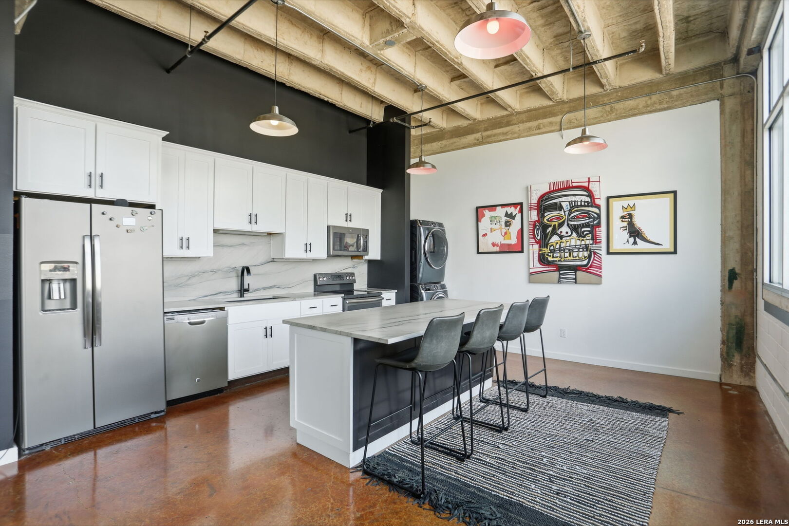 Beautiful condo in South End Lofts featuring an open floor plan, expansive living area, stained concrete floors, and abundant natural light from oversized windows with impressive city views. The kitchen offers custom cabinetry, stainless steel appliances, and an island for added functionality. The private primary bedroom includes a serene en-suite bath. Enjoy excellent amenities and a spacious rooftop patio. Located just three blocks from the Blue Star Arts Complex and Southtown's top restaurants, with easy access to I-10, I-35, and more.