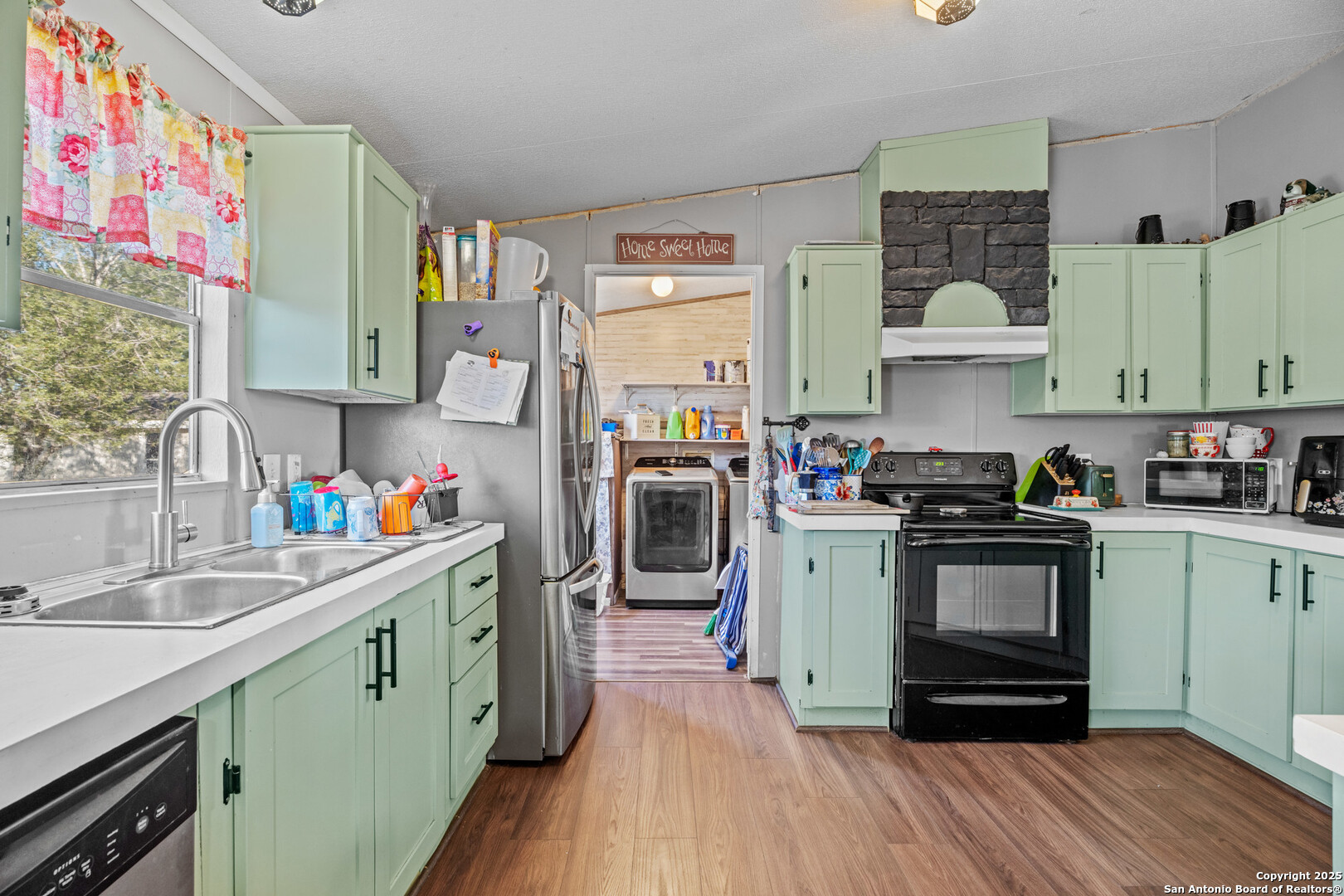 Discover this charming and spacious 3-bedroom home featuring tall ceilings and a beautifully updated kitchen with a cozy dining area. Each room offers generous space and stunning wood flooring throughout. Perfectly priced for anyone seeking a home on a large acre of land - and with no HOA! Conveniently located near the heart of Floresville, you'll enjoy quick and easy access to local favorites, including H-E-B and nearby shops.
