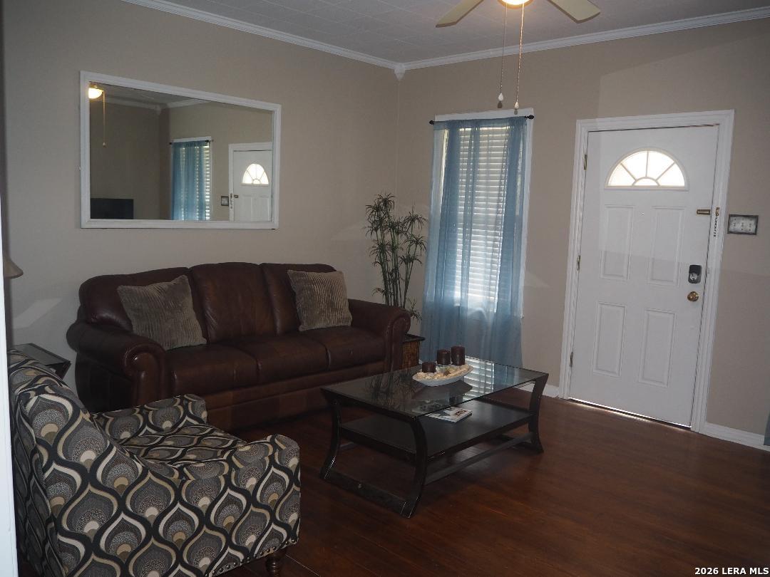 Charming 3-bedroom, 1-bath home located in the heart of San Antonio! This cozy property offers a warm and inviting layout with beautiful wood flooring, a spacious living area, and a dedicated dining space perfect for entertaining or everyday living. The kitchen features modern appliances, ample cabinet storage, and a functional layout that makes meal prep easy. Enjoy relaxing on the covered front porch or unwinding in the private yard. The home's classic character is complemented by thoughtful updates, giving it both charm and convenience. Ideally situated with quick access to the airport, downtown San Antonio, and the Medical Center, this home is perfect for anyone looking for comfort and convenience in a central location. Don't miss this opportunity-schedule your showing today!