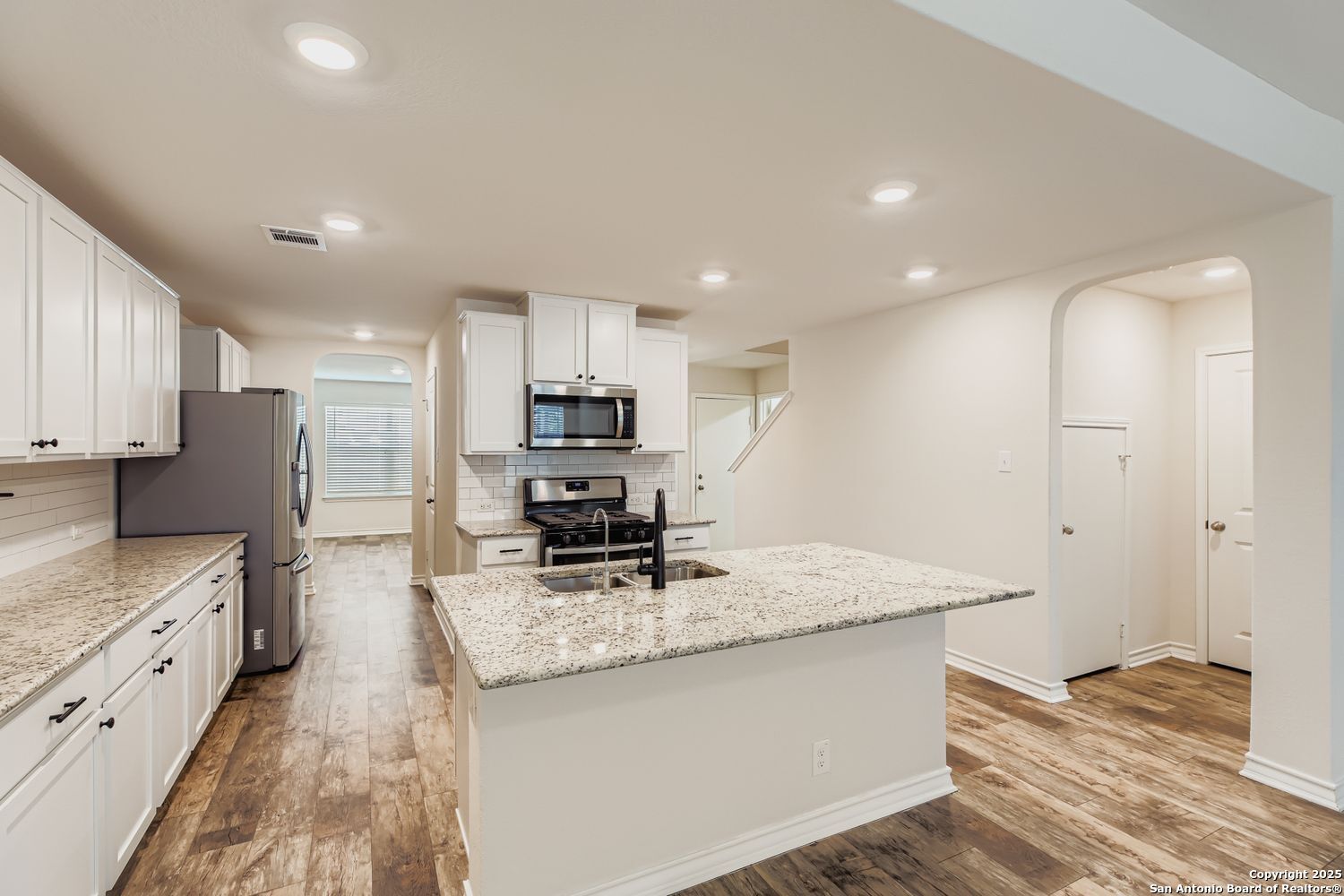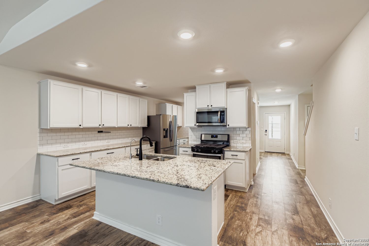 Click the Virtual Tour link to view the 3D walkthrough. Discounted rate options and no lender fee future refinancing may be available for qualified buyers of this home Beautiful 5-Bedroom Home with Solar Power & Smart Features Welcome to this spacious 2,532 SF, 2-story home designed for comfort and functionality. Featuring 5 bedrooms, 2.5 bathrooms, and a 2-car garage, it's perfect for larger families. Enjoy an open-concept layout with a formal dining room, a large kitchen with island and butler's pantry, and a family room ideal for gatherings. The downstairs primary suite includes a separate tub and shower, double vanities, and a walk-in closet. Upstairs offers a versatile loft and four generous bedrooms. Upgrades include luxury vinyl plank flooring, 9-foot ceilings, full-yard landscaping with irrigation, and modern finishes throughout. A standout feature is the amazing solar panel system, delivering energy savings and efficiency. Additional perks include a water softener, reverse osmosis system, and smart home automation for lights, locks, and thermostat. Located near Loop 1604, Hwy 90, and within the top-rated Medina Valley ISD, this home has it all-space, style, and sustainability.