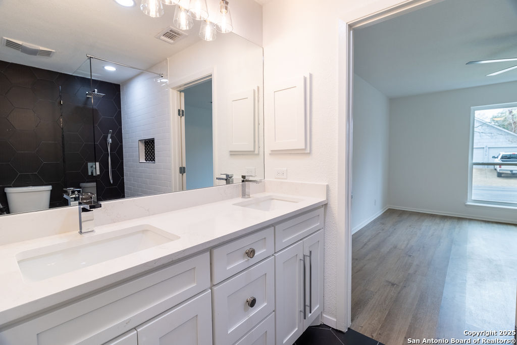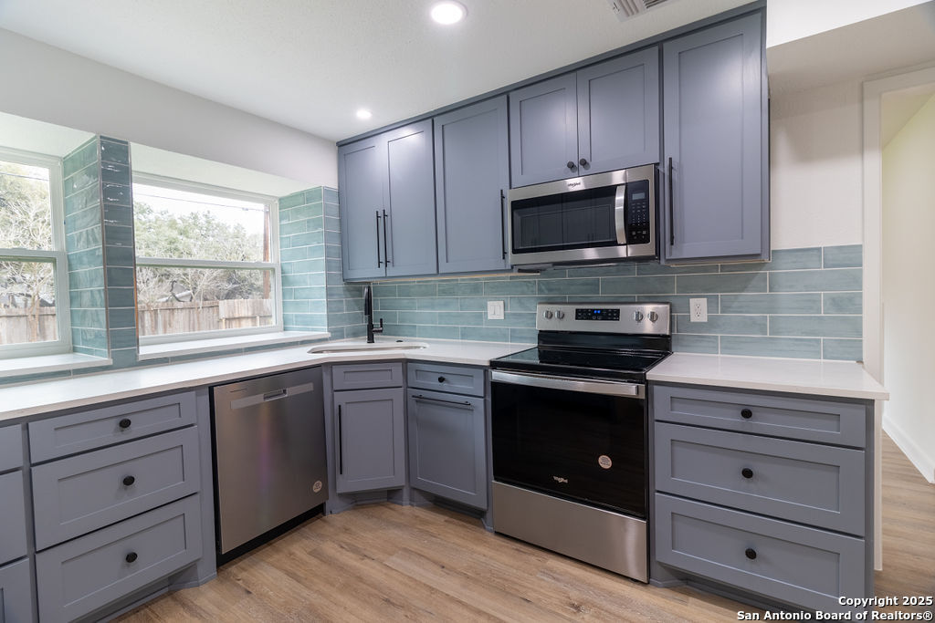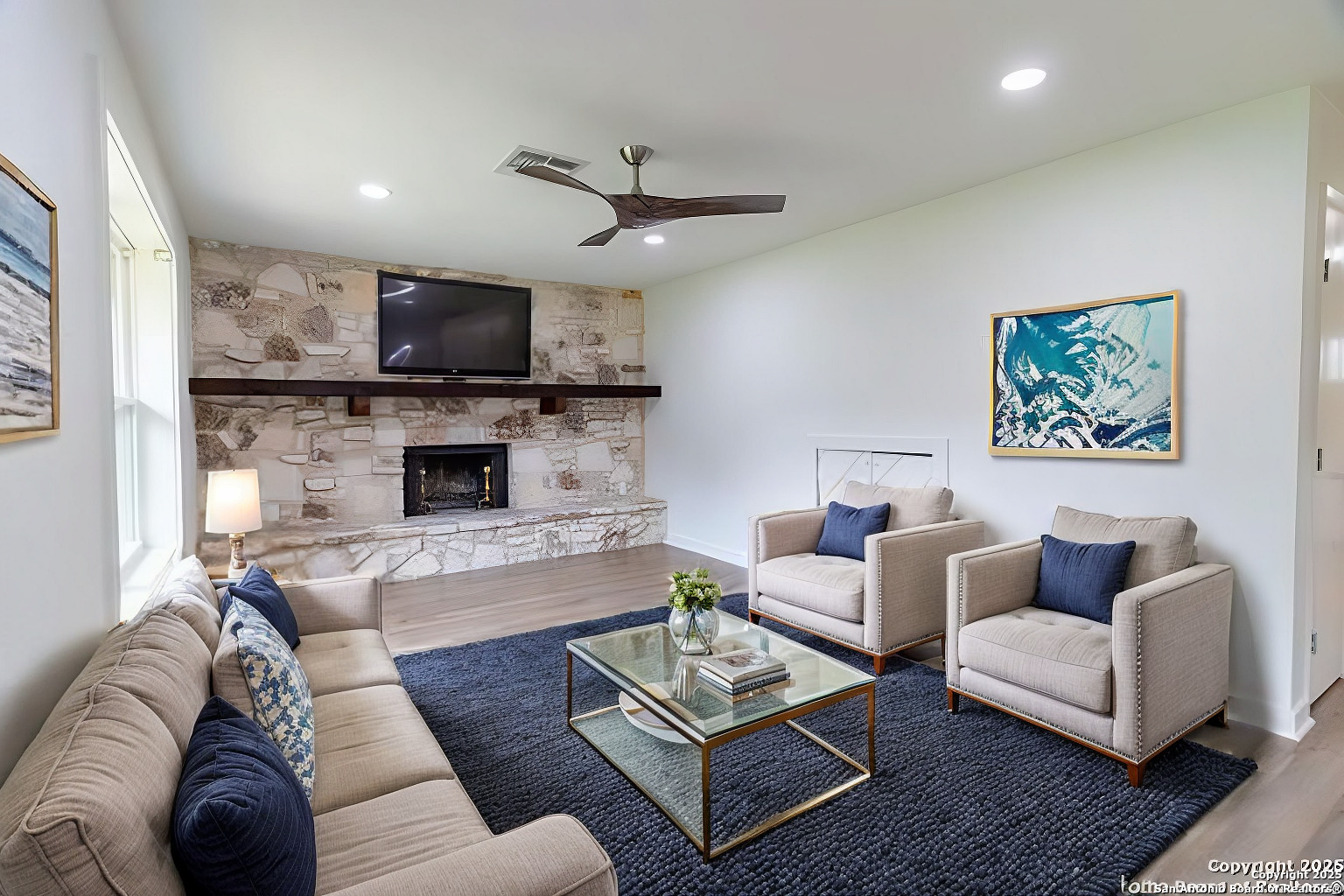 Welcome to your dream home in Churchill Forest! This stunning upgraded property boasts gorgeous LVP flooring, custom cabinets, quartz countertops, and energy-efficient windows. Enjoy cozy nights by the natural rock, floor-to-ceiling wood-burning fireplace in the family room. With its perfect blend of comfort, style, and community, this beautiful single-family home is ideal for families. Just minutes from Walker Ranch Historic Park, Phil Hardberger Park, and the Salado Creek Greenway, you'll enjoy endless opportunities for outdoor fun, including dog parks, playgrounds, and walking trails. Don't miss this incredible opportunity to own a piece of paradise in a family-friendly community. Schedule a viewing today!