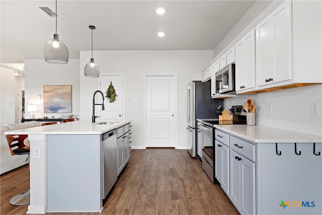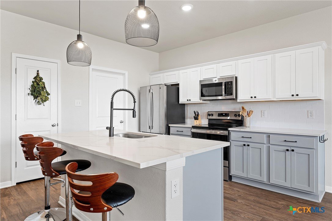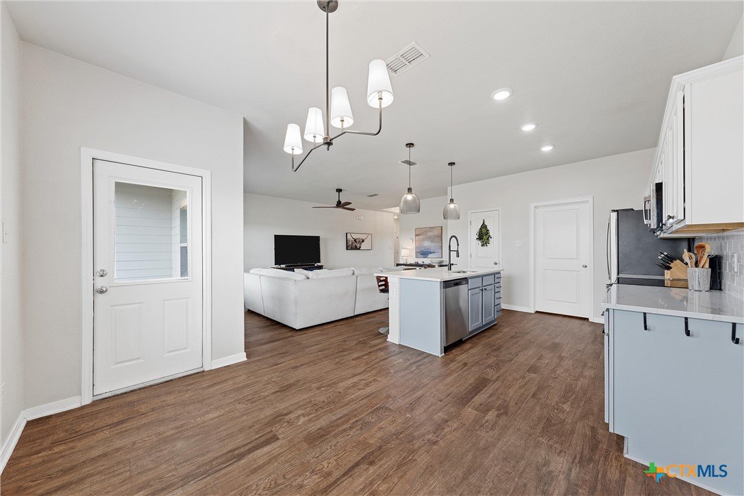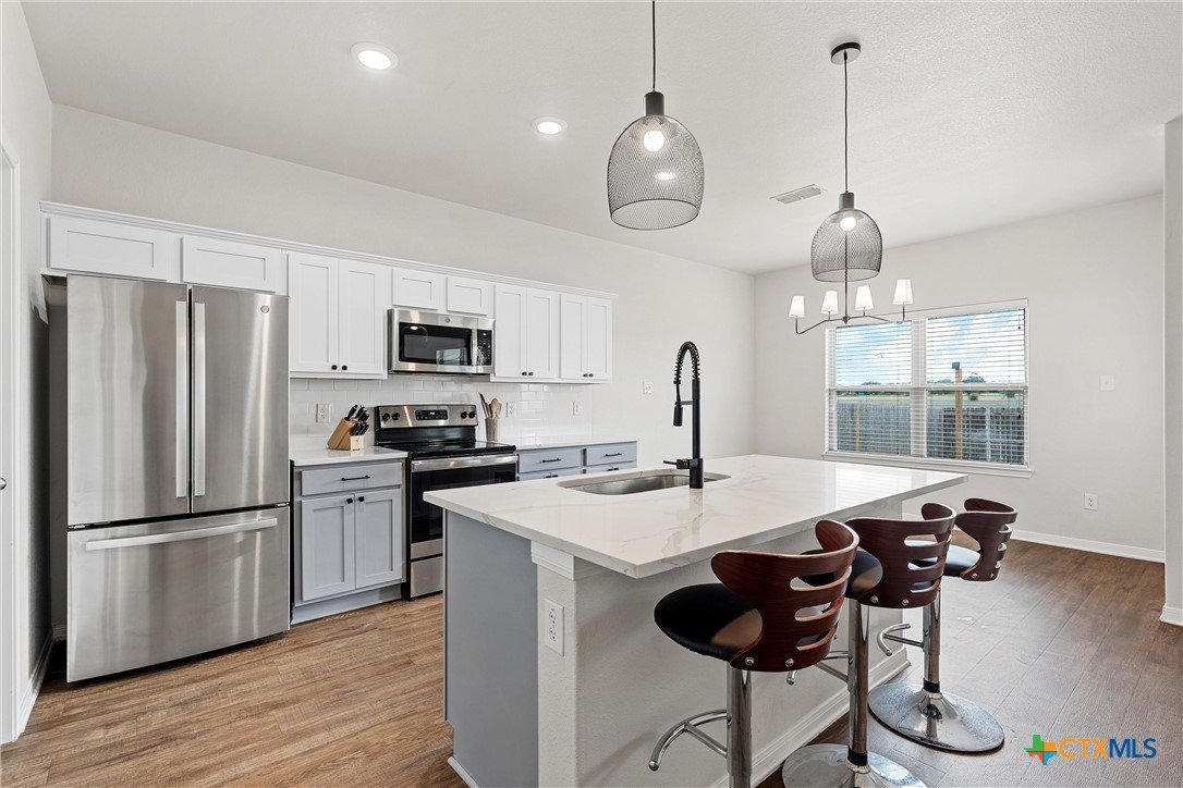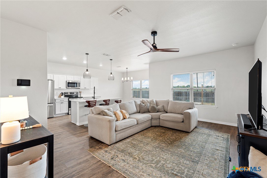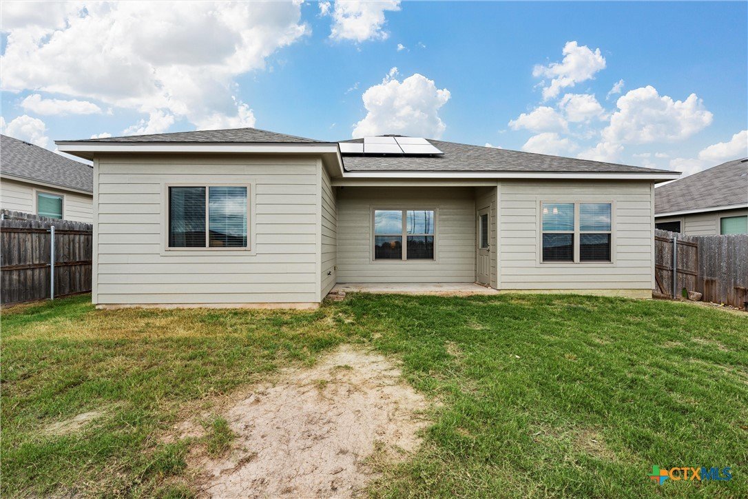!!!Location, Location, Location!!! Welcome to 1332 Lakeway Crossing Drive, where convenience meets comfort! Nestled just minutes from Belton schools, shops, and eateries, this 3-bedroom, 2-bathroom home offers the perfect blend of functionality and style. Step inside and experience an open living floor plan designed for modern living. The kitchen features sleek quartz countertops and a versatile center island that doubles as an eat-in space, seamlessly connecting to the dining and living areas. The split-bedroom layout provides added privacy, with the primary bedroom tucked away at the rear of the home, while the two additional bedrooms and second bathroom are situated at the front. The backyard has stone patio seating area and a smokeless fire pit—perfect for gathering with friends and family on cool evenings. This home is energy-efficient, equipped with solar panels that will be fully paid off at closing. Additionally, a security system is in place, which can either stay or be removed, also paid off. As a bonus, the refrigerator, washer, and dryer can convey with the home! Make 1332 Lakeway Crossing your new home and enjoy the perfect location with modern comforts!