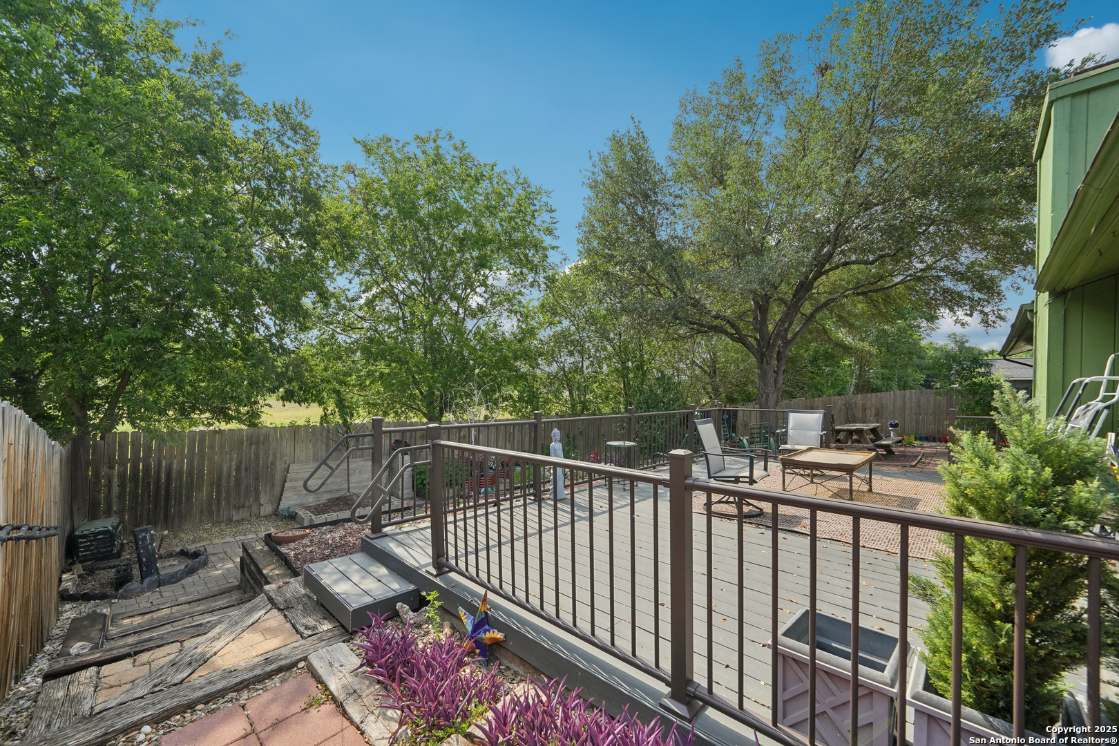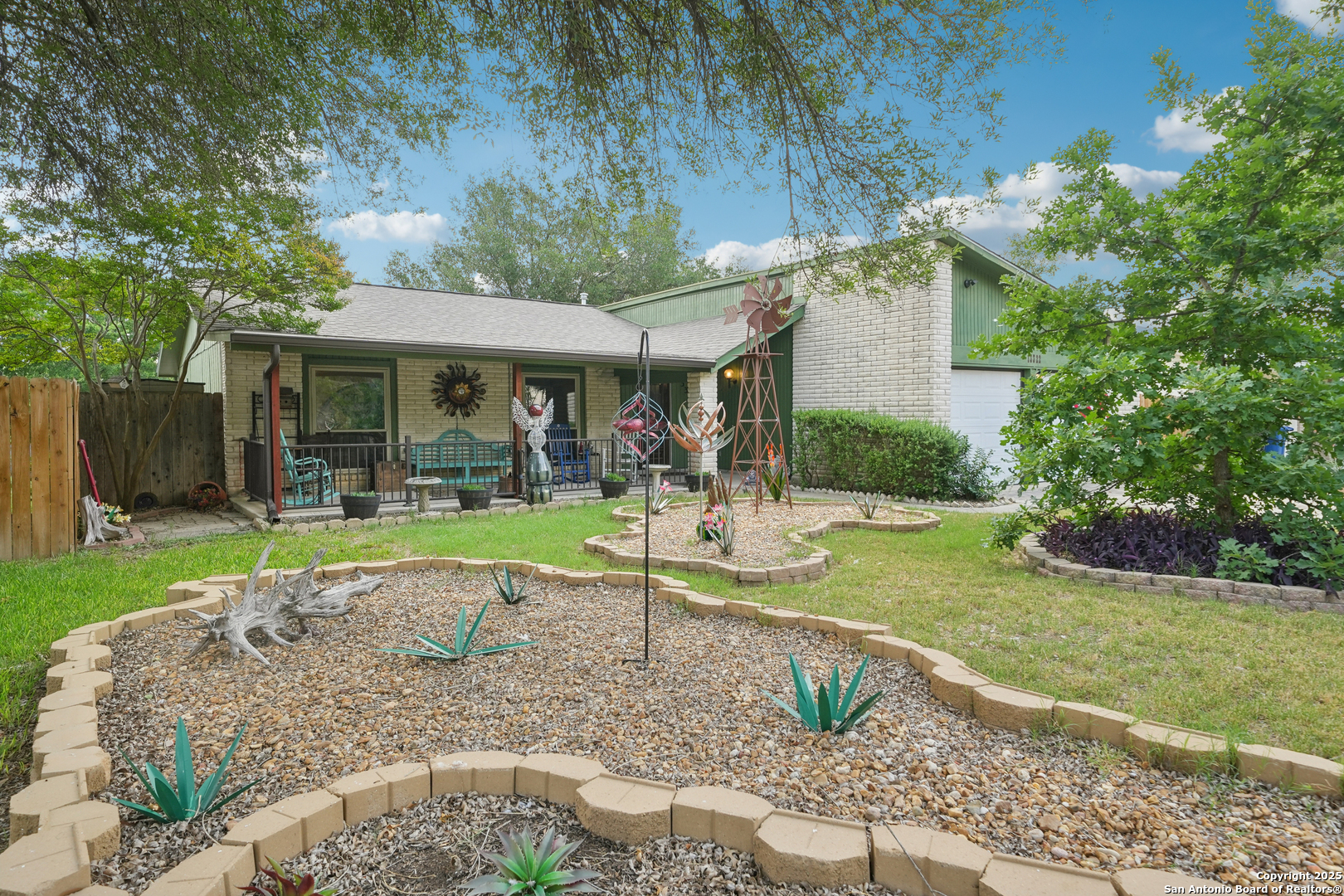 This charming one-story home in the tranquil community of Valencia offers a rare combination of comfort, updates, and greenbelt privacy. The well-designed layout features a spacious open floor plan with a living/dining combo and a second living area off the kitchen, centered around a cozy fireplace. The kitchen includes a breakfast bar, breakfast nook, and gas cooking-ideal for everyday living and casual entertaining. Step outside to a peaceful backyard with mature trees and a beautifully updated wood composite deck (2023), perfect for relaxing or hosting friends. Recent updates include energy-efficient double-pane windows (2013), full roof replacement (2017), an upgraded breaker box, and a concrete paver driveway. The expanded front porch with LED lighting adds curb appeal, while the Leaf Filter gutter system helps simplify maintenance. Additional features include a custom front door, outdoor plumbing, a garage with built-in workbench and shelving, and a transferable A/C-heater maintenance contract. The landscaping is low-maintenance and eco-friendly, and the entire interior has been freshly painted. Included with the home are a gas stove, refrigerator with icemaker, washer and dryer, and a quiet dishwasher. The location offers convenient access to major roads and the airport, while still feeling tucked away thanks to the park-like greenbelt behind and no home directly across the street. Valencia is a well-established neighborhood with mature trees and scenic walking paths. There is no mandatory HOA, but a voluntary $75/year fee grants access to tennis/pickleball courts and discounted use of the clubhouse. Whether you're looking for a great place to entertain or a quiet retreat, this home offers the best of both worlds. Book your personal tour today!