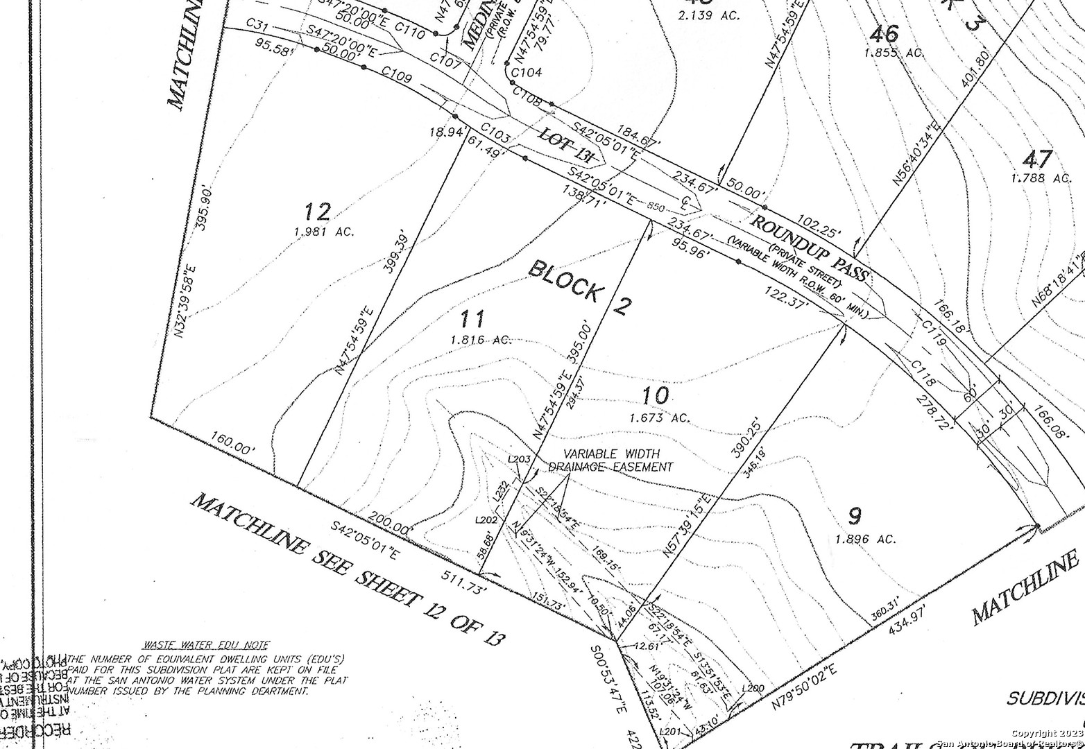 This beautiful estate lot with many mountain laurel trees offers great hill country views. Secured, gated subdivision, great neighbors, quality deed restrictions, generous setback lines, active HOA. Large lot with 200 front feet on Roundup Pass and over 390 front feet. This lot is #69on our lot sale map (see in the photos). Convenient to great shopping, new H-E-B less than 2 miles away. Great location less than 25 minutes from the SA Int. airport and the Riverwalk, 8 miles from Castroville. True Country Living with great convenience to medical center, shopping, entertainment and all the conveniences anyone could want. Security, Seclusion, and wonderful Serenity. Briggs Ranch is a great place to call home!!!