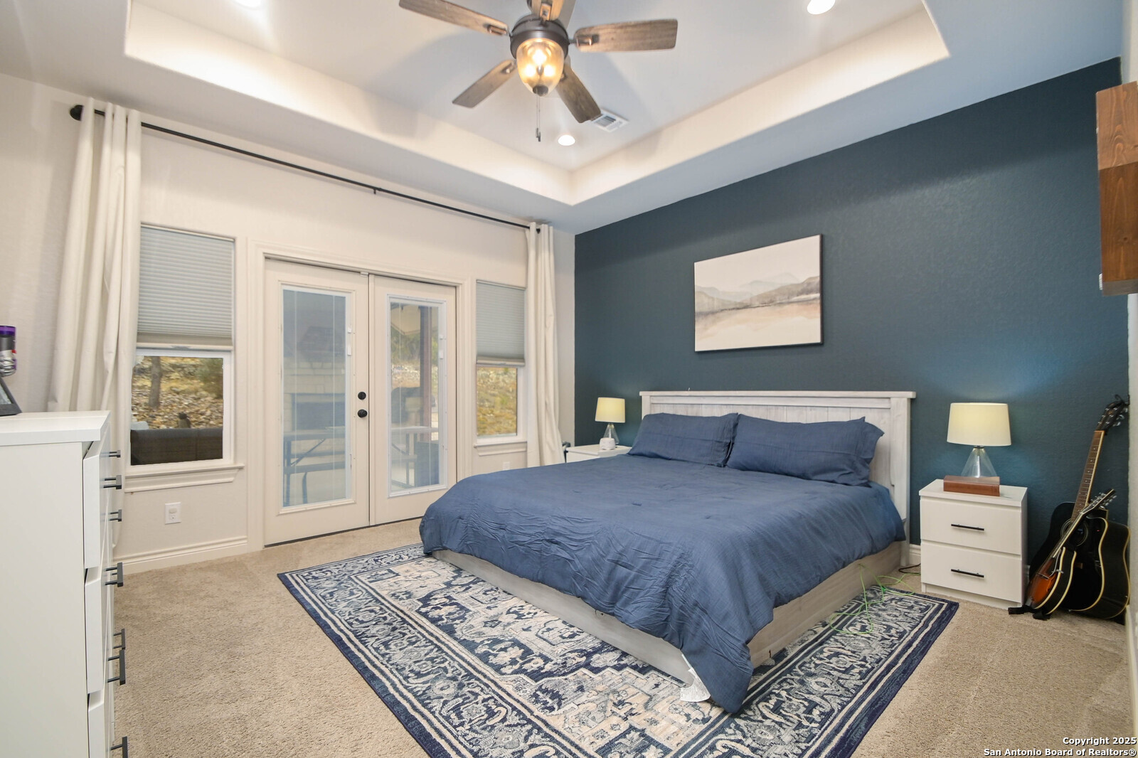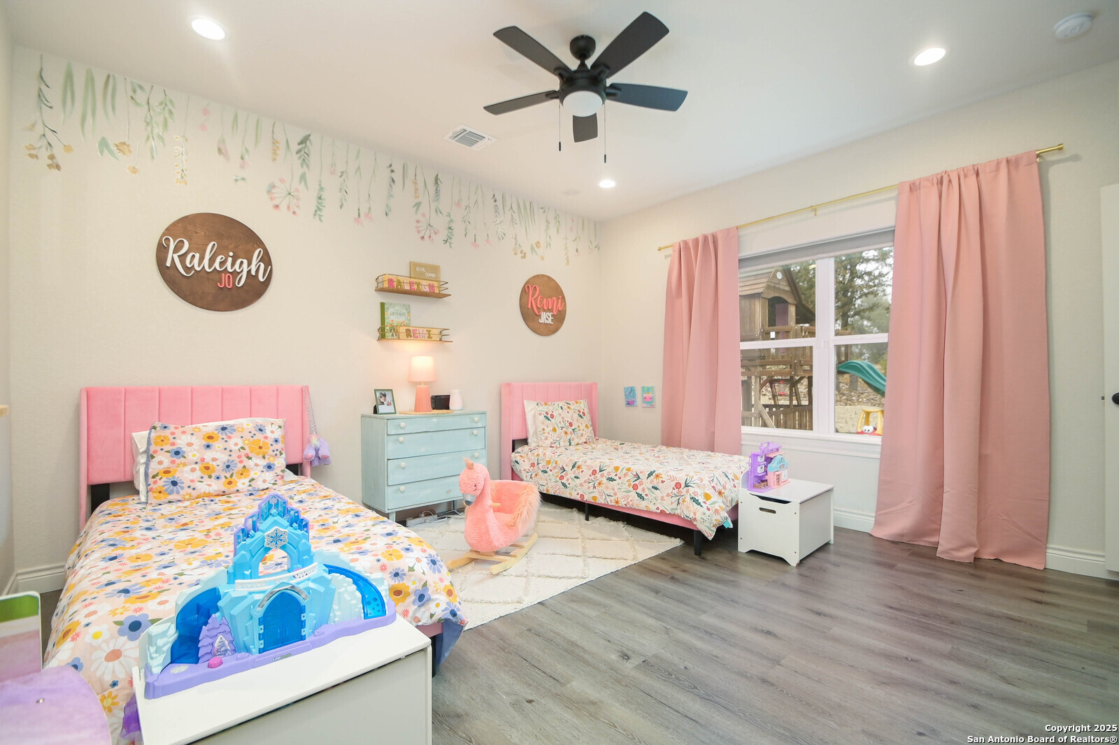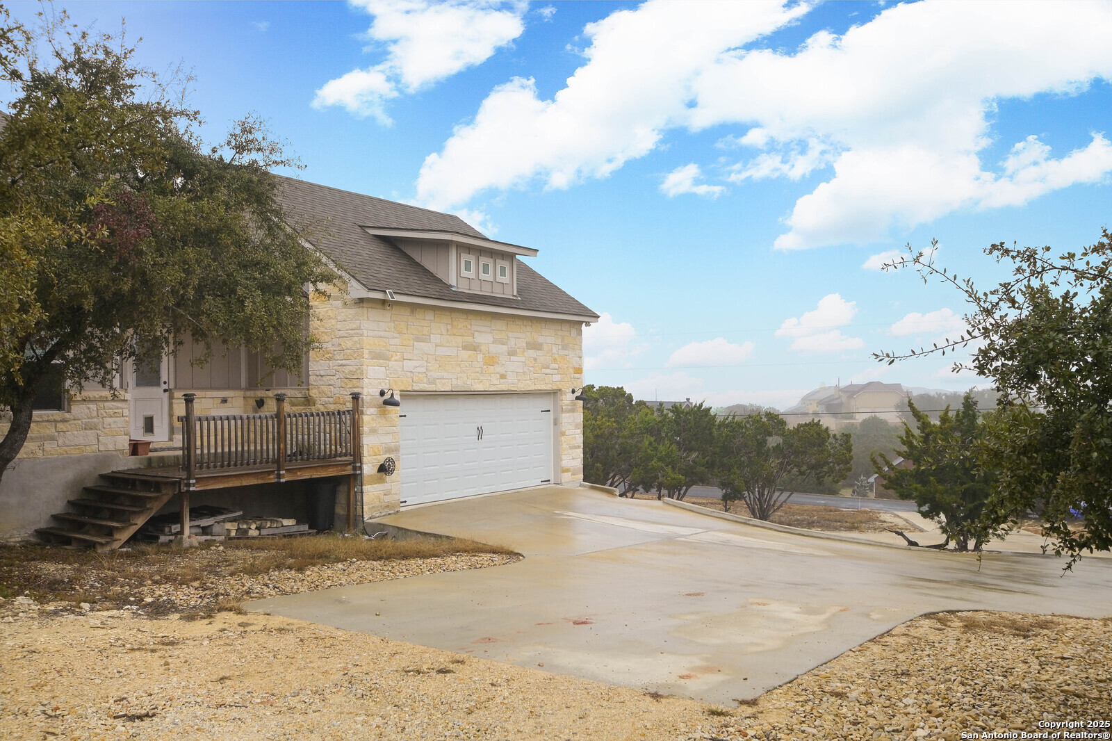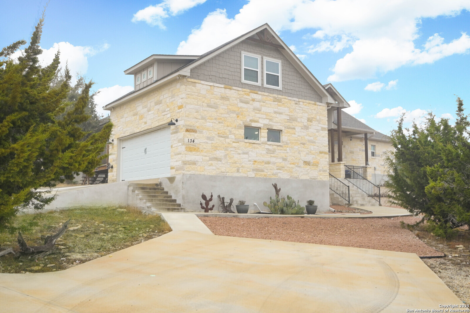 Nestled on 2.07 acres in the gated Stallion Estates, this custom 1.5-story Hill Country home offers a perfect blend of elegance, efficiency, and comfort. Featuring 4 bedrooms, 3.5 baths, and 2,684 sq. ft., the open floor plan includes a spacious living room, a gourmet kitchen with quartz countertops, and a dedicated dining area. The primary suite boasts a spa-like walk-in shower and dual vanities, while the media/playroom upstairs adds extra versatility. A VFD-driven HVAC system provides exceptional energy efficiency, making it easier to power the home with a smaller generator if desired. Outside, enjoy a professionally installed golf putting green, low-maintenance artificial grass, and a covered patio with an outdoor fireplace. Located in a stable, horse-friendly neighborhood, this home offers a unique opportunity for those seeking a Hill Country lifestyle. Additional highlights include an oversized two-car garage, private septic system, and paved roads. Zoned to Comal ISD schools and just minutes from Hwy 281, shopping, dining, and Canyon Lake-this is Texas living at its finest!