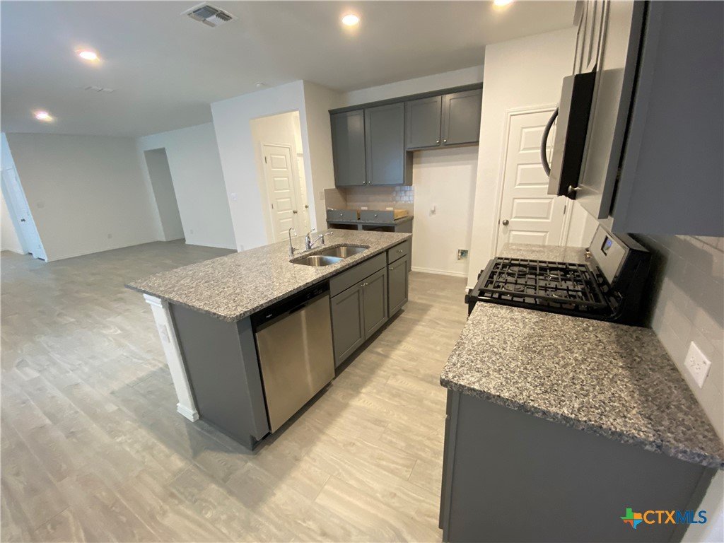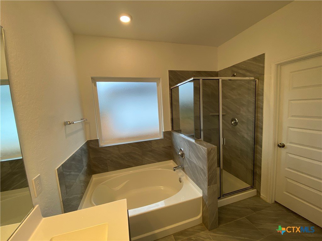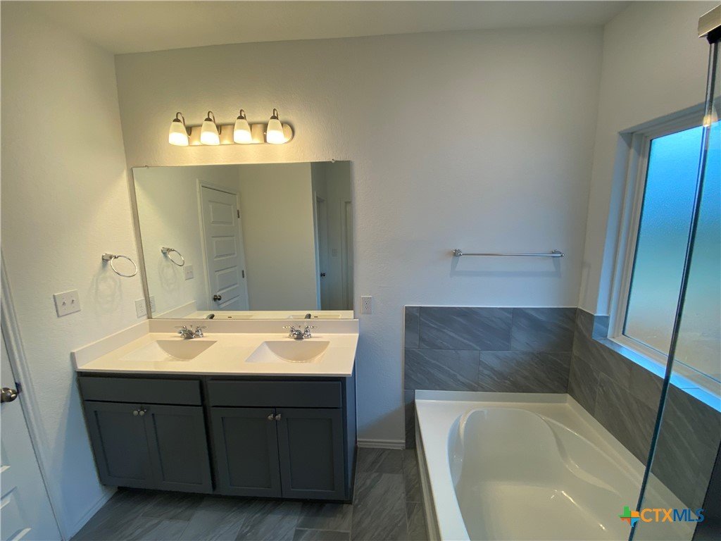 Hidden Springs off HWY 46. 4/2/2 (1 story). Mix of wood like tile & carpet. Kitchen Features Include: dishwasher, gas stove /oven range, built in microwave, pantry, island with breakfast bar, recessed lighting, and granite countertops. Other Features: shower/tub combo, walk in closet, walk in shower, garden tub, double vanities, interior washer / dryer connections, garage door opener, sprinkler system, covered back patio and a fenced in yard. CISD. Pet Friendly (2 max 50 lbs)