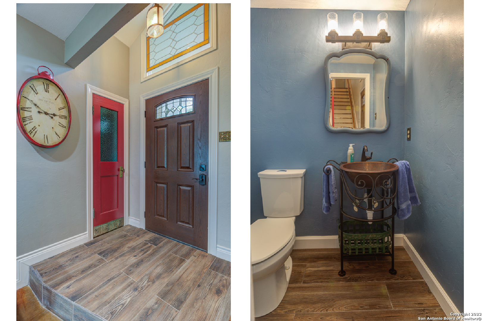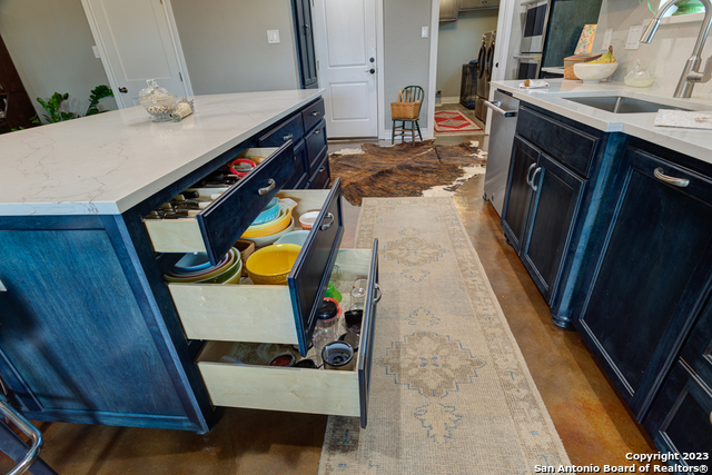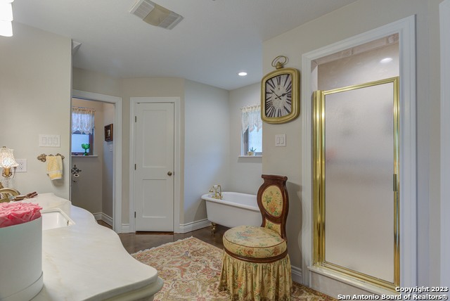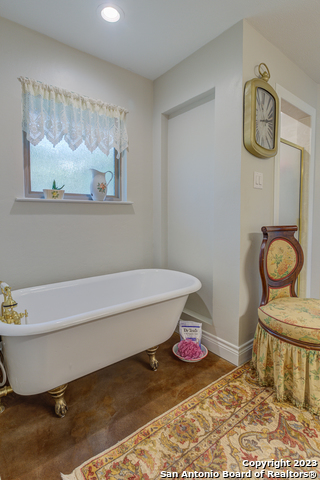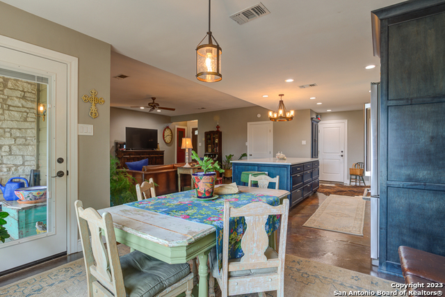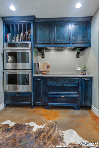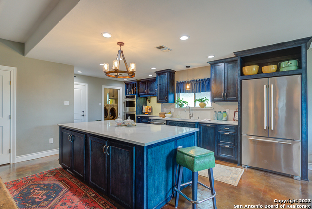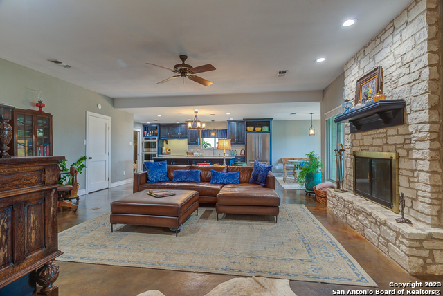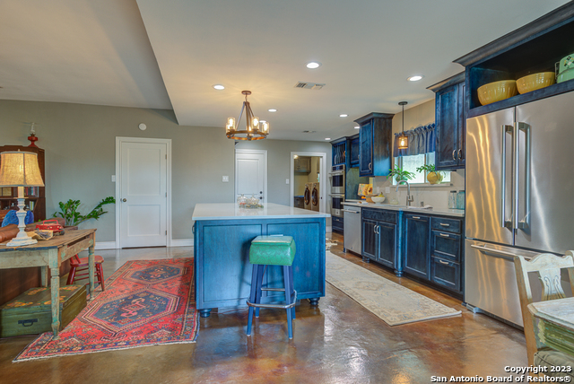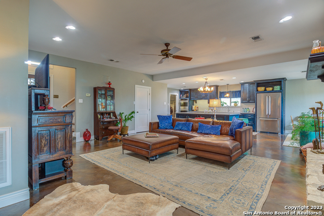 This home offers a true open concept floorplan with a striking gourmet kitchen featuring a Jennaire induction cooking package. Storage galore in the chef friendly custom cabinets and drawers. The stained concrete and reclaimed wood floors are a dramatic statement piece, and easily maintained. Cozy up with a book and enjoy the beautifully crafted rock wood burning fireplace. Your primary suite on the main floor grants access to the course view deck along with an ensuite for relaxing in your clawfoot tub and selecting your wardrobe from the dual walk-in closets. A relaxing deck with unobstructed views of the 8th fairway at the recently purchased Double J Ranch golf course, where the course and the clubhouse (a two minute walk) is being upgraded. Everything for everybody! Exemplary school system and Sports, civic community involvement and a Shopping, music, arts and dining scene to rival any in central Texas.