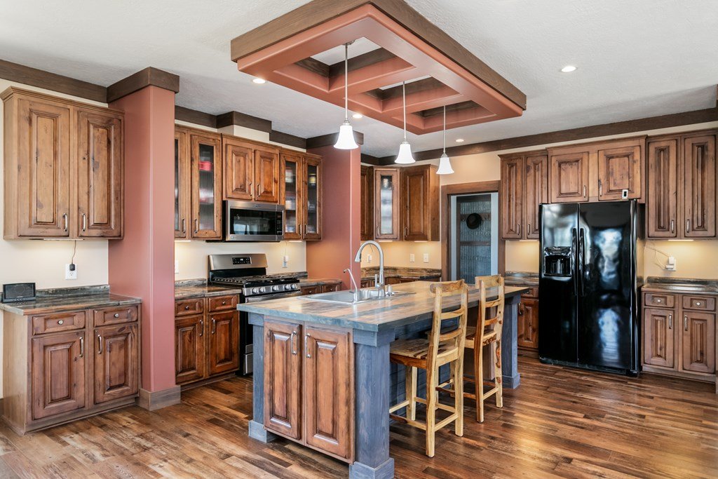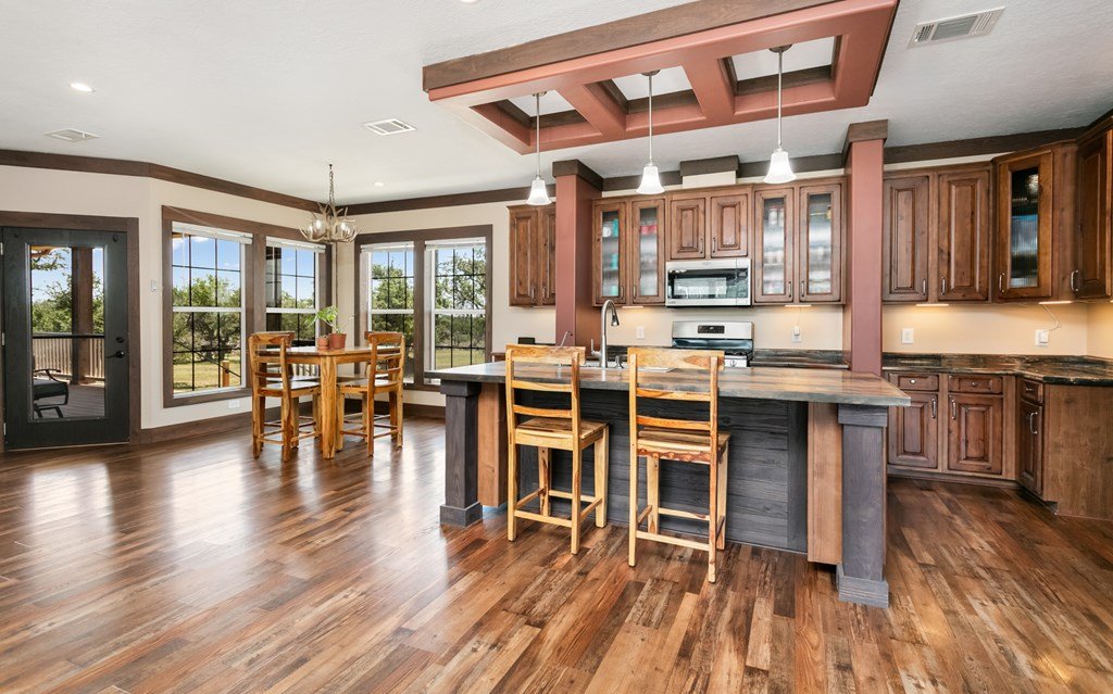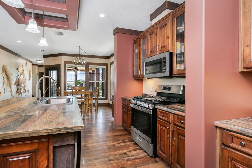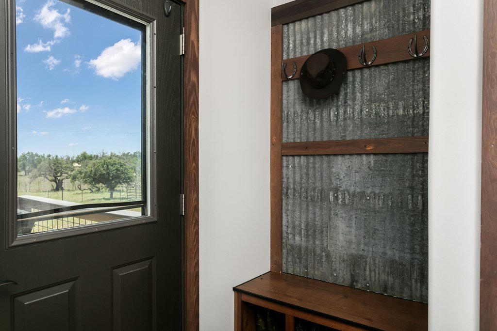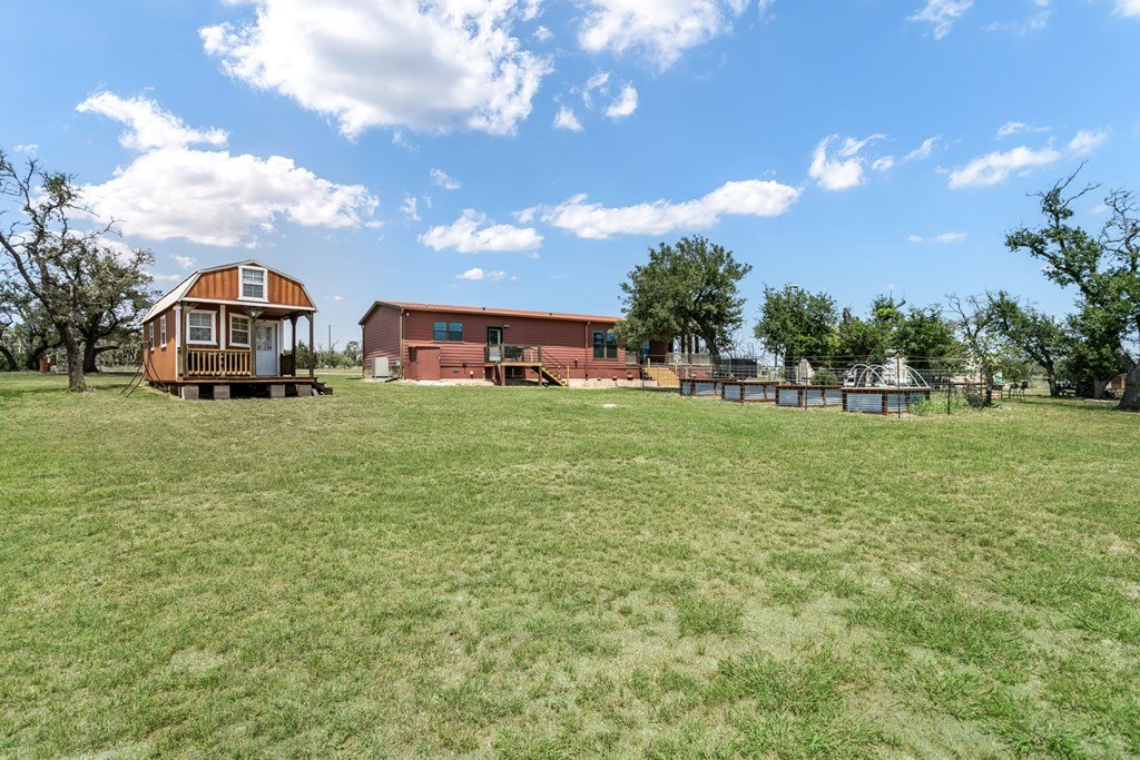 Extremely well cared for home on 6+ acres in the acclaimed Harper school district. This meticulously built and cared for home has 9ft ceilings, luxury vinyl flooring, hardy siding (& soffits), upgraded lighting and numerous custom features including barn doors. The large great room is light and bright with a wall of windows looking out to the serene back yard. The kitchen includes plenty of counter space and cabinets pus an island and under cabinet lighting. The main suite includes a nice size closet and large bathroom with double vanities, oversized tiled shower and room to add a freestanding bathtub. The oversized laundry room includes cabinetry and a utility sink. With a large covered back porch and plenty of established trees, you will have perfect spots for entertaining family and friends. The property also boasts a spacious carport flanked by 2 shipping containers, with electricity. Upgrades include engineered Concrete Pier & Beam Foundation, a wind zone 2 hurricane rating with 2x6 construction, Oklahoma stone skirting and a metal roof. All 3 porches have Trex decking. Other features include energy efficient windows & doors, security storm doors, an oversized 1250 gallon septic system, owned water softener, whole house water filtration system & reverse osmosis system for drinking water and ice, security camera system, solar electric gate at the entrance, and two 50 amp RV electrical hook ups. Plus, a 320 sf cabin shell with 2 lofts and electricity (septic is large enough to accommodate) ready to be finished out. The property is fenced and cross fenced and has an agricultural exemption keeping taxes low (just $1600 in 2024). You won't find another property with more value than this one!