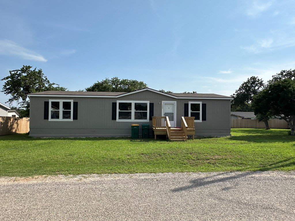 Welcome to 134 E Castlelake, Granite Shoals, TX! This brand-new, never-lived-in Clayton manufactured home offers 1,800 sq ft of beautifully designed living space nestled on a double lot adorned with stunning oak trees. This 3-bedroom, 2-bathroom gem is just minutes away from Lake LBJ, making it an ideal retreat for water enthusiasts. Step inside to discover a bright and open floor plan with a spacious split-bedroom layout, perfect for modern living. The home boasts large windows that fill the space with natural light, creating a warm and inviting atmosphere. There are small wood decks on both the front and back of the home. The new privacy fence ensures peace and seclusion, allowing you to fully enjoy the serene surroundings. You'll have easy access and proximity to multiple property owner association parks that Granite Shoals offers, complete with Lake LBJ access and boat ramps for endless fun on the water. Conveniently located close to Marble Falls and Kingsland, you'll have a variety of shopping and dining options at your fingertips. Whether you're looking for a peaceful home, a vacation getaway, or an investment property, this must-see home checks all the boxes.