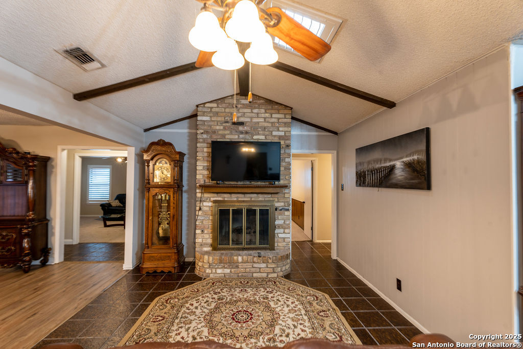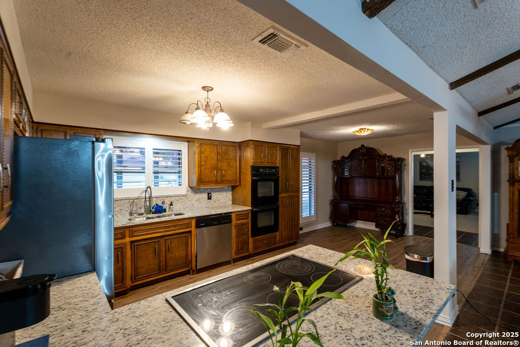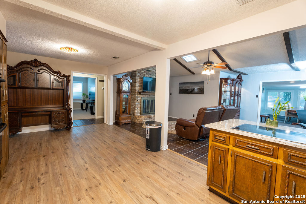 GAME DAY READY! Welcome to this spacious open floor plan home, ideal for large family gatherings or room to grow! Featuring soaring cathedral ceilings, a generous kitchen with new granite countertops, and a cozy fireplace, this home is designed for comfort and connection with a new HVAC system for those hot days and water softener system. Enjoy meals in the large dining room, and let the kids play freely in the expansive yard - perfect for future pool installation or just space to run and explore. The bright, oversized rooms offer flexibility for any lifestyle, and plantation shutters on all windows add timeless charm and privacy. Step outside to a backyard oasis with mature shade trees and a pergola, ready to host unforgettable backyard barbecues. This home offers the perfect blend of suburban tranquility and urban convenience. A must-see to truly appreciate all it has to offer!