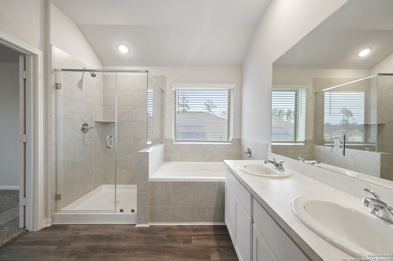 The front porch makes this home beautiful from the moment you see it! Added stone and textures set it apart from the street! The open floor plan with gourmet kitchen featuring 42" cabinets and granite countertops make a great focal point for family gatherings! Stainless steel appliances in the kitchen!! Featuring LVP and upgraded carpet. Covered patio for outdoor entertaining. Owner's suite features garden tub with separate shower! Primary bedroom upstairs makes it easier to be near children for maximum convenience! Large upstairs game room creates a joyful place for family movie nights. *Representative photos, not actual home.