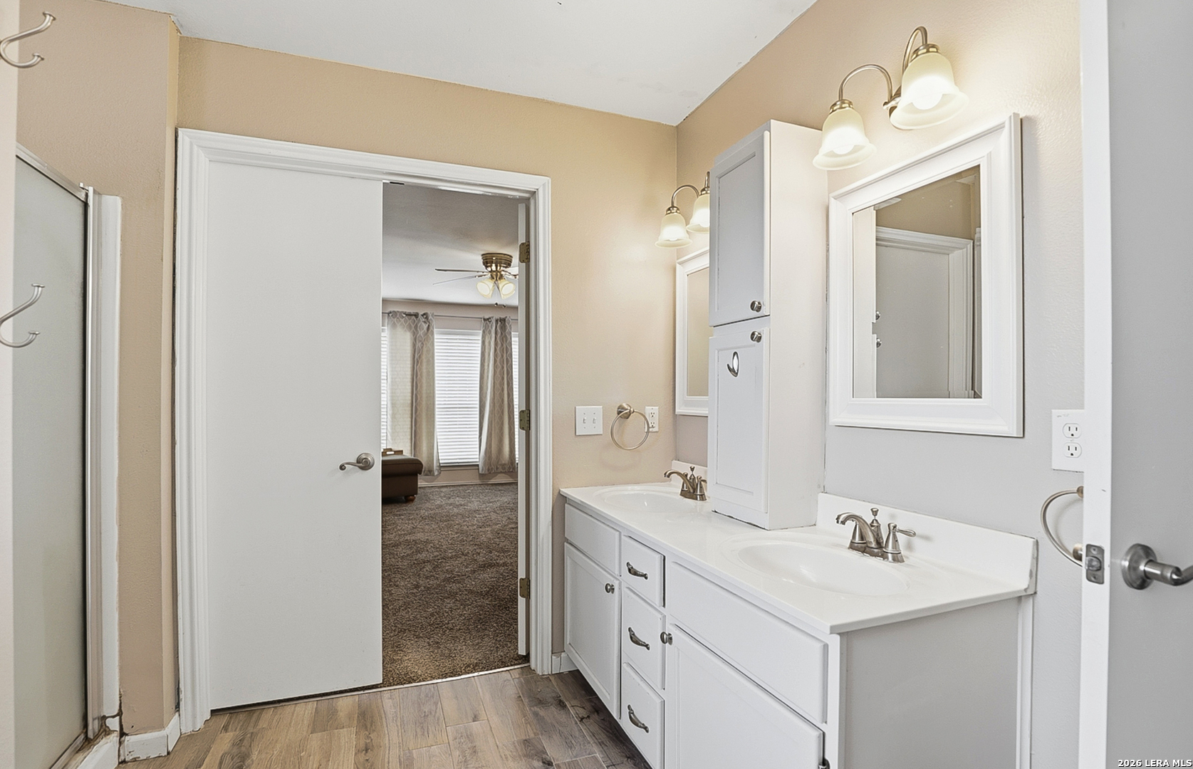 This home has it all! Spacious 4/3 + office. Tucked on a quiet culdesac lot in the desirable Spring Vistas. Beautiful wood floors downstairs, formal living and dining, island kitchen with walk-in pantry. Three spacious living areas and two dining rooms. Oversized primary suite features a relaxing garden tub, separate shower, and generous closet. Downstairs office can easily function as a 5th bedroom with a full size bath nearby. Enjoy a large backyard with mature trees and a spacious patio perfect for entertaining. Northside ISD, just mins away from Lackland AFB, NSA, SeaWorld and major highways. A must see.