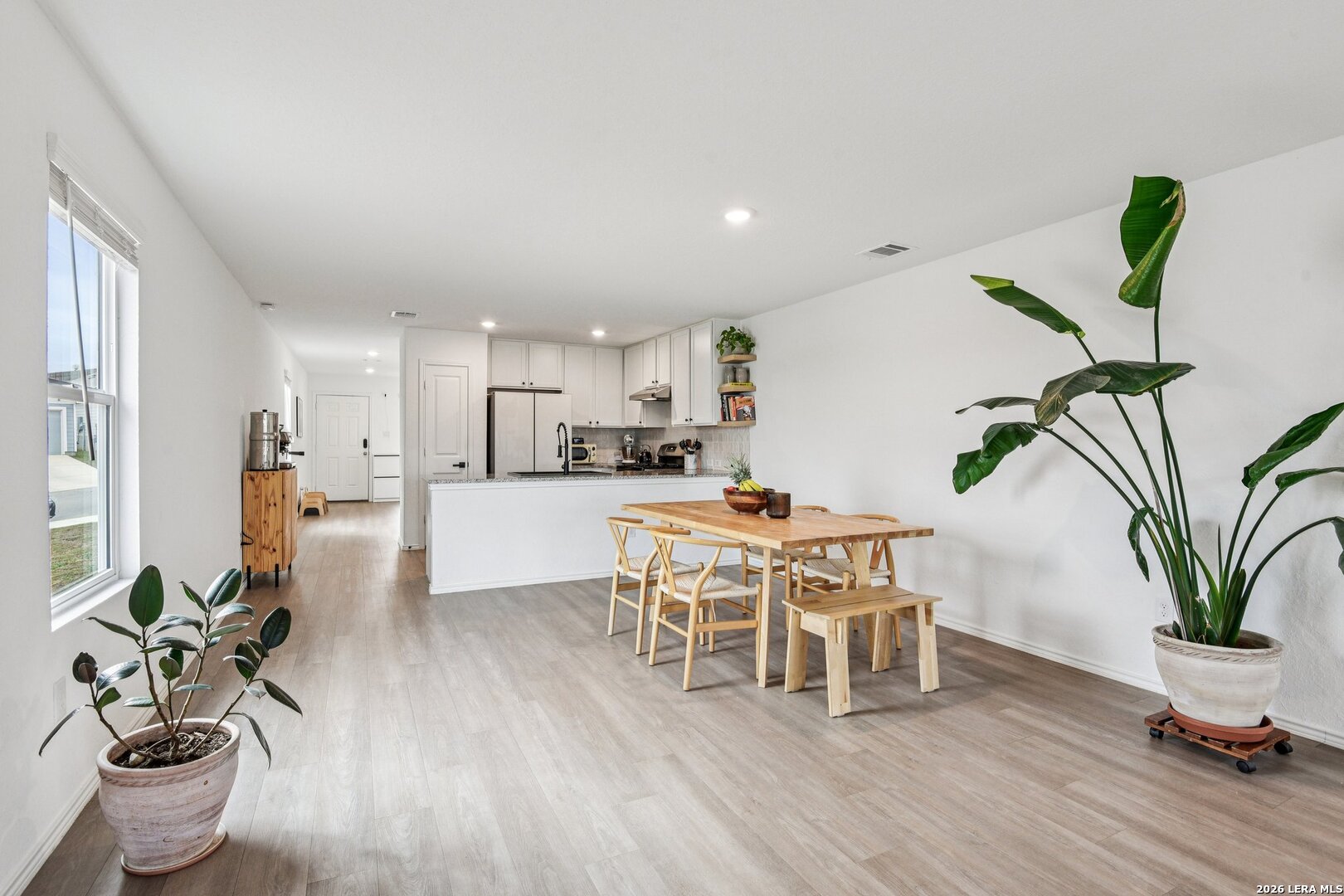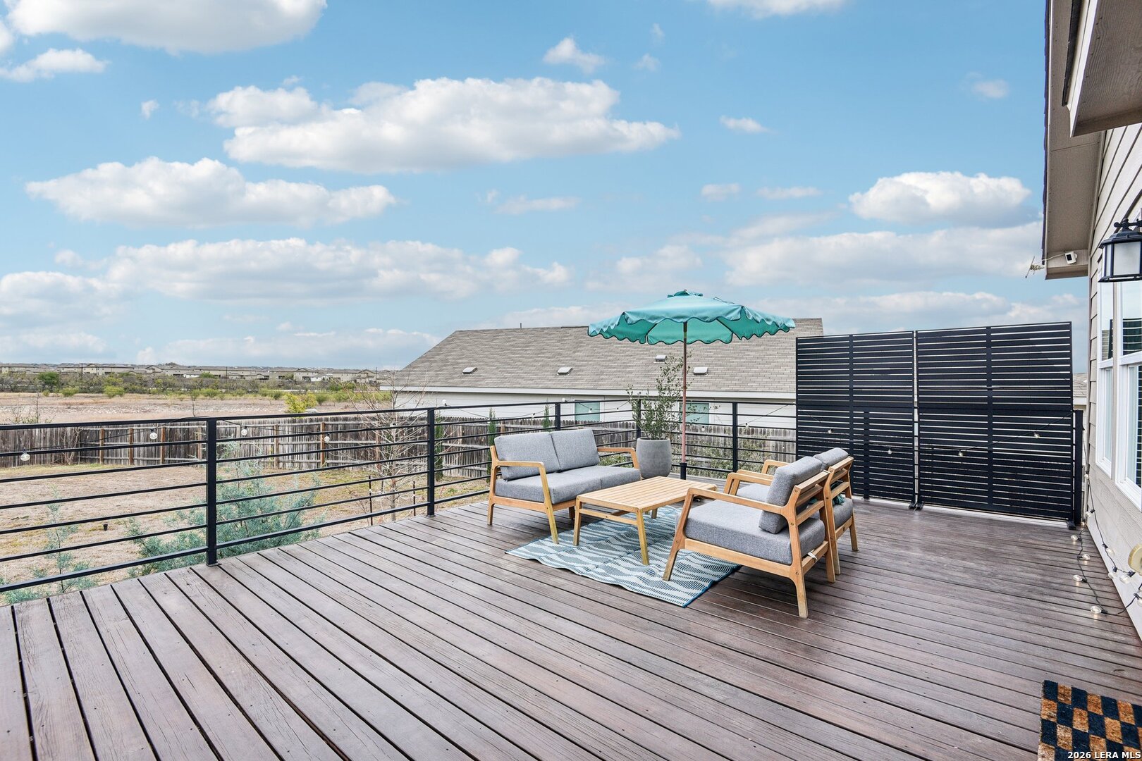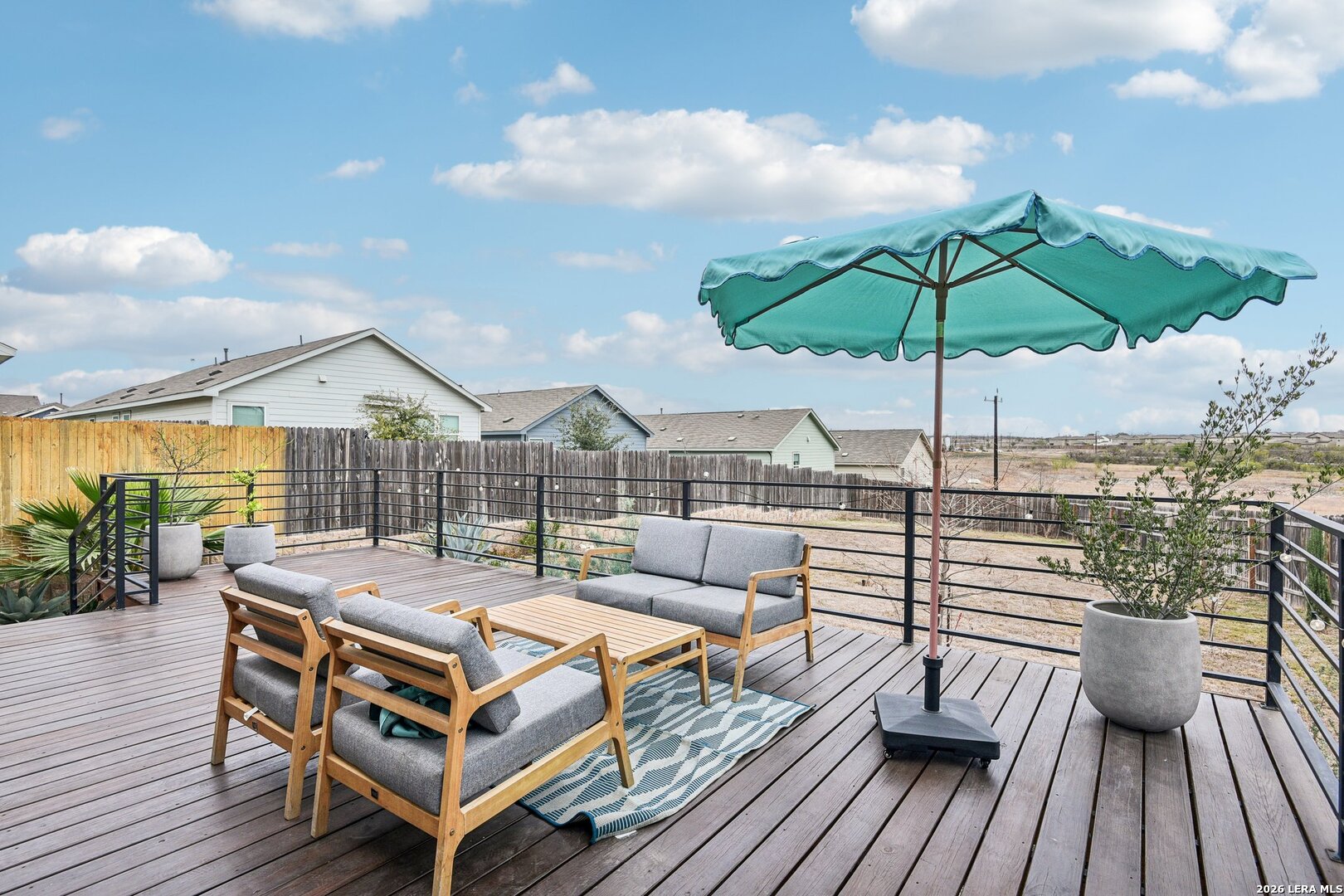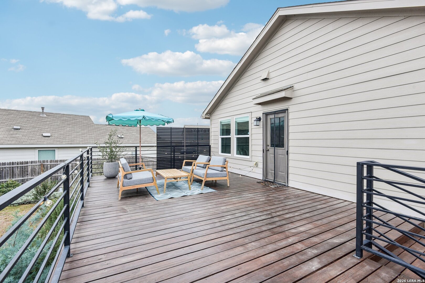 Welcome home where comfort, style, and everyday convenience come together beautifully. Located in the sought-after Silos community, this well-maintained home offers an inviting open layout designed for both easy living and effortless entertaining. Step inside to find spacious living areas filled with natural light, a functional kitchen with ample cabinet and counter space, and a seamless flow into the main living area, perfect for gatherings or quiet nights in. The primary suite provides a relaxing retreat with generous space, while secondary bedrooms offer flexibility for family, guests, or a home office. Enjoy outdoor living with a private backyard with huge deck, ideal for morning coffee, weekend BBQs, or simply unwinding after a long day. The neighborhood features community amenities and is conveniently located near shopping, dining, major highways, and highly regarded schools, making daily commutes and errands a breeze. Whether you're a first-time buyer, growing family, or relocating to San Antonio, this home checks all the boxes. Don't miss the opportunity to make 13419 Homestead Way your next address, schedule your showing today!