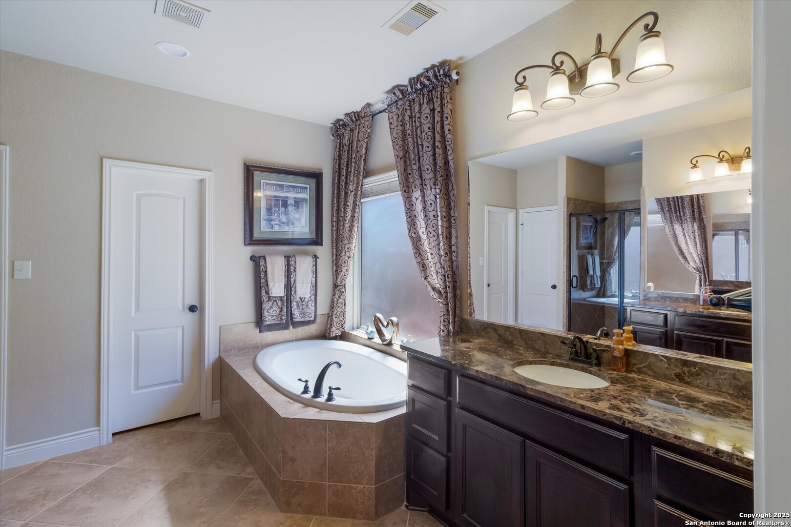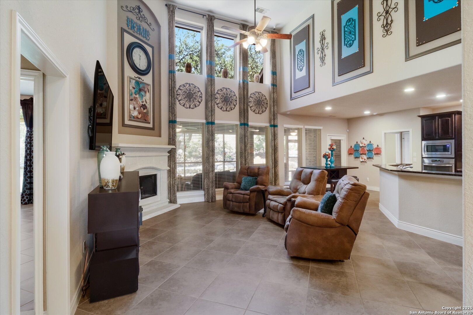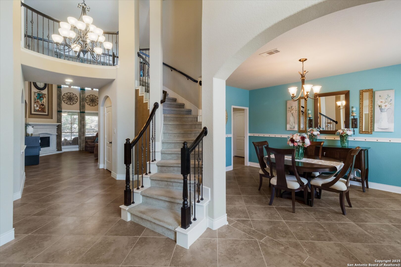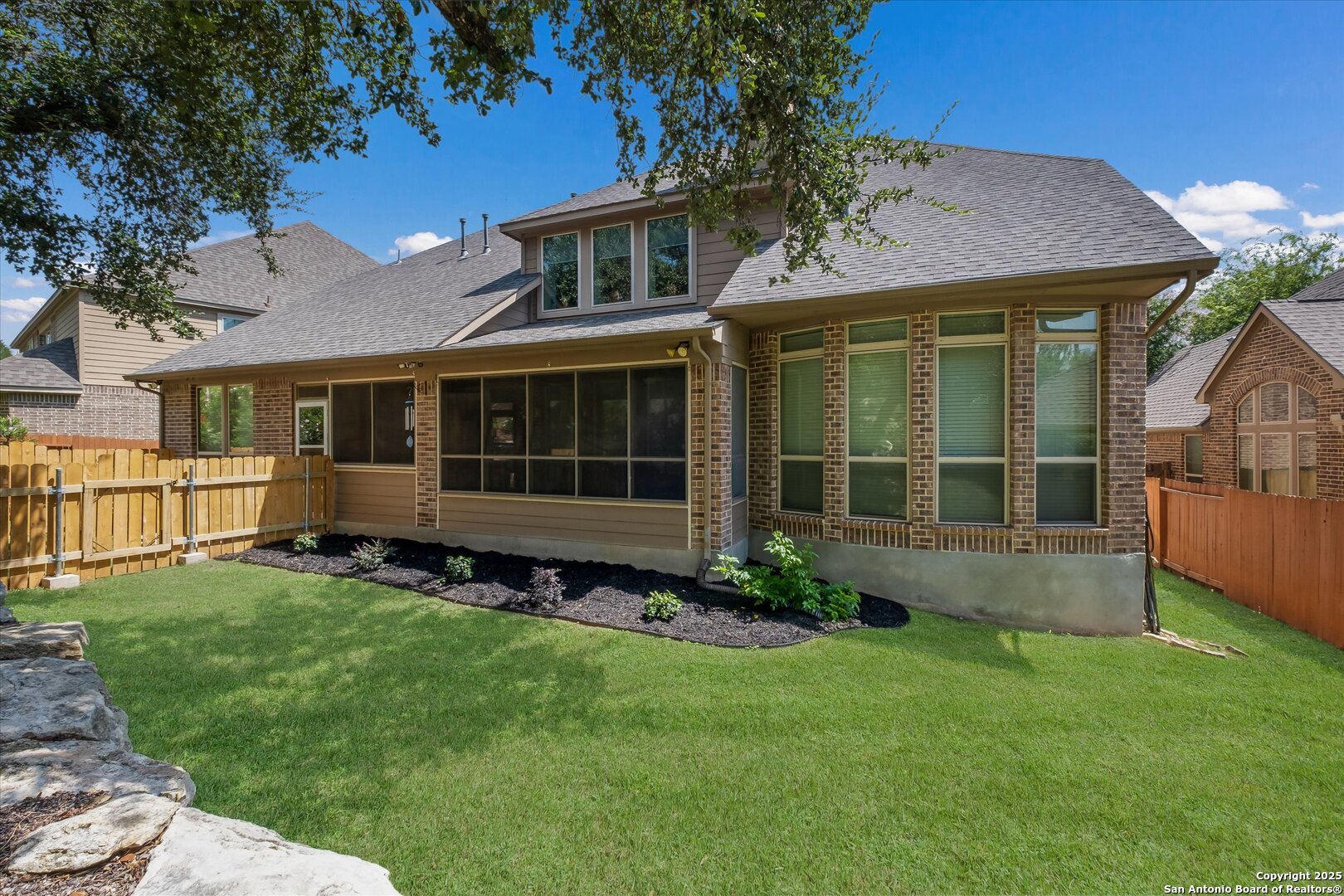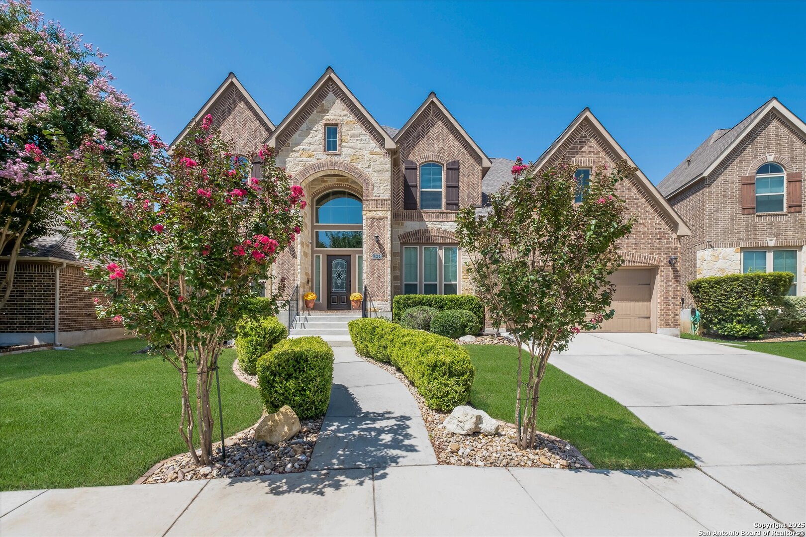 ***PRICE DROP*** Welcome to 13434 Palatine Hill, a meticulously maintained 5-bedroom, 4.5-bathroom home nestled in the sought-after Bella Vista community of San Antonio. This grand residence offers timeless curb appeal with a striking brick and stone facade, manicured landscaping, a welcoming covered entry, and front and back green belts. Step inside to a soaring two-story foyer and sweeping staircase that immediately showcase the home's elegance. The open-concept floor plan features expansive tile flooring throughout the main living areas, ideal for both everyday living and entertaining. A dedicated study with abundant natural light is perfect for working from home, while the formal dining room offers a stylish space for hosting dinner parties. The heart of the home is the gourmet kitchen, boasting rich espresso cabinetry, granite countertops, a central island, stainless steel appliances, and a built-in oven. The adjoining family room features a cozy corner fireplace and a wall of two-story windows that flood the space with light and provide a serene view of the backyard. Retreat to the spacious primary suite, complete with a bay window sitting area and an en-suite bath featuring dual vanities, a walk-in shower, a soaking tub, and generous closet space. In addition a secondary bedroom (mother in-law suite) is located downstairs. Upstairs, you'll find 3 additional bedrooms, your own theater room, and a versatile loft space, perfect for a game room or second living area. Enjoy Texas evenings in the lush, private backyard with mature trees, rock landscaping, and a screened-in porch ideal for relaxing or dining al fresco. Located in the highly desirable Northside ISD and close to Loop 1604, major employers, dining, shopping, and top-rated schools, this home is the perfect blend of comfort, style, and convenience.