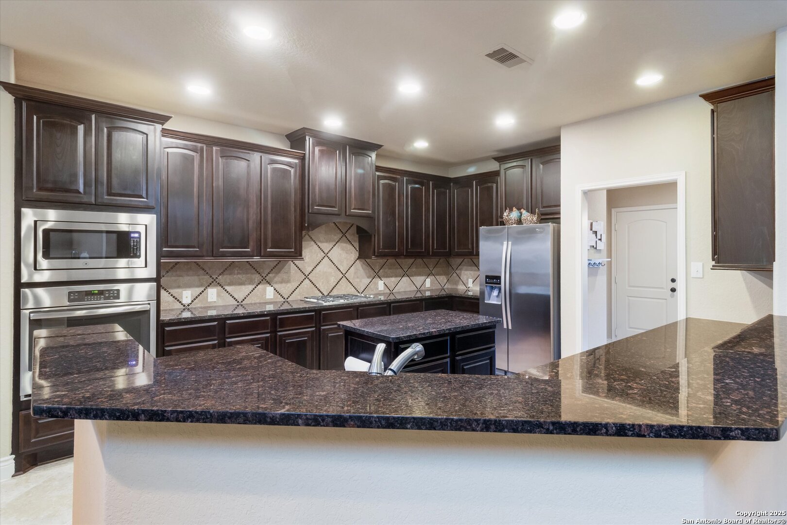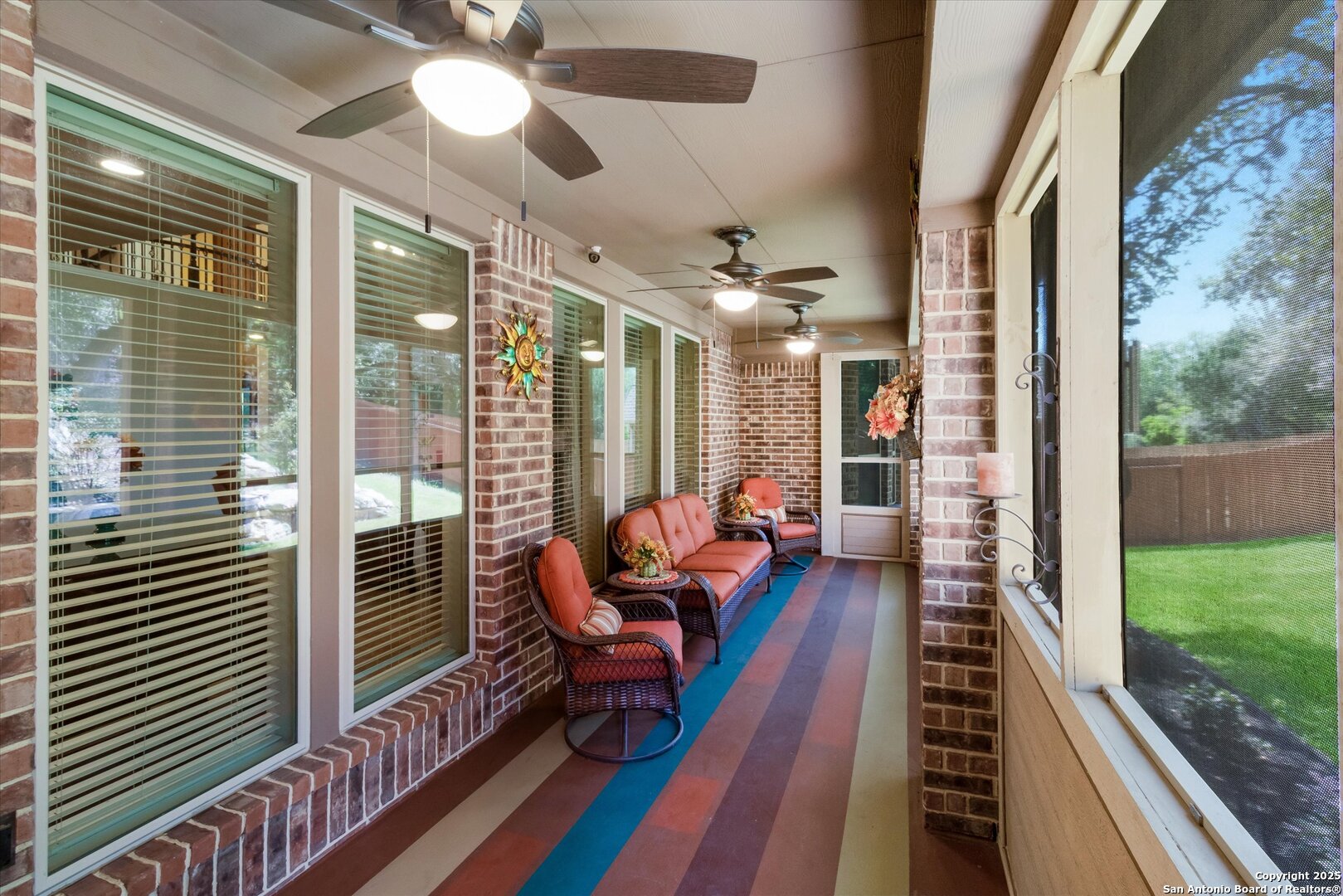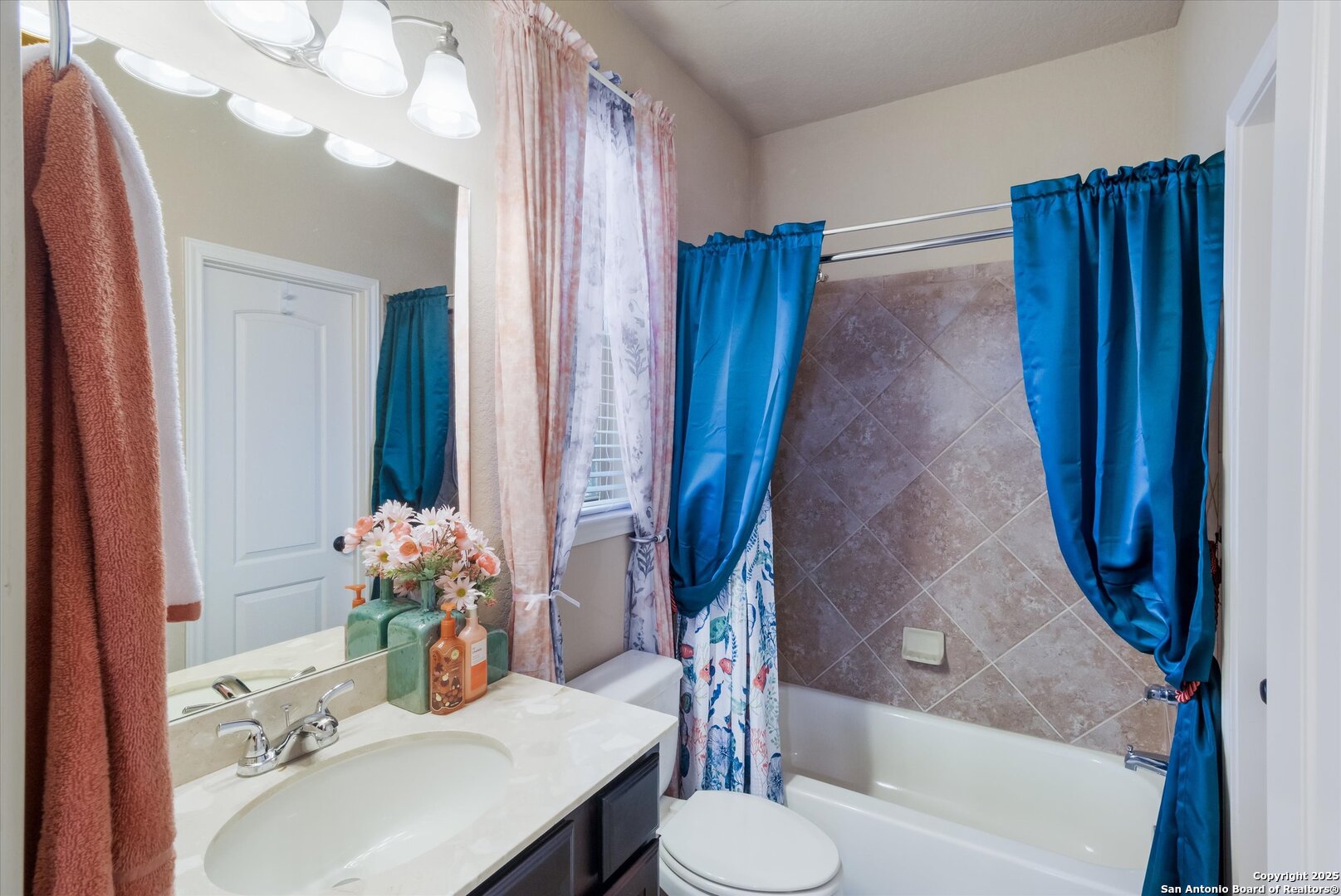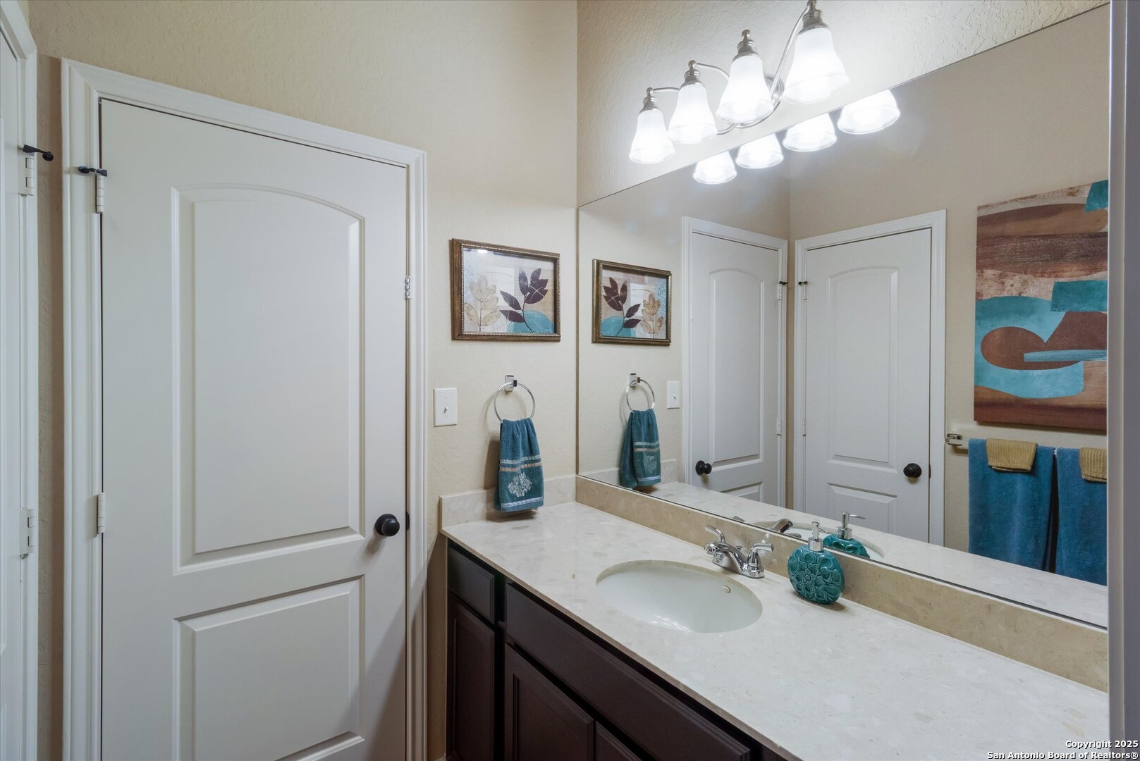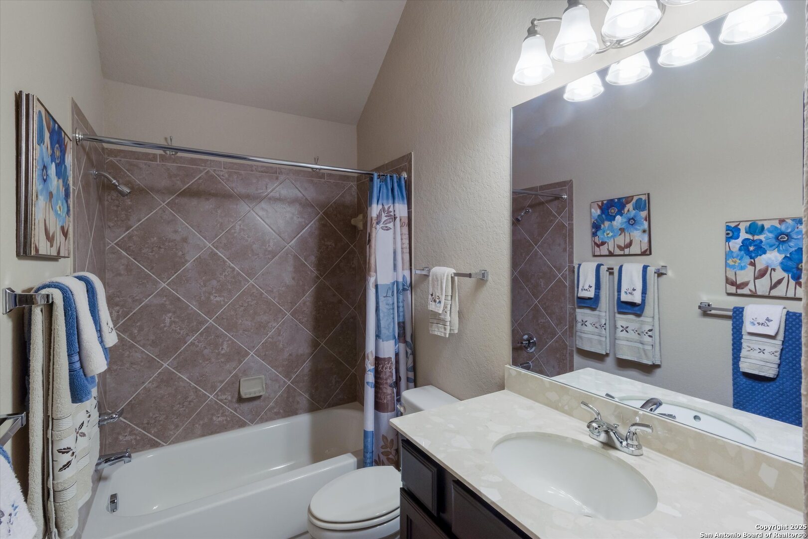 ***PRICE DROP*** Welcome to 13434 Palatine Hill, a meticulously maintained 5-bedroom, 4.5-bathroom home nestled in the sought-after Bella Vista community of San Antonio. This grand residence offers timeless curb appeal with a striking brick and stone facade, manicured landscaping, a welcoming covered entry, and front and back green belts. Step inside to a soaring two-story foyer and sweeping staircase that immediately showcase the home's elegance. The open-concept floor plan features expansive tile flooring throughout the main living areas, ideal for both everyday living and entertaining. A dedicated study with abundant natural light is perfect for working from home, while the formal dining room offers a stylish space for hosting dinner parties. The heart of the home is the gourmet kitchen, boasting rich espresso cabinetry, granite countertops, a central island, stainless steel appliances, and a built-in oven. The adjoining family room features a cozy corner fireplace and a wall of two-story windows that flood the space with light and provide a serene view of the backyard. Retreat to the spacious primary suite, complete with a bay window sitting area and an en-suite bath featuring dual vanities, a walk-in shower, a soaking tub, and generous closet space. In addition a secondary bedroom (mother in-law suite) is located downstairs. Upstairs, you'll find 3 additional bedrooms, your own theater room, and a versatile loft space, perfect for a game room or second living area. Enjoy Texas evenings in the lush, private backyard with mature trees, rock landscaping, and a screened-in porch ideal for relaxing or dining al fresco. Located in the highly desirable Northside ISD and close to Loop 1604, major employers, dining, shopping, and top-rated schools, this home is the perfect blend of comfort, style, and convenience.