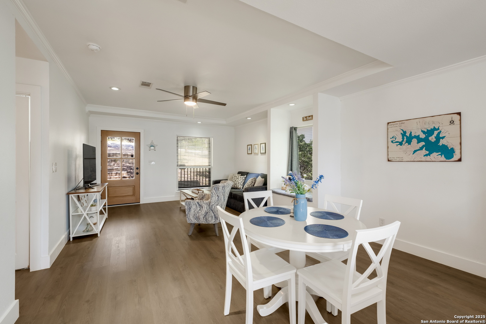 Turnkey Canyon Lake gem! This fully furnished and beautifully remodeled home is a rare find. Enjoy a luxury feel with high-end finishes, spacious bedrooms, stunning bathrooms, and a charming book nook. The private balcony offers incredible Hill Country views and amazing sunsets. Currently a successful and active Airbnb, this property is an ideal investment, vacation home, or full-time residence. A short walk or bike ride takes you to the community boat ramp. This home is ready for its new owner. Schedule your tour today!