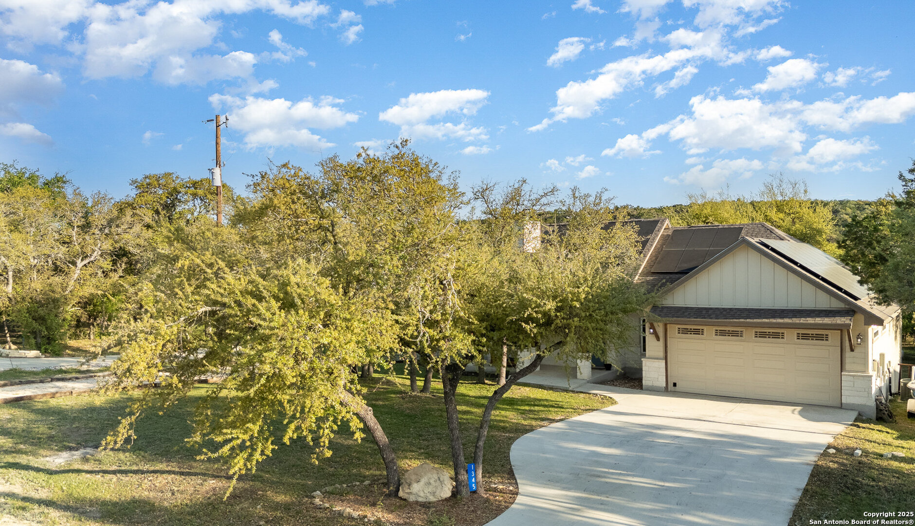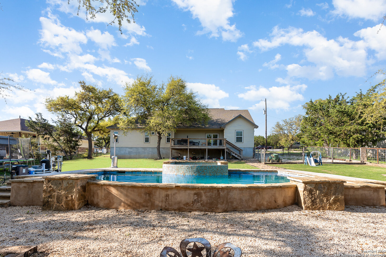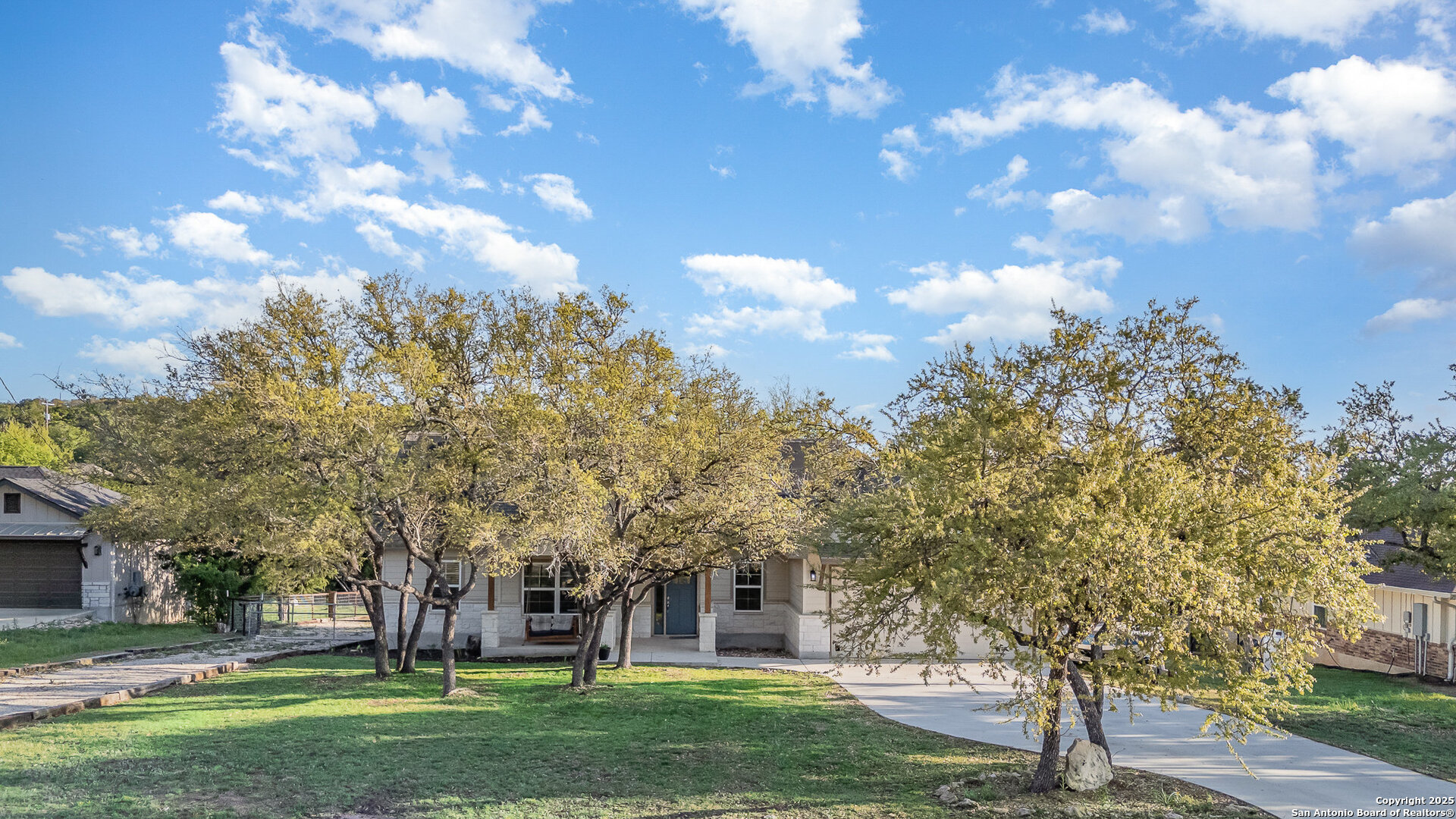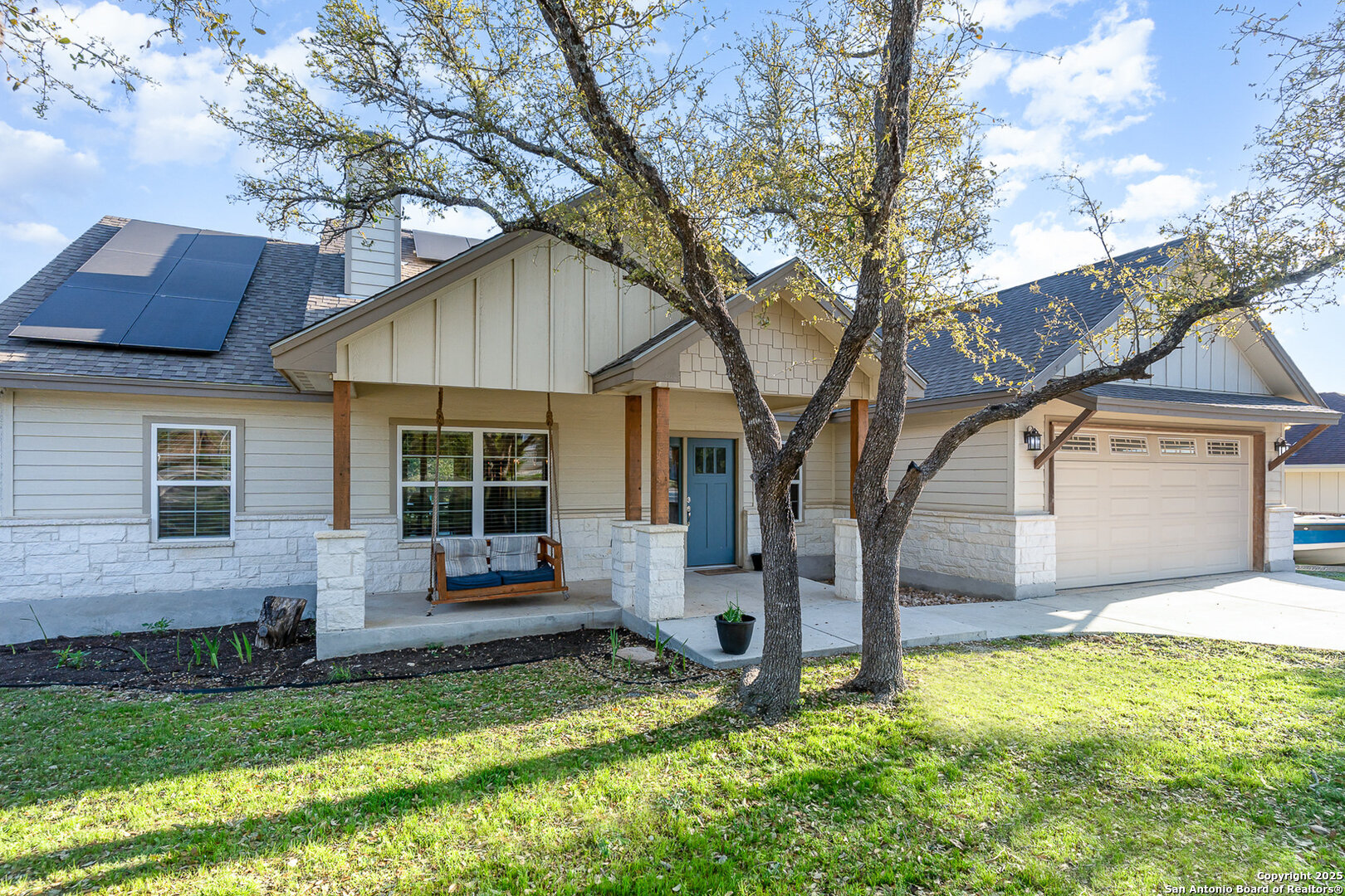 Welcome to your Hill Country retreat at 1345 Birch Ln in Fischer, TX - a beautifully maintained single-story home offering comfort, style, and resort-style amenities in a peaceful cul-de-sac setting. Built in 2020 and nestled within the scenic landscape, this move-in-ready residence boasts 3 bedrooms, 2 bathrooms, and an expansive open floor plan designed for relaxed living and effortless entertaining. At the heart of the home, the living room radiates warmth and character with its wood-burning fireplace, rich beamed ceiling, and soaring vaulted ceilings - creating a dramatic and cozy atmosphere. The kitchen is a true showstopper, featuring a large center island, sleek stone countertops, modern shaker-style cabinetry, and a breakfast bar perfect for morning coffee or evening conversation. The primary bedroom offers a quiet retreat with a tray ceiling that adds a touch of elegance, while the en suite bath impresses with a tiled walk-in shower and double vanity. Additional thoughtful touches include a walk-in closet, dedicated laundry room, and an oversized 2-car garage with plenty of room for storage or tools. Step outside to your own private oasis, where a heated pool and in-ground spa invite year-round enjoyment. Whether relaxing on the spacious deck, lounging under the covered patio, or hosting under the stars in this dark sky community, the backyard is designed for outdoor living at its best. The large yard provides ample space for recreation, while the gated second driveway accommodates RVs or extra parking with ease. Enjoy the tranquility of Hill Country living while still being within a reasonable commute to both Austin and San Antonio. Located at the end of a quiet cul-de-sac with no through traffic, this home offers privacy, functionality, and everyday luxury in a stunning natural setting. Click the Virtual Tour link to view the 3D walkthrough. Discounted rate options and no lender fee future refinancing may be available for qualified buyers of this home.