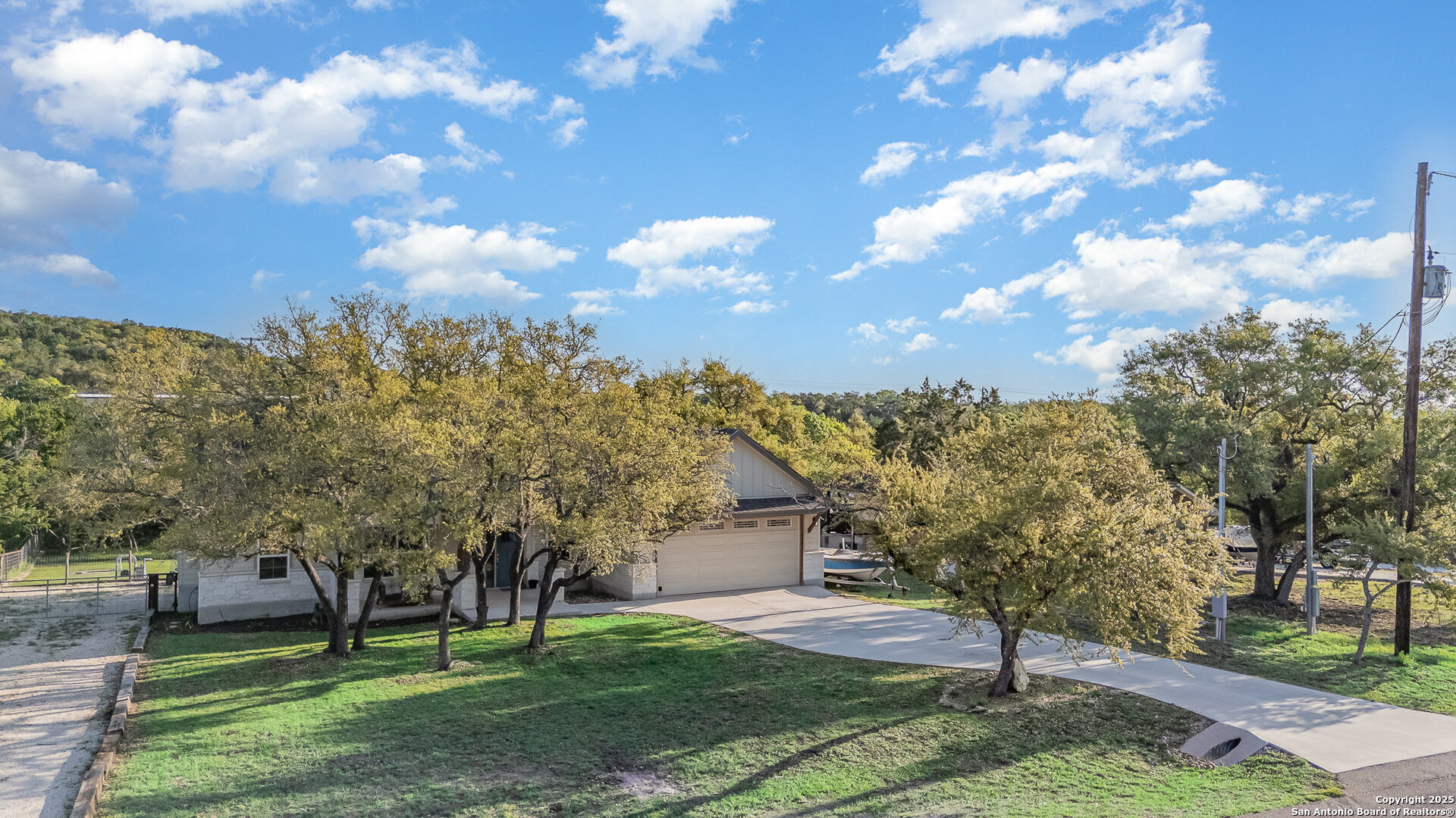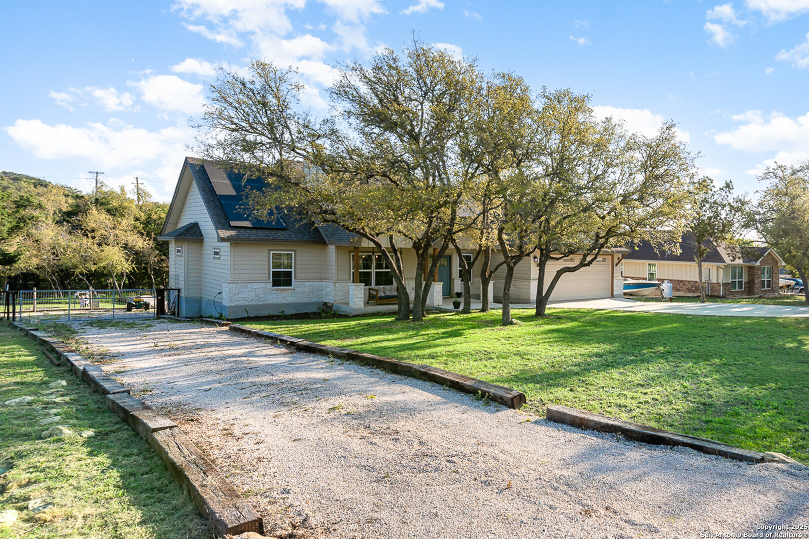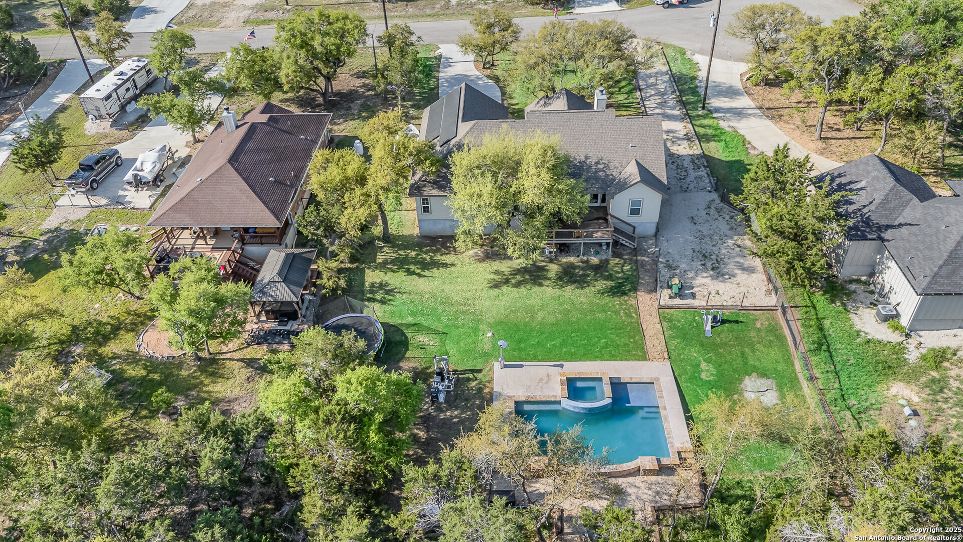 Welcome to your Hill Country retreat at 1345 Birch Ln in Fischer, TX - a beautifully maintained single-story home offering comfort, style, and resort-style amenities in a peaceful cul-de-sac setting. Built in 2020 and nestled within the scenic landscape, this move-in-ready residence boasts 3 bedrooms, 2 bathrooms, and an expansive open floor plan designed for relaxed living and effortless entertaining. At the heart of the home, the living room radiates warmth and character with its wood-burning fireplace, rich beamed ceiling, and soaring vaulted ceilings - creating a dramatic and cozy atmosphere. The kitchen is a true showstopper, featuring a large center island, sleek stone countertops, modern shaker-style cabinetry, and a breakfast bar perfect for morning coffee or evening conversation. The primary bedroom offers a quiet retreat with a tray ceiling that adds a touch of elegance, while the en suite bath impresses with a tiled walk-in shower and double vanity. Additional thoughtful touches include a walk-in closet, dedicated laundry room, and an oversized 2-car garage with plenty of room for storage or tools. Step outside to your own private oasis, where a heated pool and in-ground spa invite year-round enjoyment. Whether relaxing on the spacious deck, lounging under the covered patio, or hosting under the stars in this dark sky community, the backyard is designed for outdoor living at its best. The large yard provides ample space for recreation, while the gated second driveway accommodates RVs or extra parking with ease. Enjoy the tranquility of Hill Country living while still being within a reasonable commute to both Austin and San Antonio. Located at the end of a quiet cul-de-sac with no through traffic, this home offers privacy, functionality, and everyday luxury in a stunning natural setting. Click the Virtual Tour link to view the 3D walkthrough. Discounted rate options and no lender fee future refinancing may be available for qualified buyers of this home.