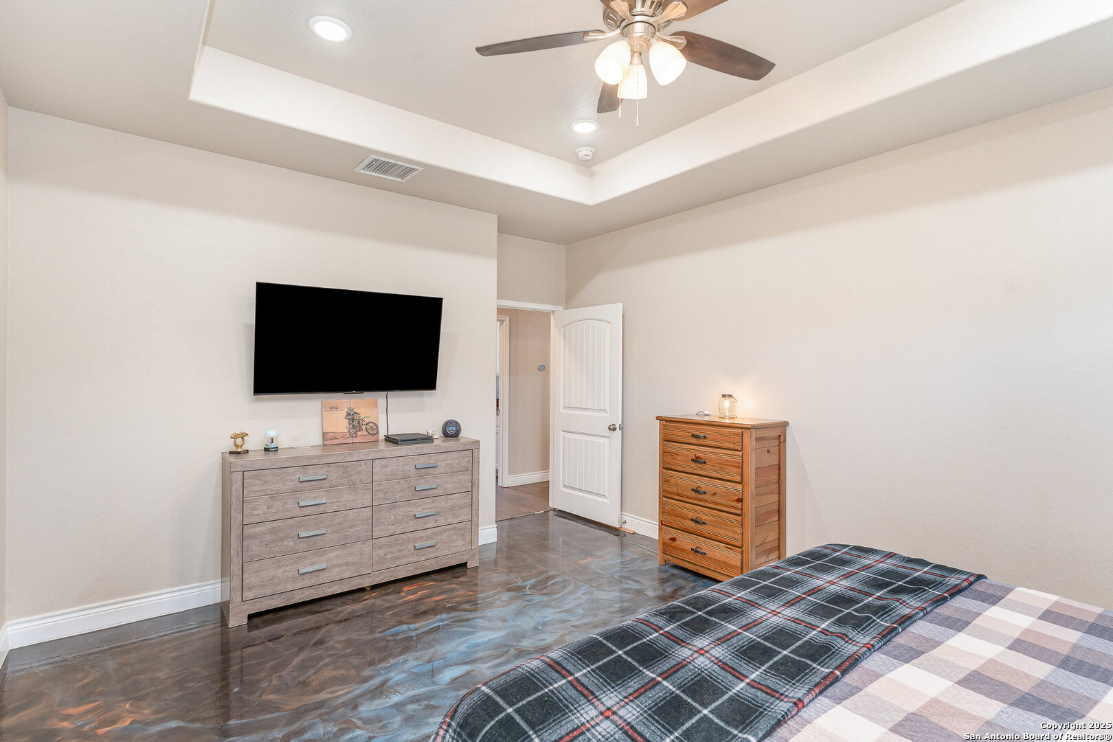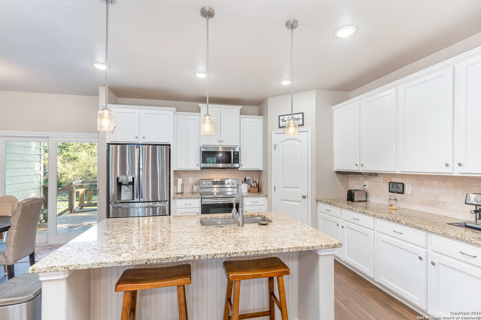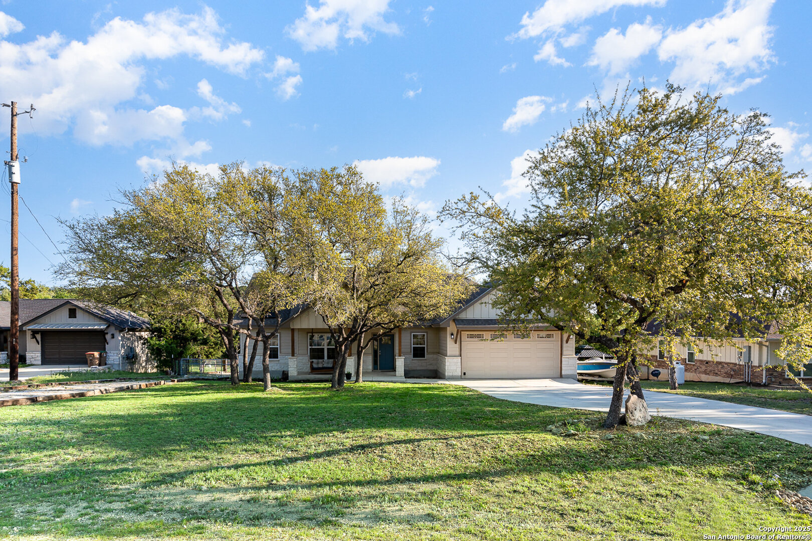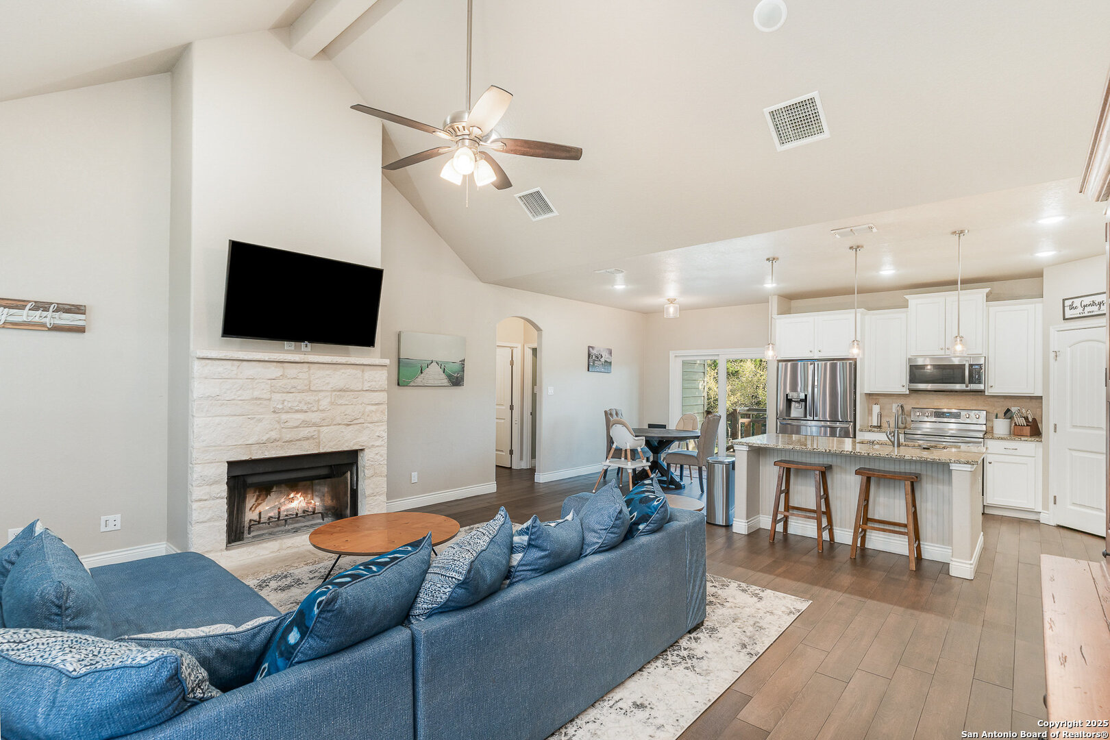 Welcome to your Hill Country retreat at 1345 Birch Ln in Fischer, TX - a beautifully maintained single-story home offering comfort, style, and resort-style amenities in a peaceful cul-de-sac setting. Built in 2020 and nestled within the scenic landscape, this move-in-ready residence boasts 3 bedrooms, 2 bathrooms, and an expansive open floor plan designed for relaxed living and effortless entertaining. At the heart of the home, the living room radiates warmth and character with its wood-burning fireplace, rich beamed ceiling, and soaring vaulted ceilings - creating a dramatic and cozy atmosphere. The kitchen is a true showstopper, featuring a large center island, sleek stone countertops, modern shaker-style cabinetry, and a breakfast bar perfect for morning coffee or evening conversation. The primary bedroom offers a quiet retreat with a tray ceiling that adds a touch of elegance, while the en suite bath impresses with a tiled walk-in shower and double vanity. Additional thoughtful touches include a walk-in closet, dedicated laundry room, and an oversized 2-car garage with plenty of room for storage or tools. Step outside to your own private oasis, where a heated pool and in-ground spa invite year-round enjoyment. Whether relaxing on the spacious deck, lounging under the covered patio, or hosting under the stars in this dark sky community, the backyard is designed for outdoor living at its best. The large yard provides ample space for recreation, while the gated second driveway accommodates RVs or extra parking with ease. Enjoy the tranquility of Hill Country living while still being within a reasonable commute to both Austin and San Antonio. Located at the end of a quiet cul-de-sac with no through traffic, this home offers privacy, functionality, and everyday luxury in a stunning natural setting. Click the Virtual Tour link to view the 3D walkthrough. Discounted rate options and no lender fee future refinancing may be available for qualified buyers of this home.