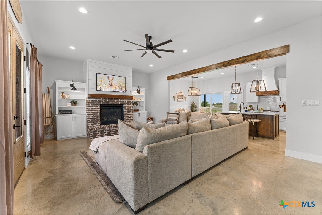 Welcome to peaceful country living at 13487 Wedel Cemetery Rd in Rogers, Texas! Built in 2022, this stunning 4-bedroom, 2-bath home offers over 1,800 sq ft of modern farmhouse style on a full 1-acre lot. Inside, you’ll find a warm and inviting living area featuring a gas-burning brick fireplace, custom built-ins, and beautiful shiplap accents throughout. The open-concept kitchen is a true showstopper with farmhouse-inspired design, custom cabinetry, under-cabinet lighting, a gas stove, walk-in pantry with built-ins, and the refrigerator included — making this home truly move-in ready. The spacious primary suite offers a spa-like retreat with a stand-alone soaking tub, separate walk-in shower, and thoughtfully designed closet space with built-ins. Each additional bedroom is generously sized with functional storage throughout. Step outside and enjoy everything this property has to offer — including a 20x30 insulated workshop with electricity, roll-up door, and lean-to on the side, perfect for projects, storage, or hobbies. A 3-car carport provides ample covered parking. Additional features include East Bell County Water Supply, Heart of Texas Electric Co-Op, and an aerobic septic system. If you’ve been searching for a newer construction home with land, modern farmhouse charm, and functional upgrades — this one checks all the boxes.