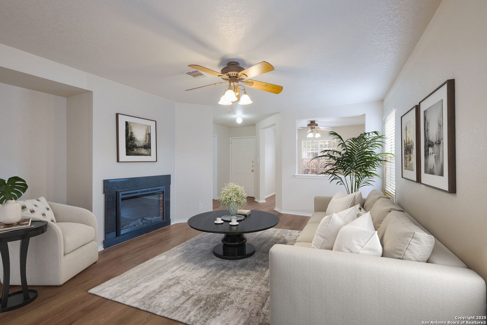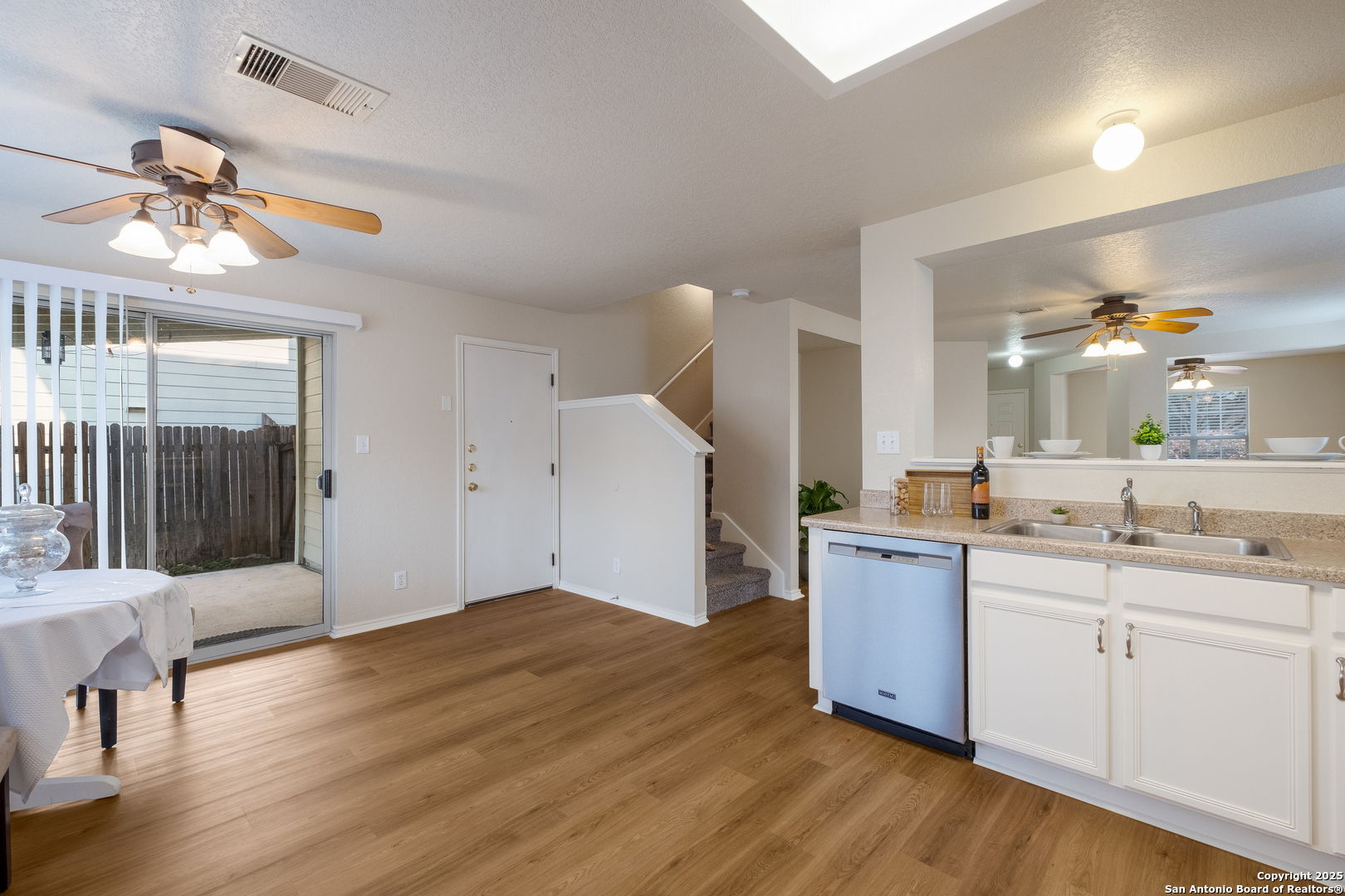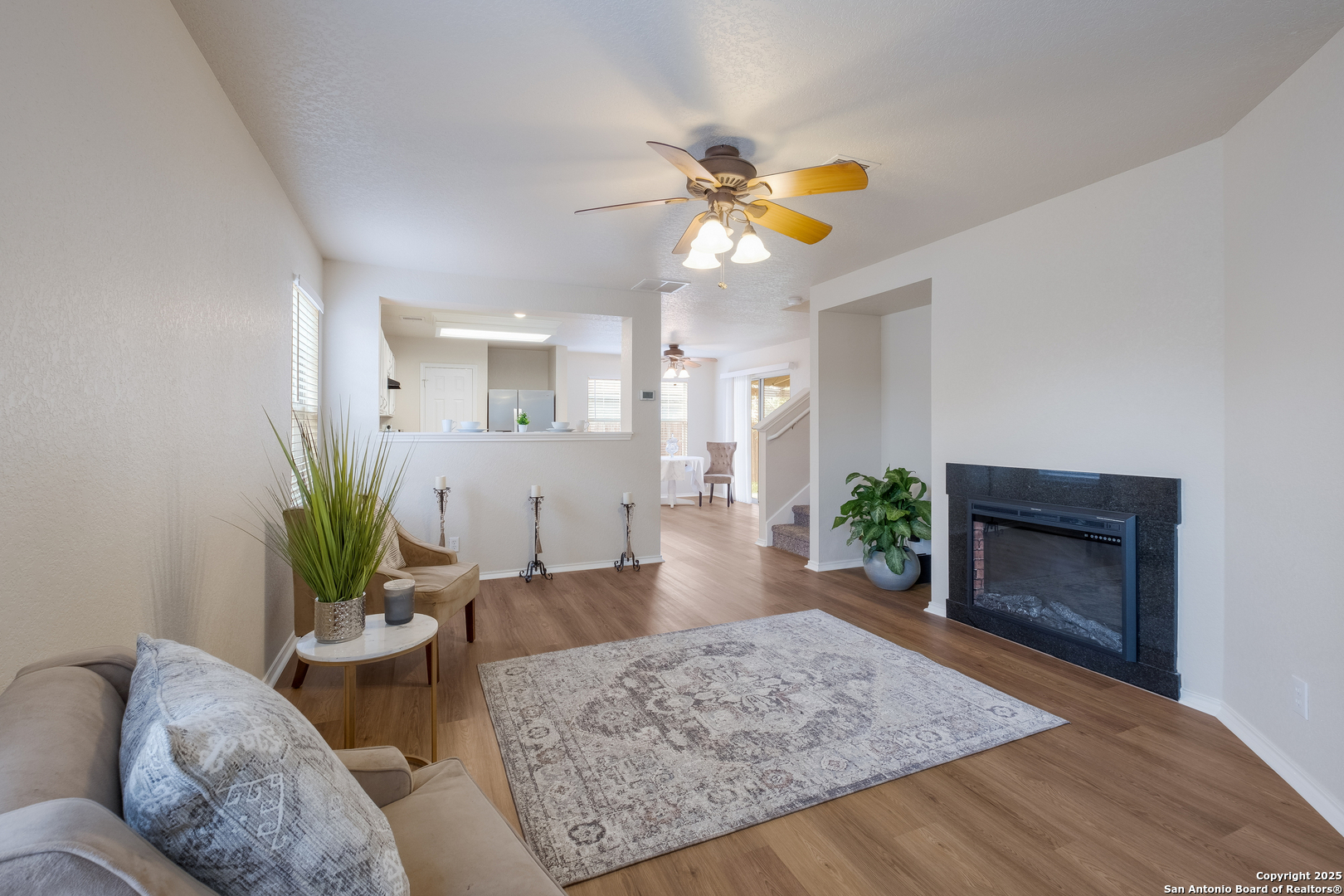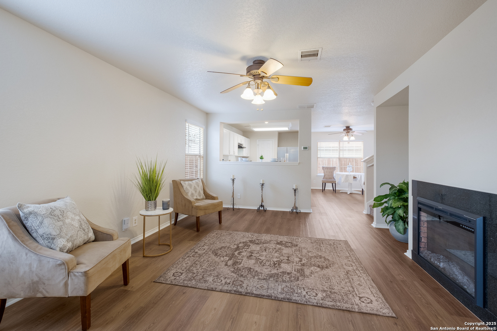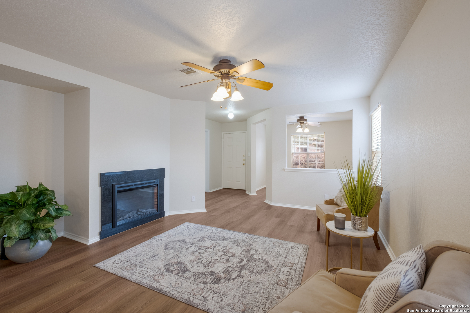 This well-maintained two-story home features 3 bedrooms, 2.5 bathrooms, and a functional layout with an office on the main level and all bedrooms plus a loft upstairs. The kitchen boasts near-new appliances, and the home includes a 4-year-old air conditioner and a 6-year-old roof for added peace of mind. Enjoy the charm of a granite faux fireplace, brand new LVP flooring downstairs, and ceiling fans throughout for year-round comfort. Conveniently located within walking distance to UTSA and just a short drive to USAA, the Medical Center, La Cantera, Fiesta Texas, and SeaWorld, this home offers both comfort and a prime location.