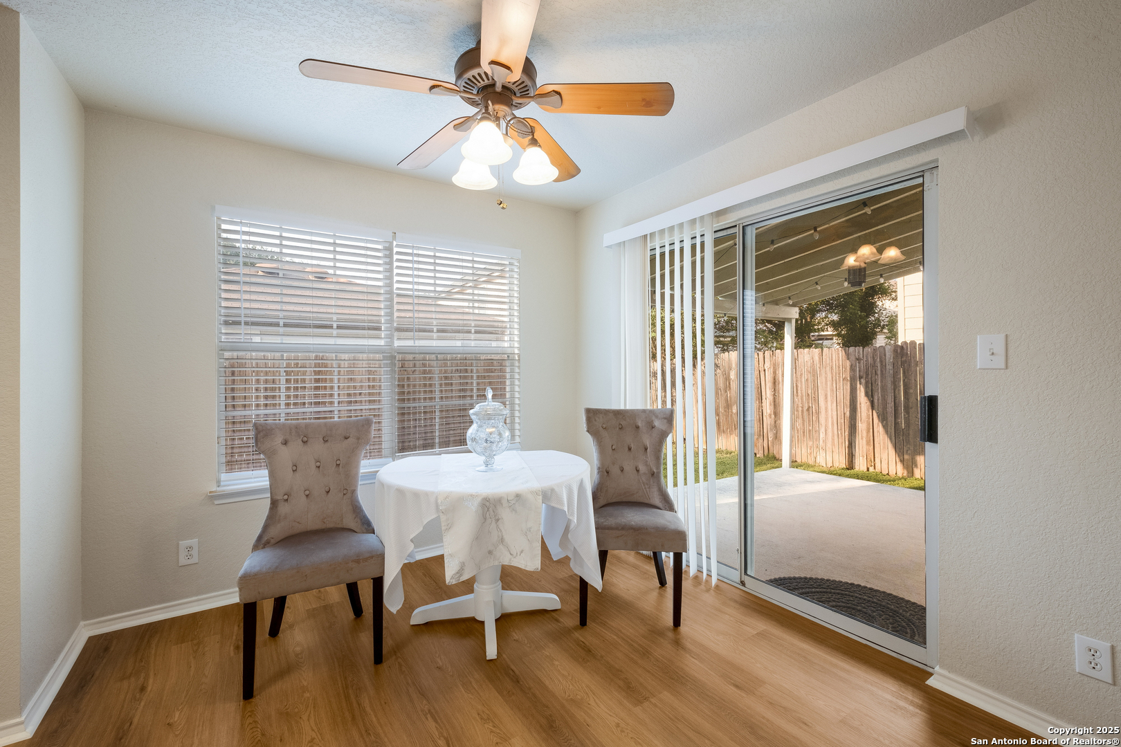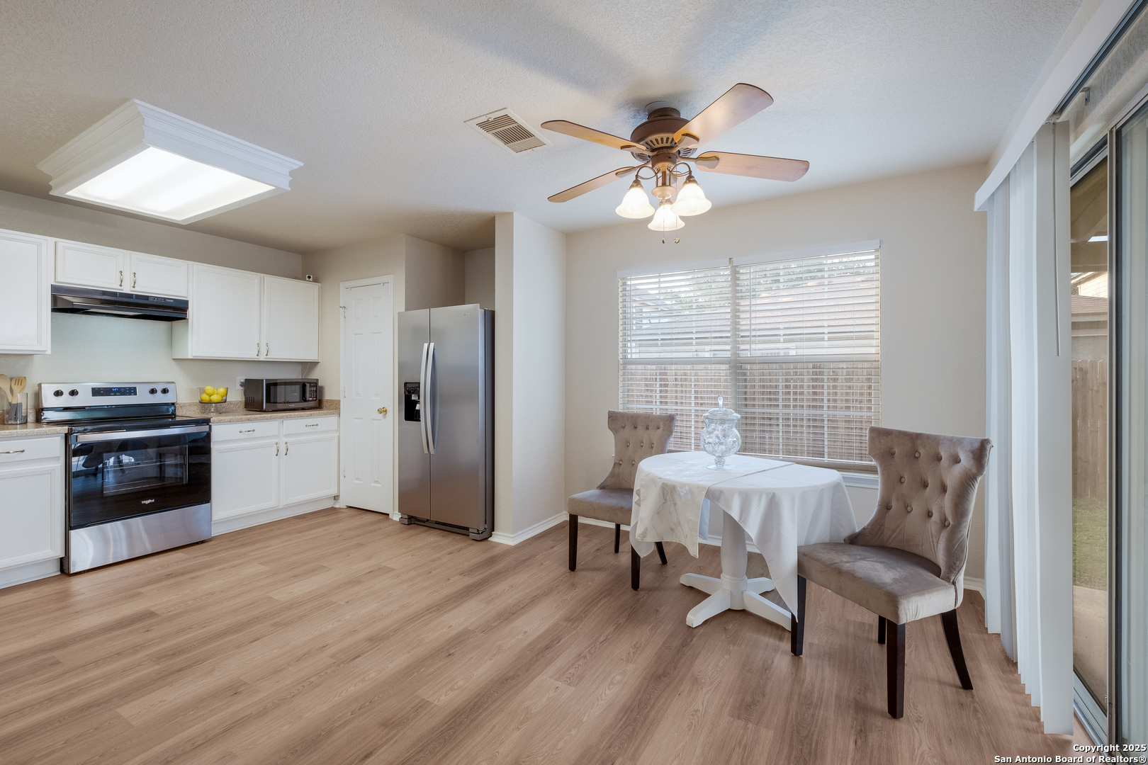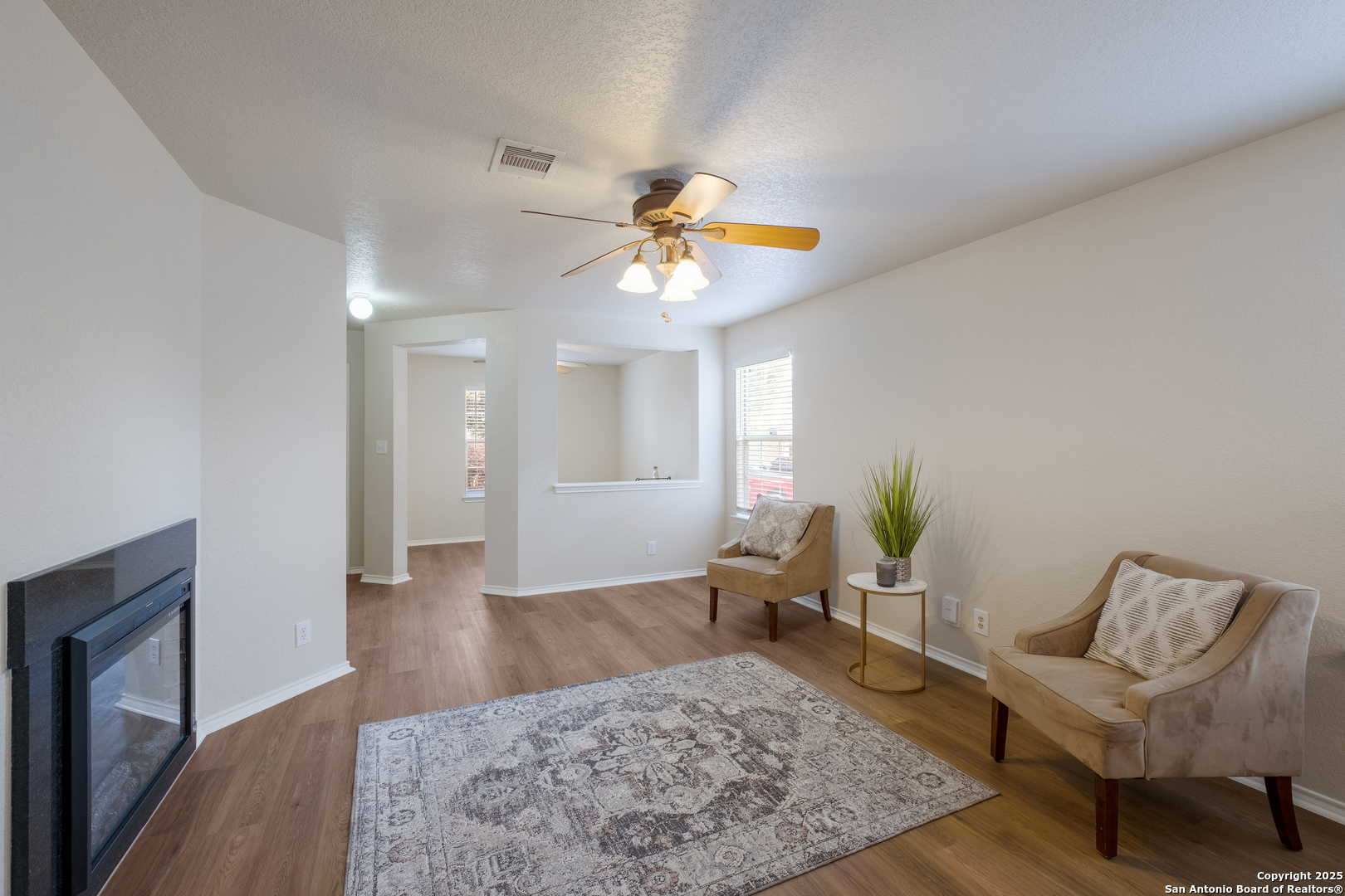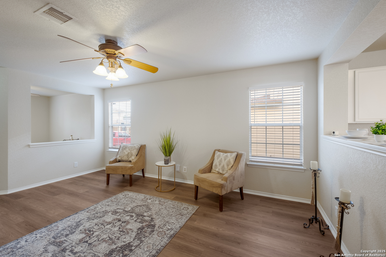 This well-maintained two-story home features 3 bedrooms, 2.5 bathrooms, and a functional layout with an office on the main level and all bedrooms plus a loft upstairs. The kitchen boasts near-new appliances, and the home includes a 4-year-old air conditioner and a 6-year-old roof for added peace of mind. Enjoy the charm of a granite faux fireplace, brand new LVP flooring downstairs, and ceiling fans throughout for year-round comfort. Conveniently located within walking distance to UTSA and just a short drive to USAA, the Medical Center, La Cantera, Fiesta Texas, and SeaWorld, this home offers both comfort and a prime location.