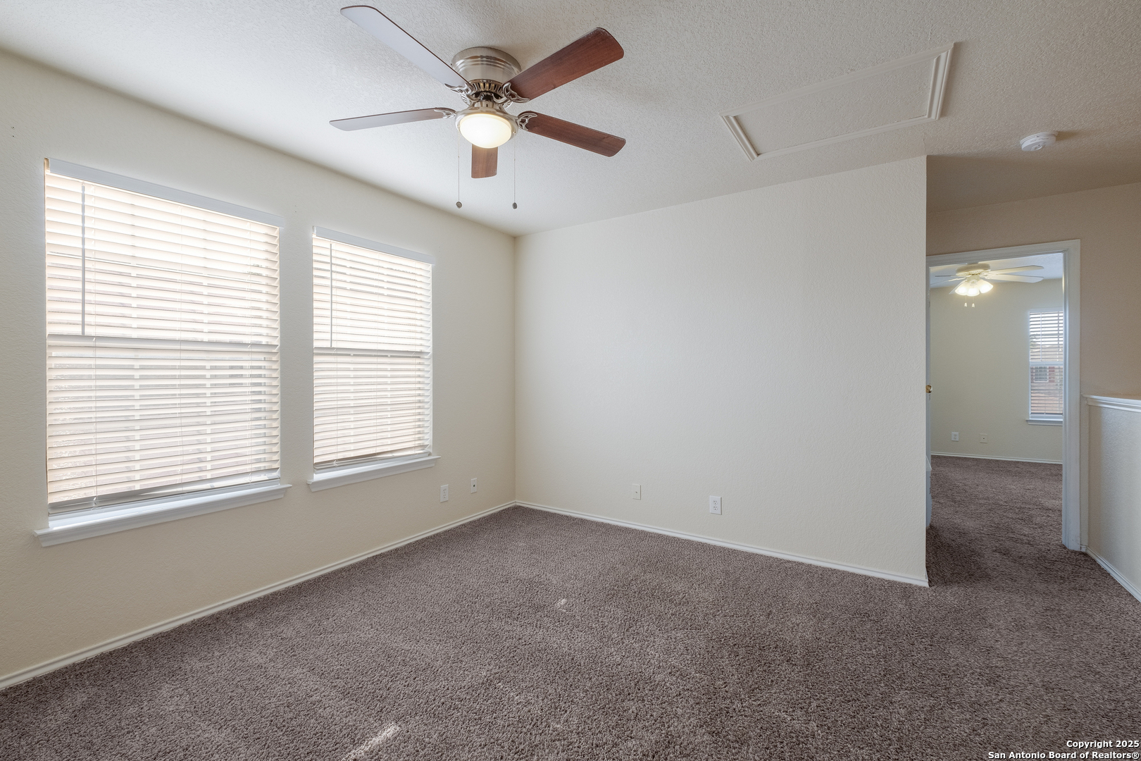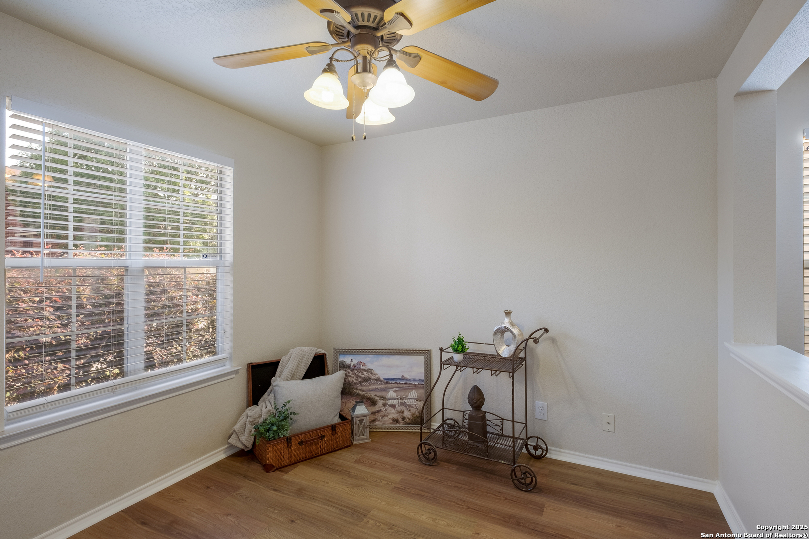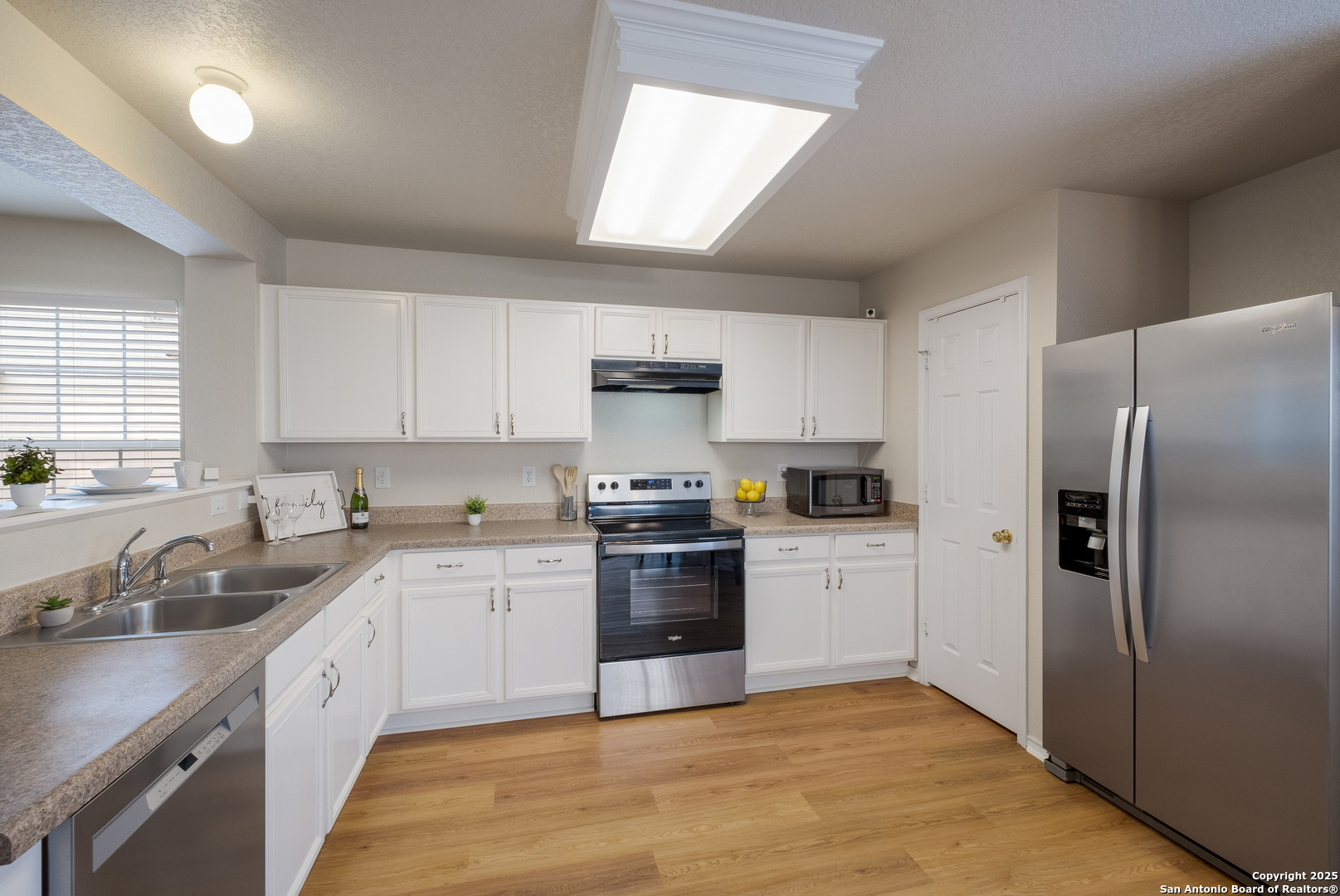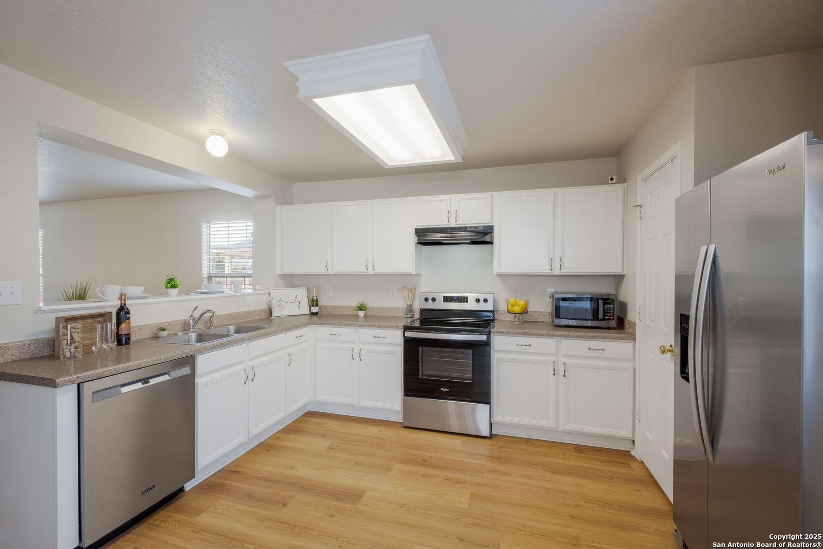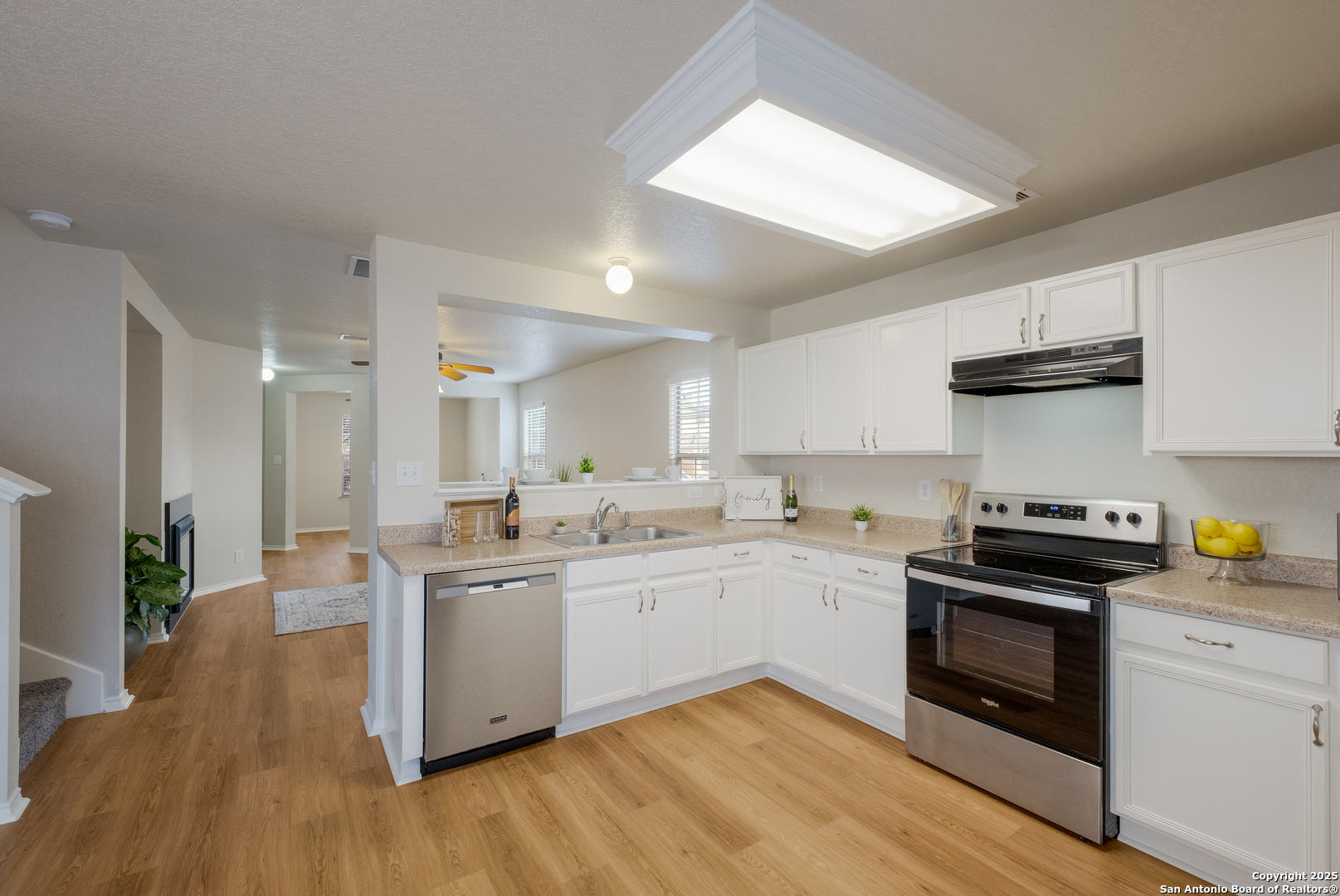This well-maintained two-story home features 3 bedrooms, 2.5 bathrooms, and a functional layout with an office on the main level and all bedrooms plus a loft upstairs. The kitchen boasts near-new appliances, and the home includes a 4-year-old air conditioner and a 6-year-old roof for added peace of mind. Enjoy the charm of a granite faux fireplace, brand new LVP flooring downstairs, and ceiling fans throughout for year-round comfort. Conveniently located within walking distance to UTSA and just a short drive to USAA, the Medical Center, La Cantera, Fiesta Texas, and SeaWorld, this home offers both comfort and a prime location.